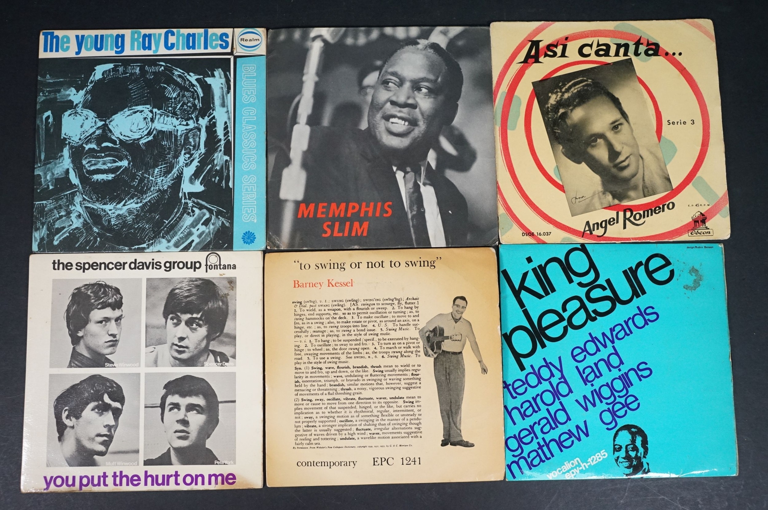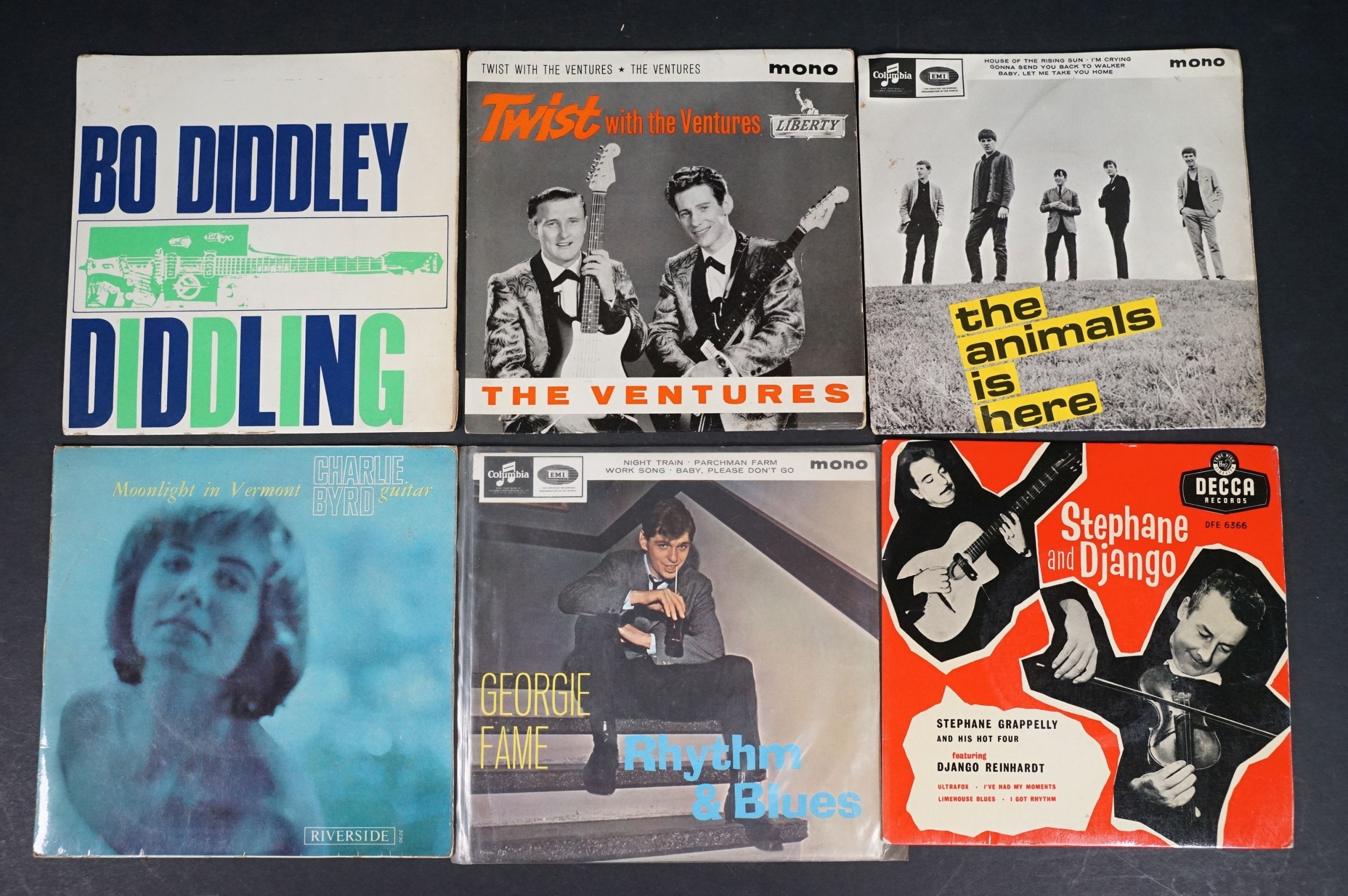 Vinyl - Over 60 mainly 1960s EPs featuring blues, beat, jazz and more to include Jimmy Reed, Miles Davis, Angel Romero, Memphis Slim, Teddy Edwards, Barney Kessel, The Spencer Davis Group, The Animals, Bo Diddely, The Ventures, Charlie Byrd, Django Reinhardt, Johnny Maddox, Mel Torme, Ferlin Husky, Ray Charles and more. Vg overall