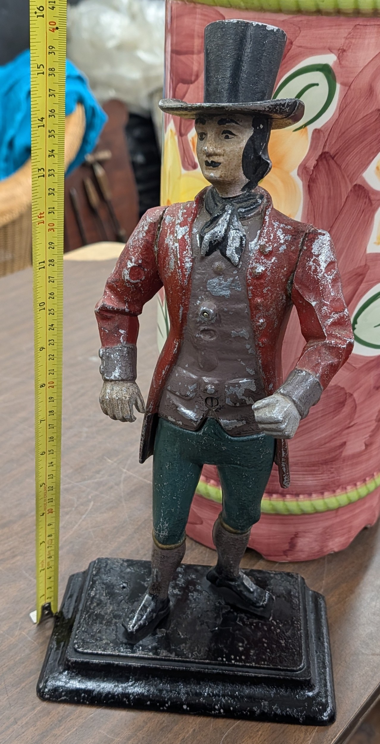 Large Painted Cast Aluminium Figure of a Dutch Clock Peddler