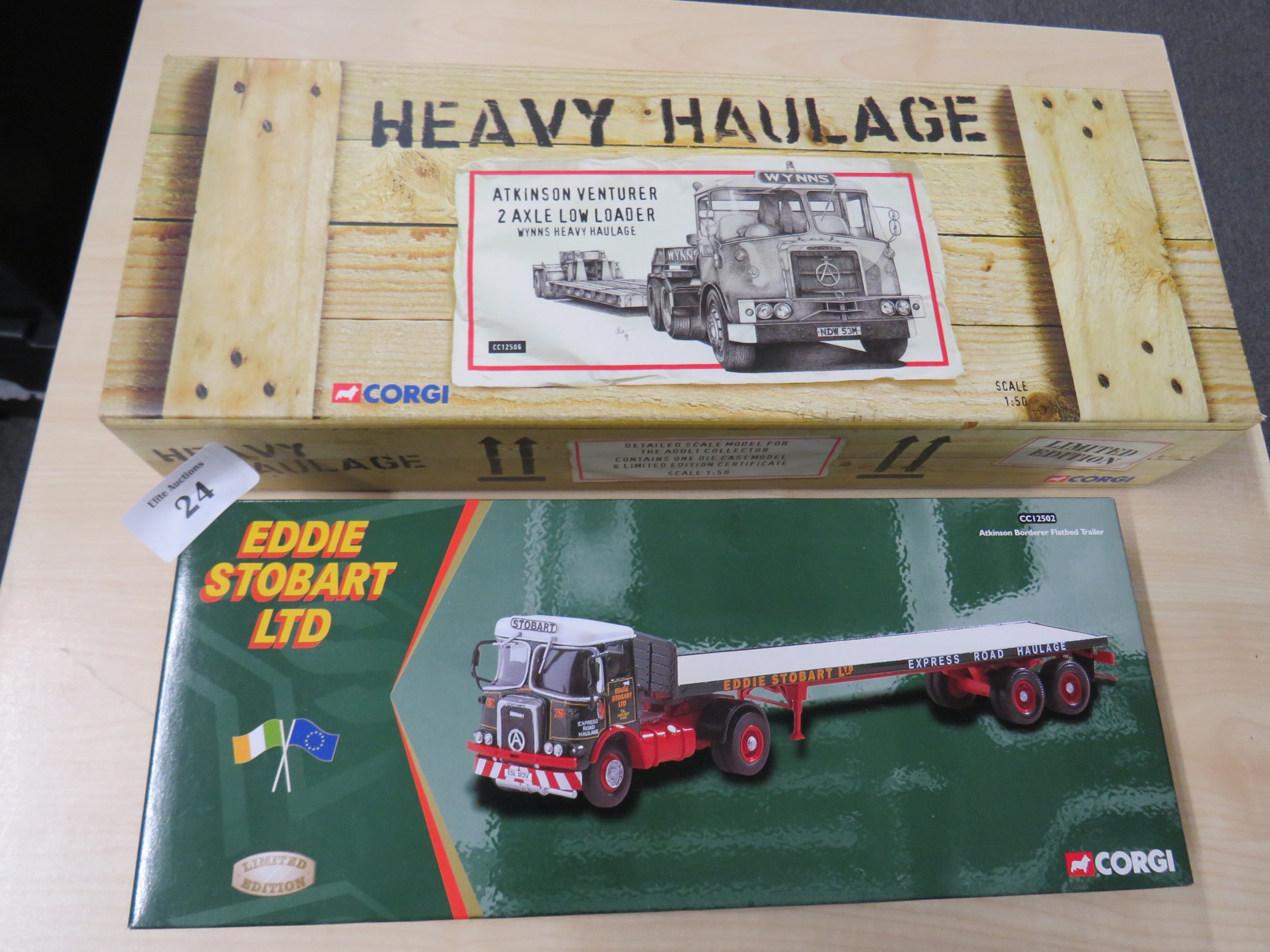 Two boxed Corgi trucks to include Eddie Stobart and Heavy Haulage Atkinson Venturer