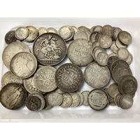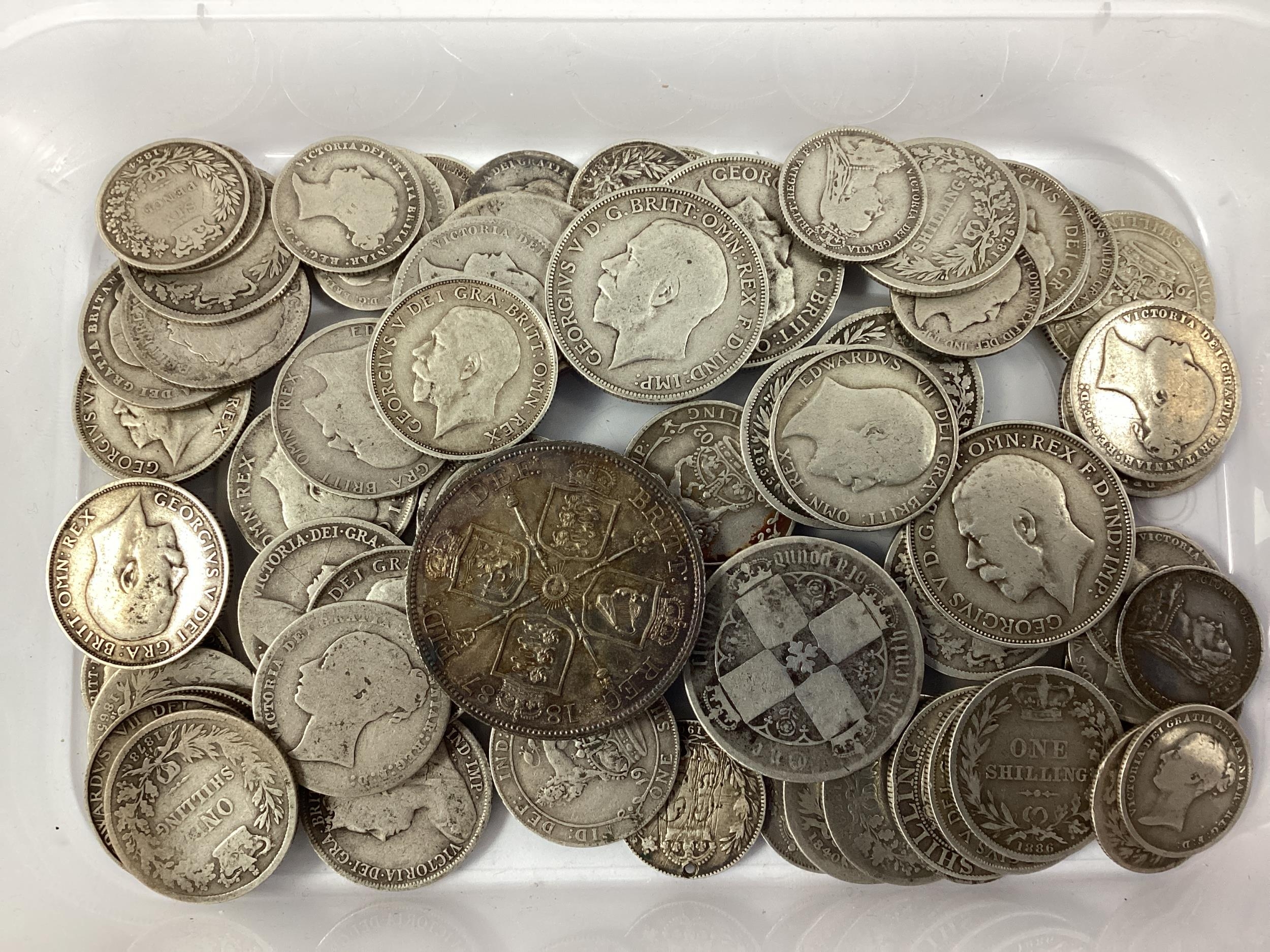 Collection Of GB Pre 1920 And XIX Century Silver Coins, including an 1887 Victoria 'Double Florin', 1871 Gothic Florin etc, total weight 330g.