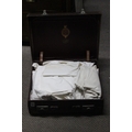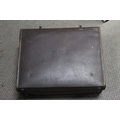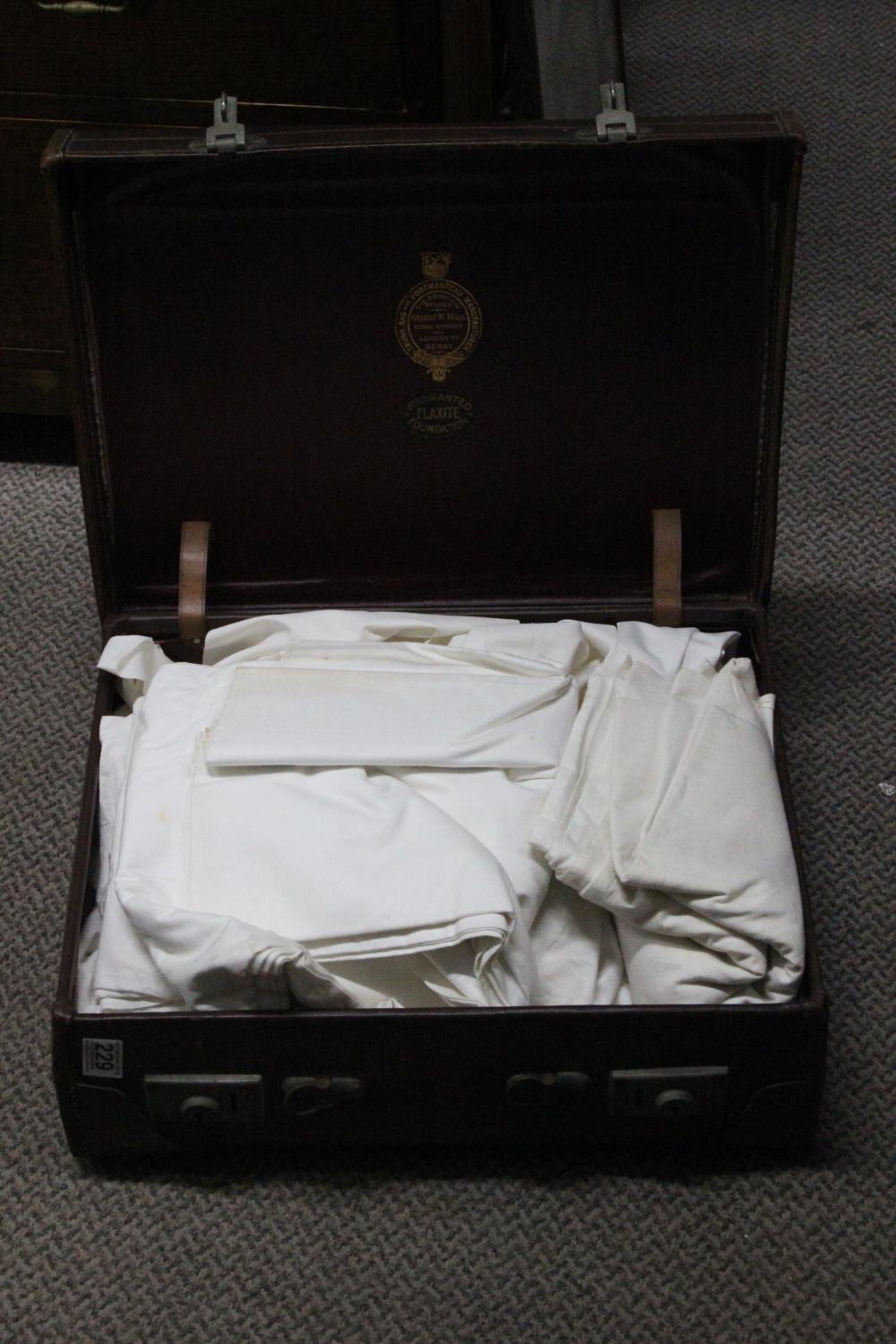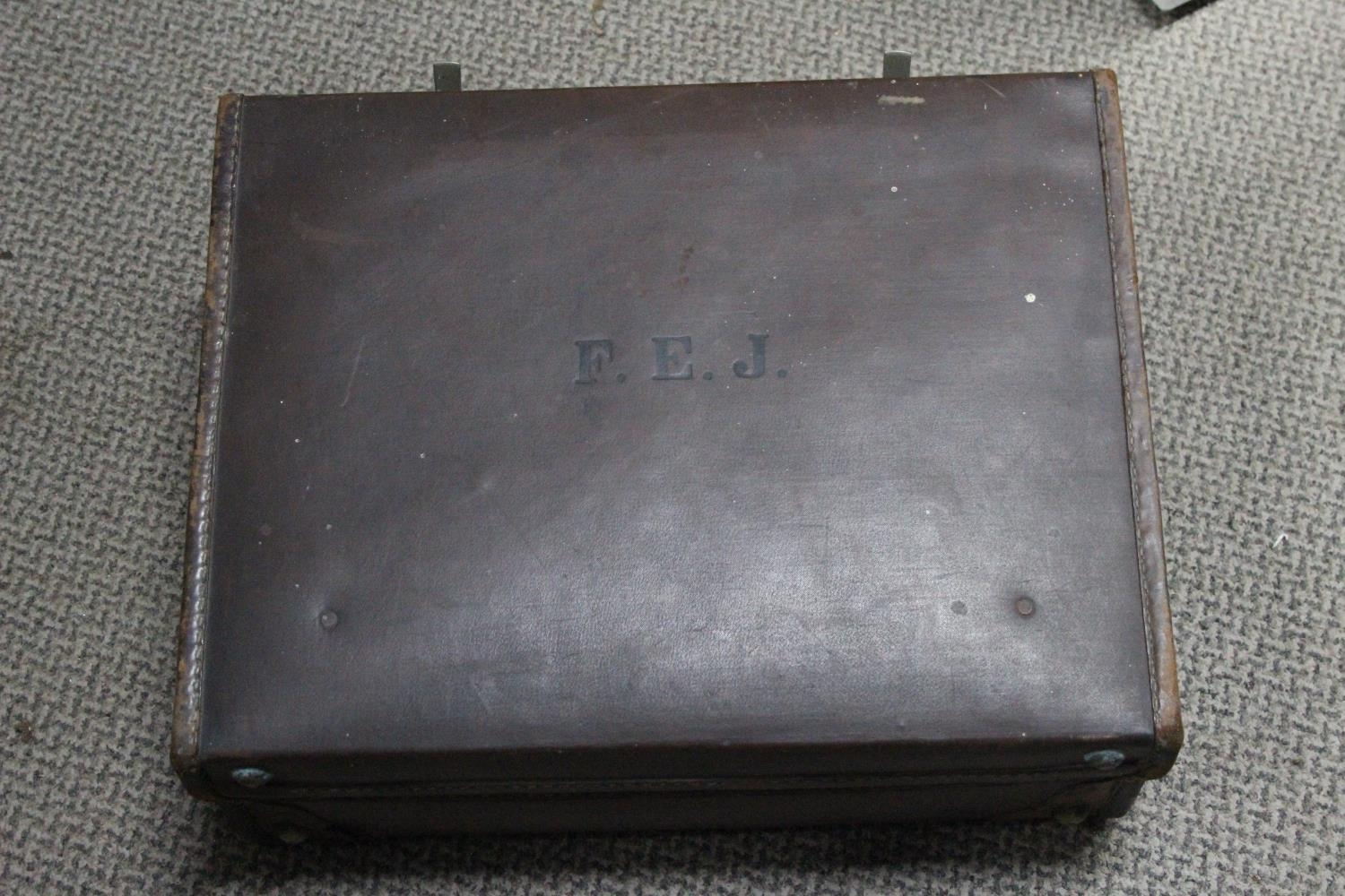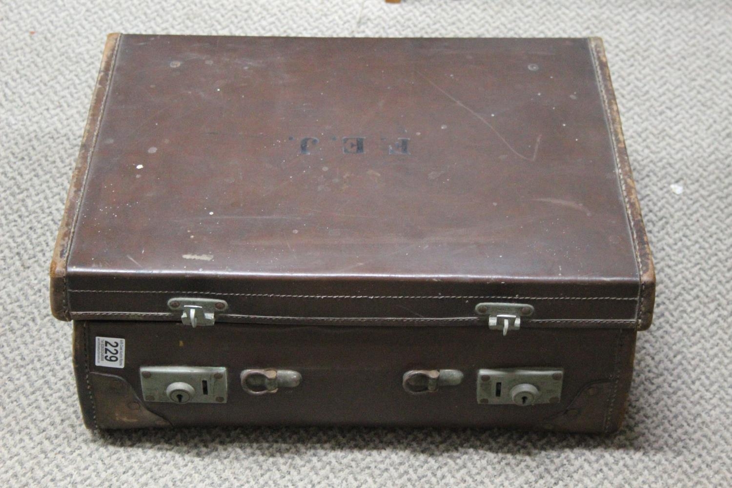 A vintage leather suitcase and contents.