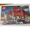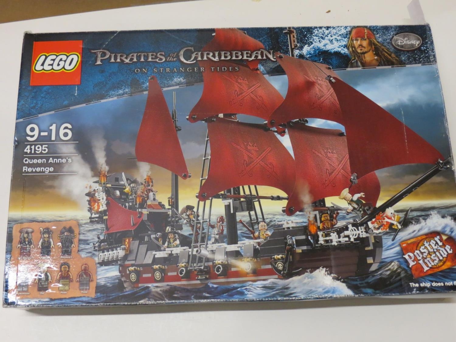 Boxed Lego Pirates of the Caribbean On Stranger Tides 4195 Queen Anne's Revenge, missing Chef mini figure, Blackbeard's Cutlass and a torch handle