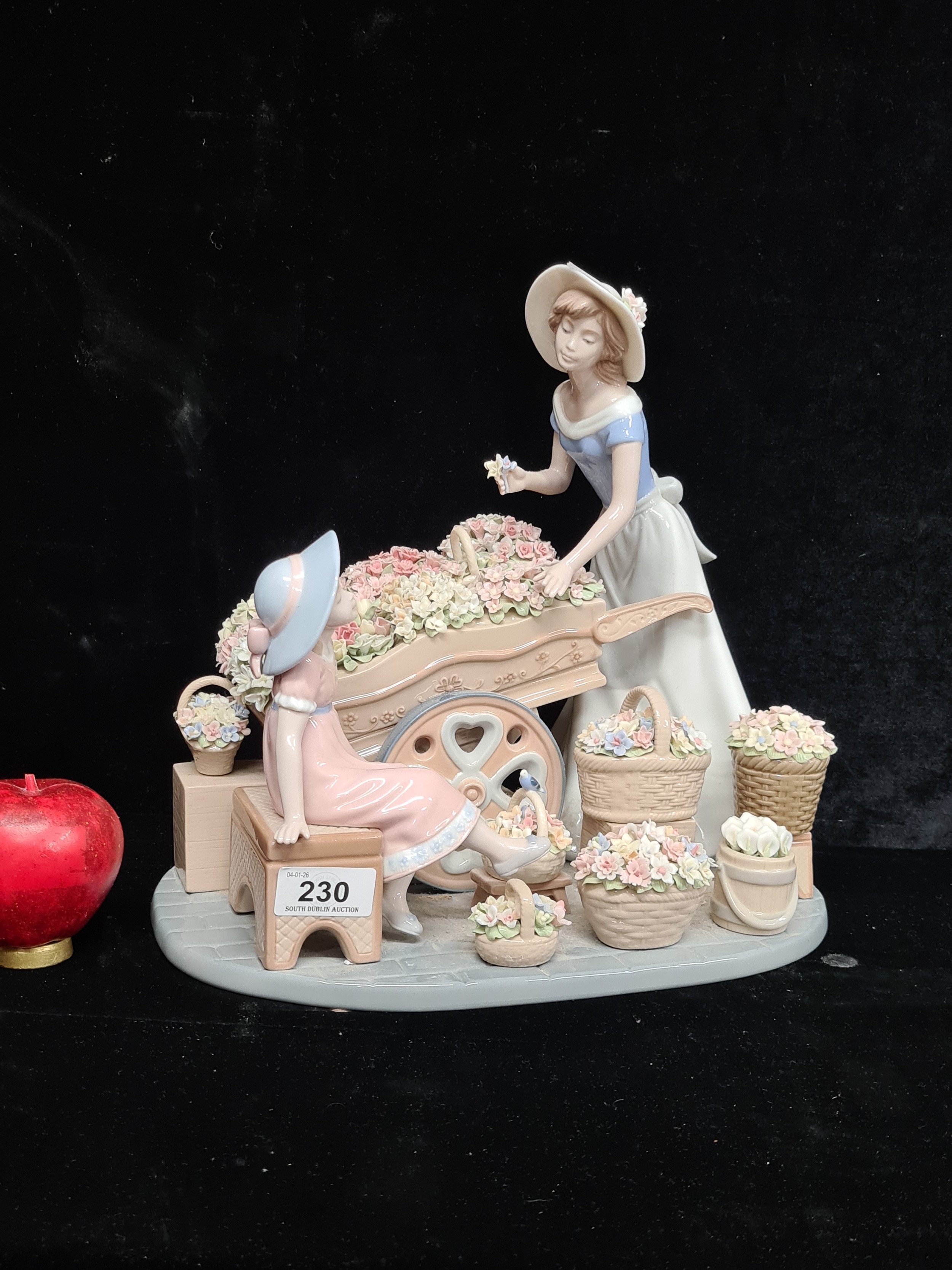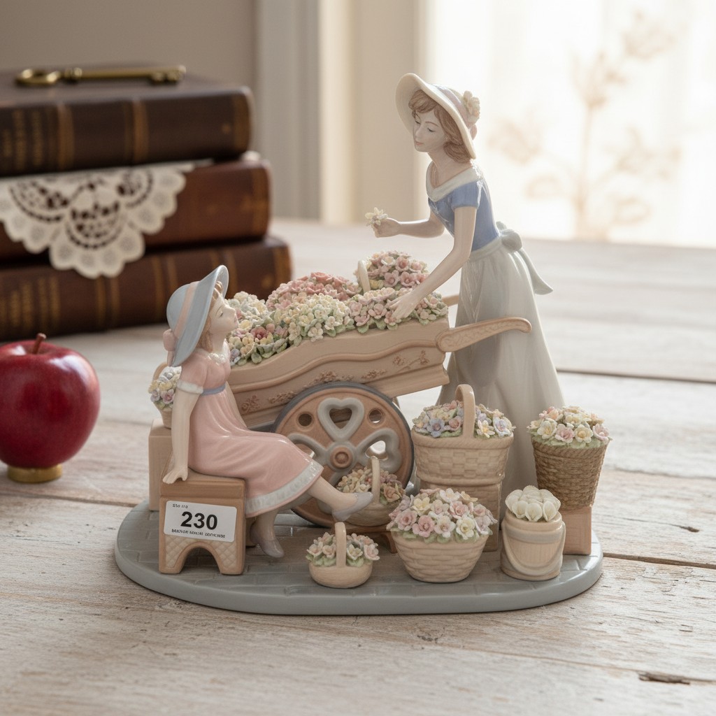 Star Lot : A very large large limited edition porcelain Spanish made Nadal figure depicting a mother and daughter with a flower cart. In VGC, There is one on line for $999