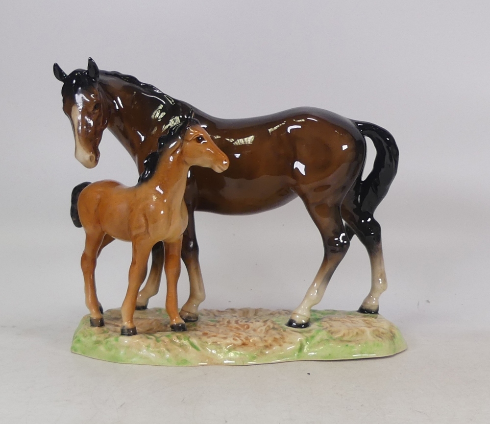 Beswick mare and foal on a ceramic grass base, model no. 953.