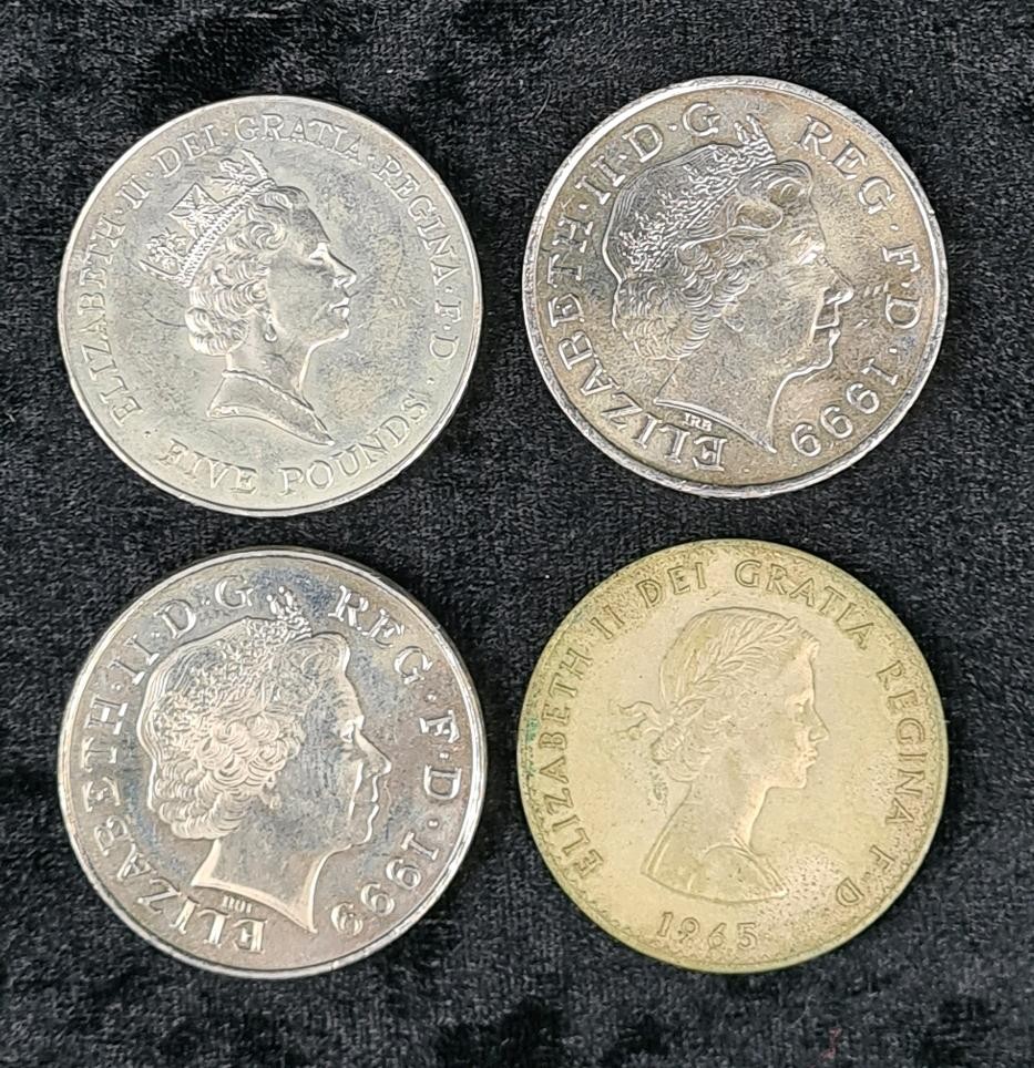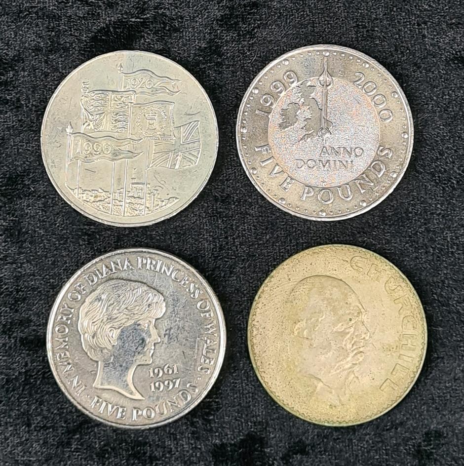 1998 Princess Diana, 1999 Millenium and 1926-1966 five pounds and a Churchill commemorative coins