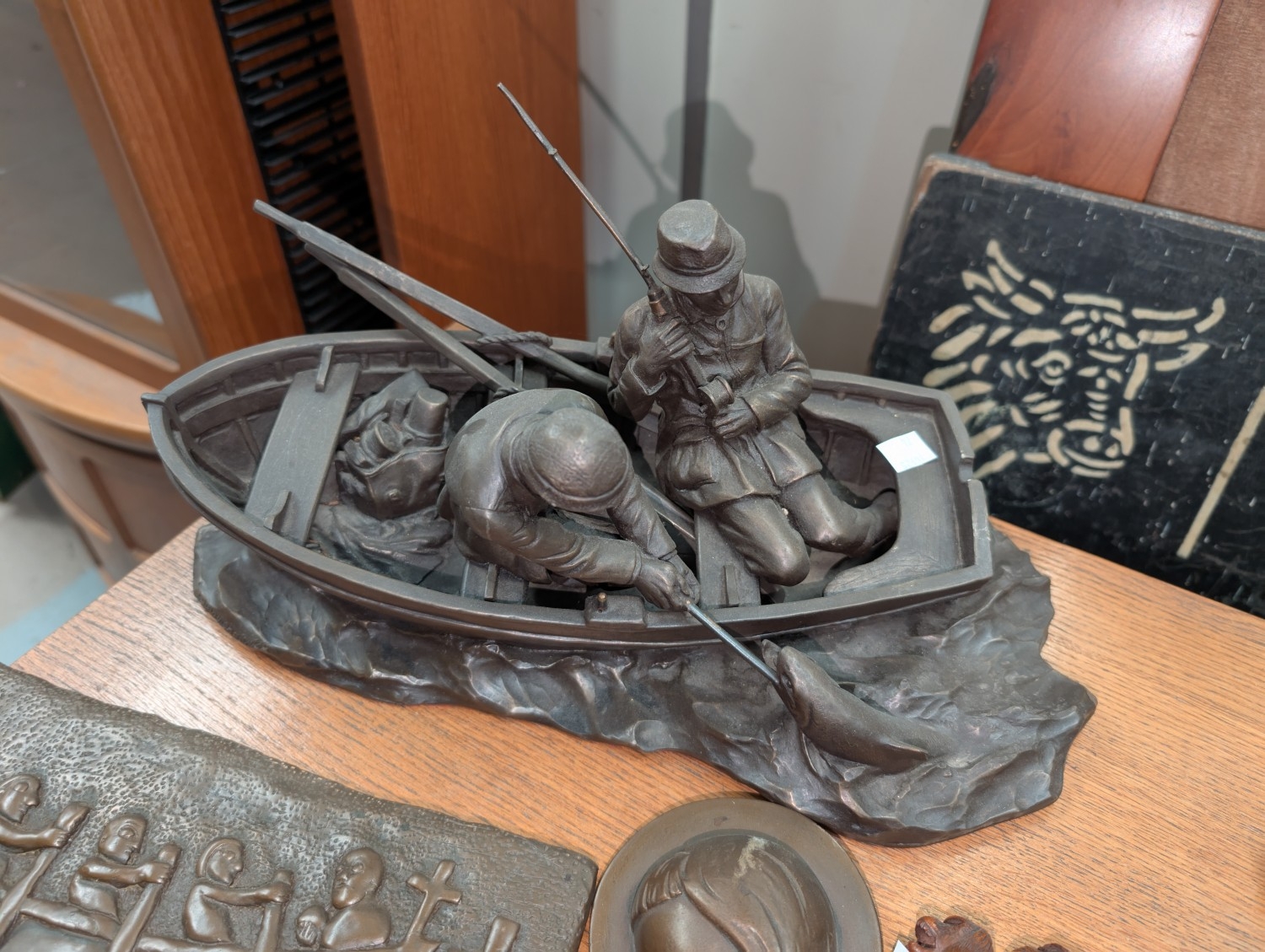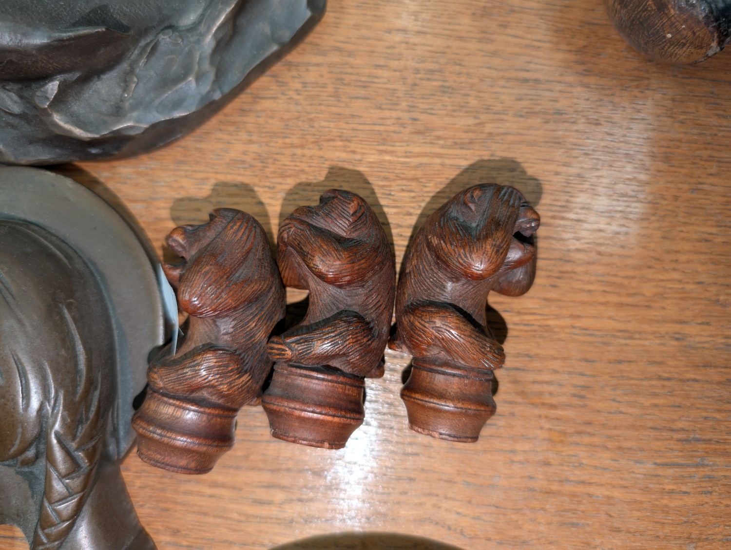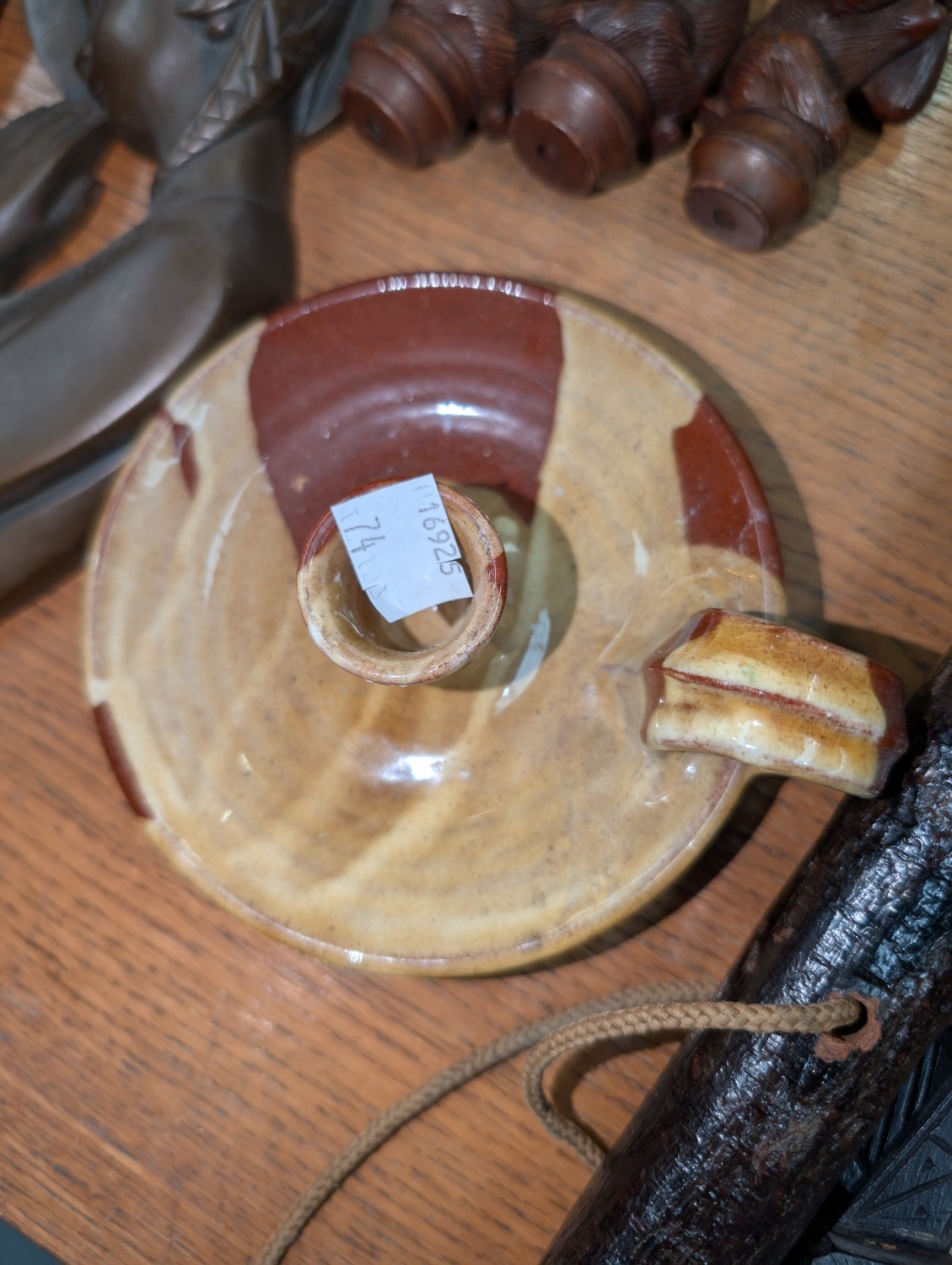 An Irish club, wooden figure and other small collectables.