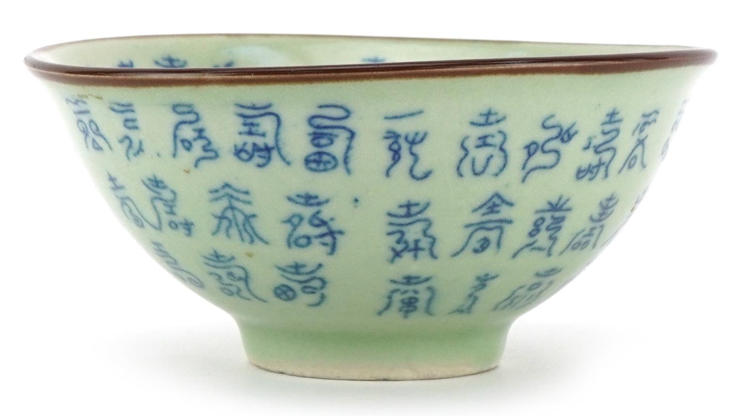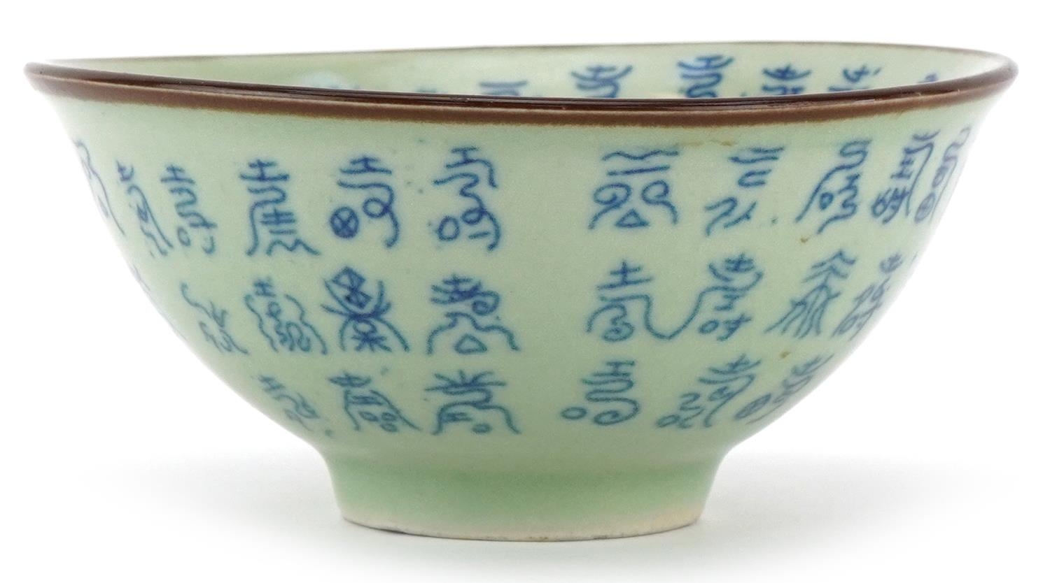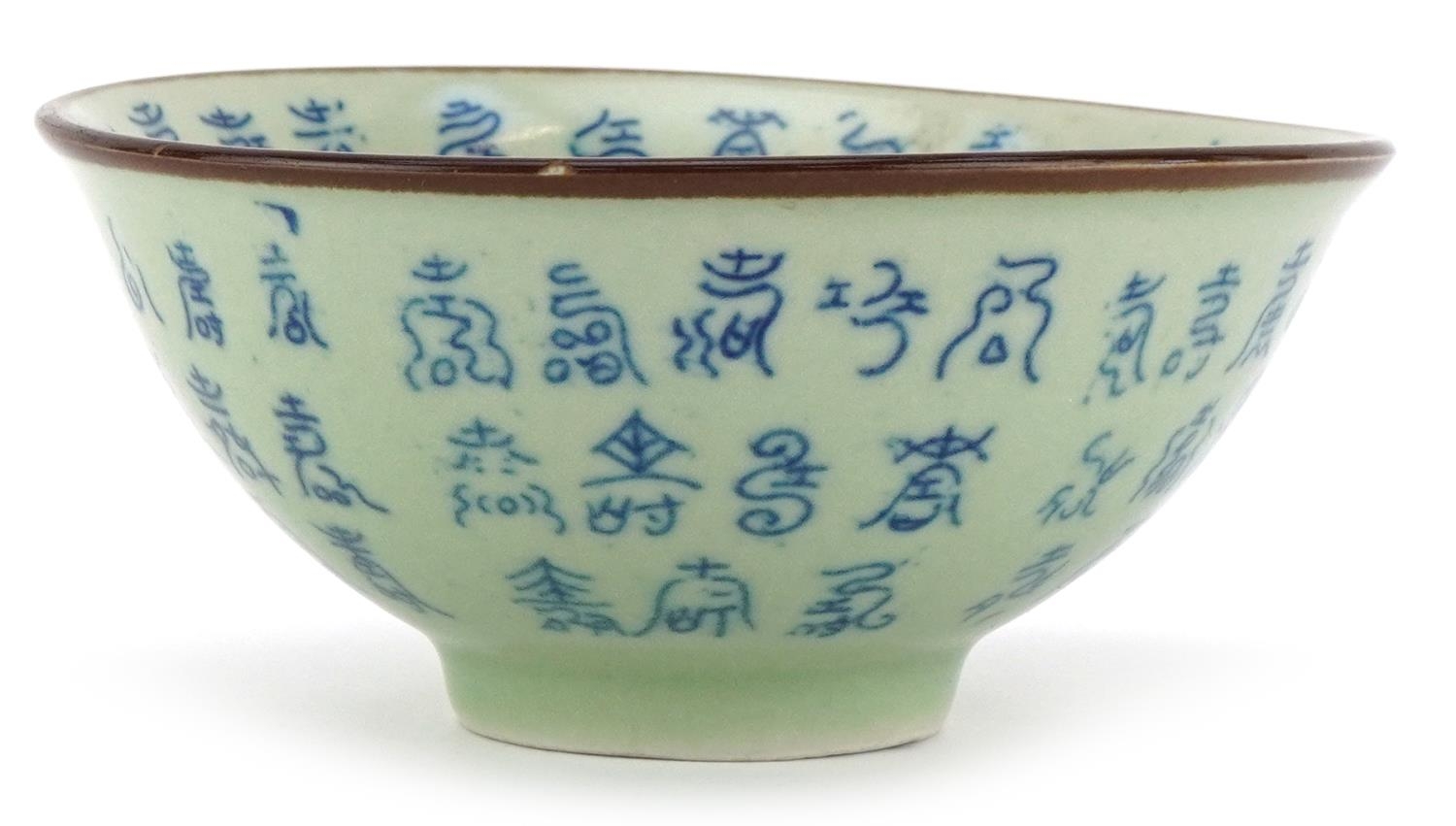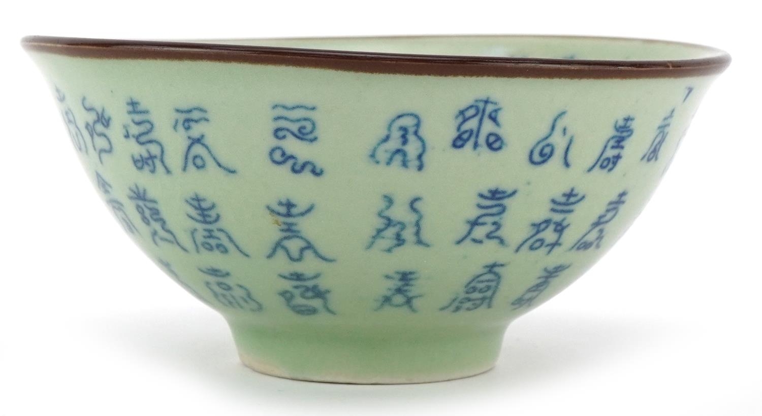 A Chinese celadon crackle glazed stoneware bowl, 20th century, bearing six character mark to base, 6cm high x 13cm in diameter.