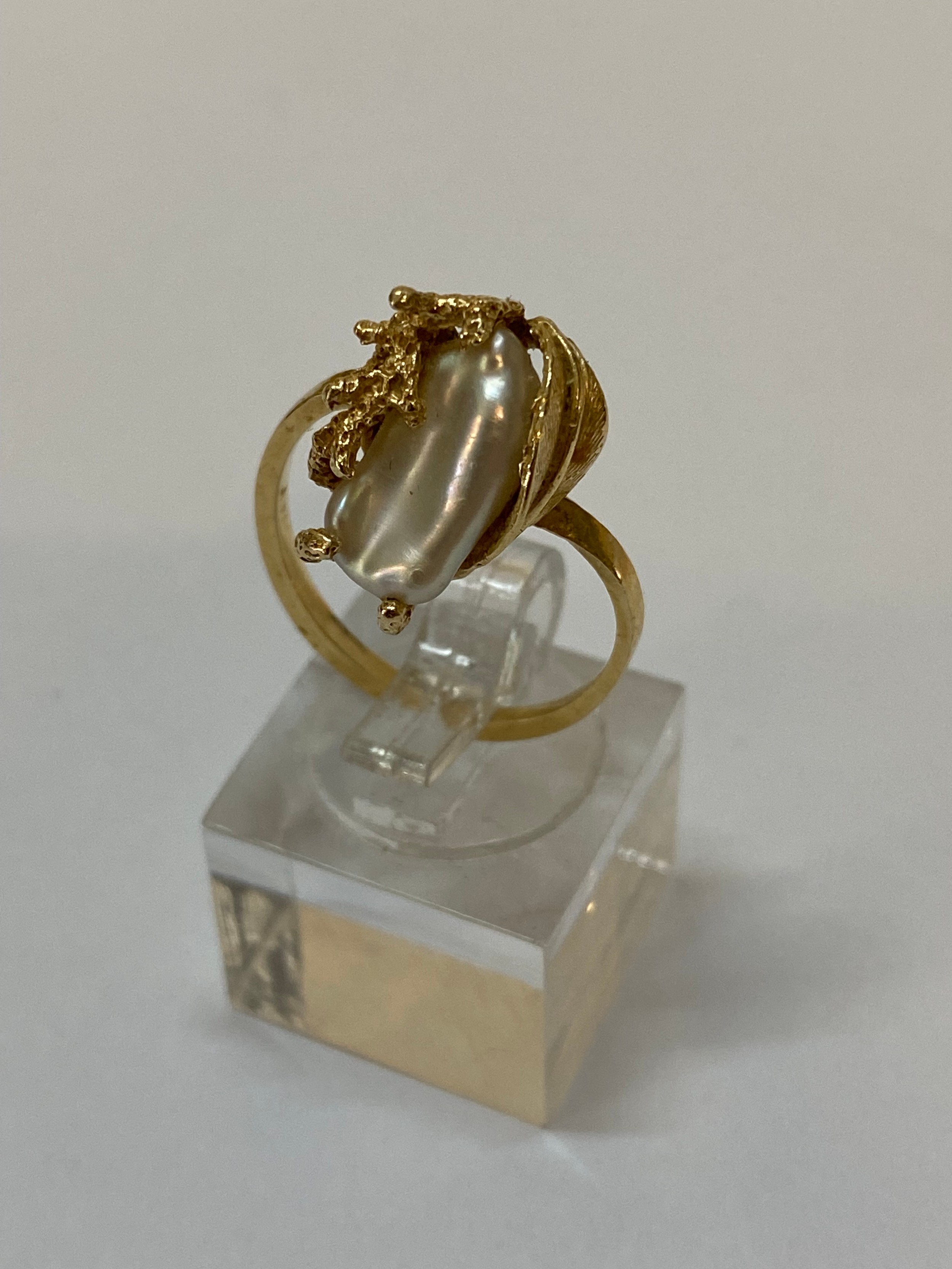A lady's ring set pearl, on a 14kt. gold shank