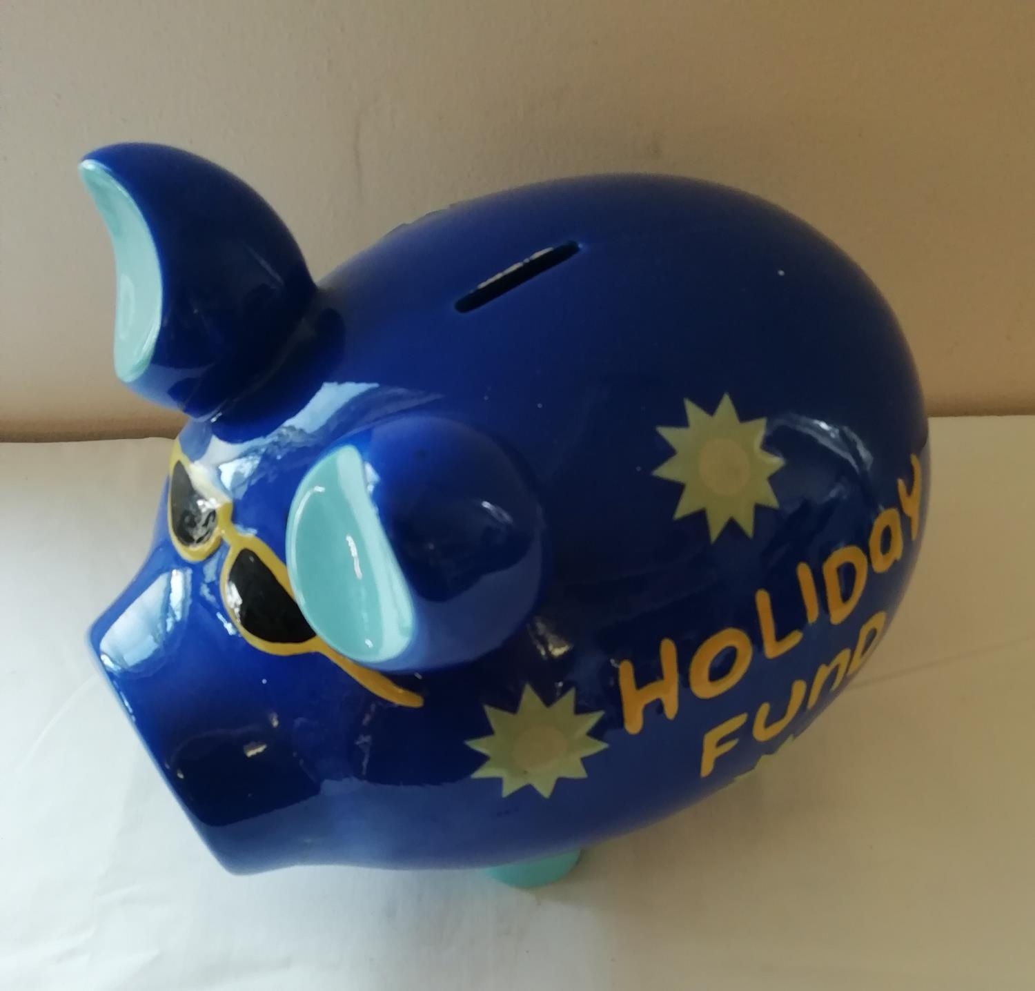 Very large Ceramic Piggy Bank 'Holiday Fund' - missing stopper