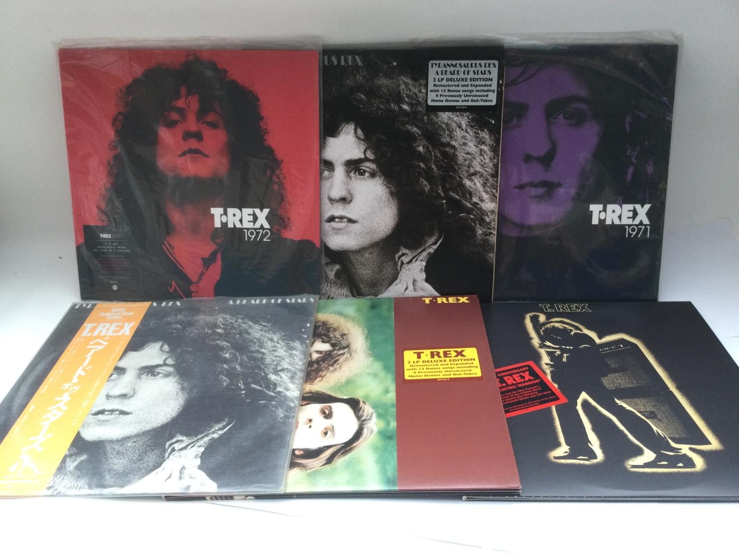 Two bags containing 13 T Rex LPs comprising some 180g pressings, 'A Beard Of Stars' with obi strip, a 40th anniversary 'Electric Warrior', deluxe editions etc.