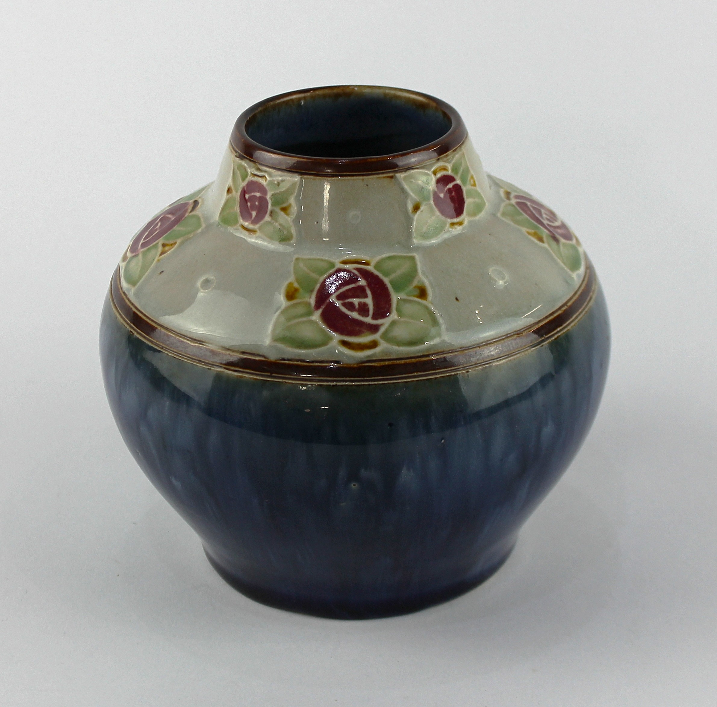 A Royal Doulton stoneware art pottery vase, c.1920's, with impressed factory marks and incised artists initials 'WB' underside, 14cm high.