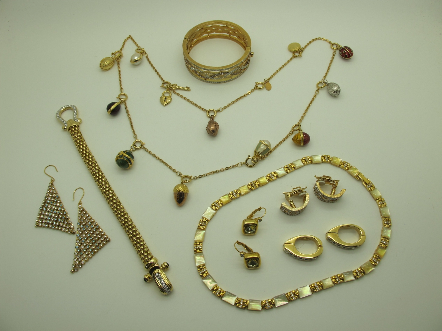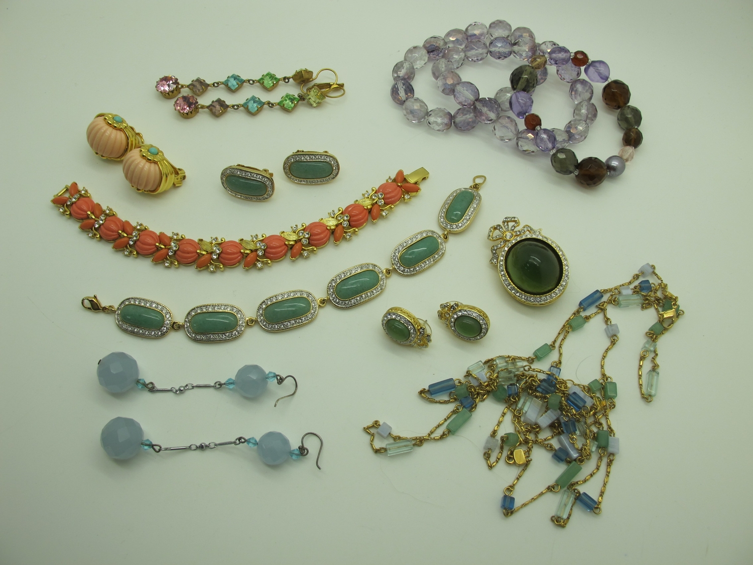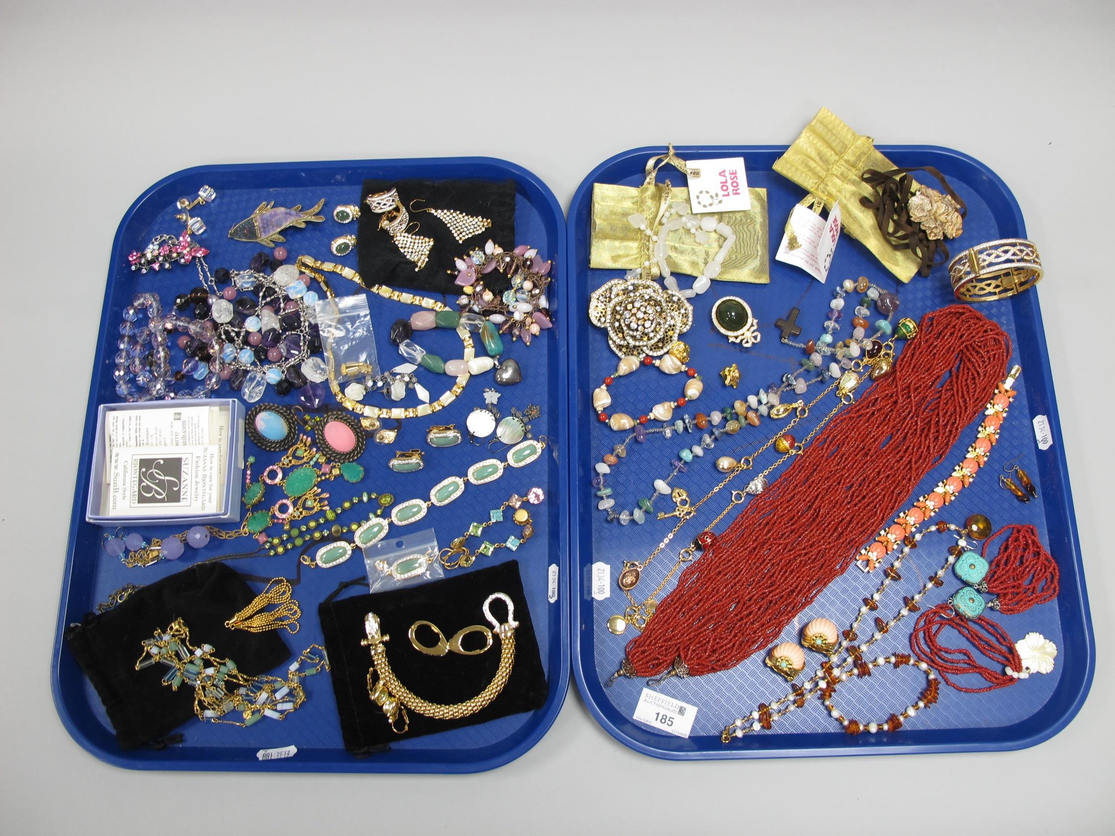A Collection of Modern Costume Jewellery, to include Lola Rose gemstone bracelets, Butler & Wilson brooch, Joan Rivers brooch and earring set etc :- Two Trays