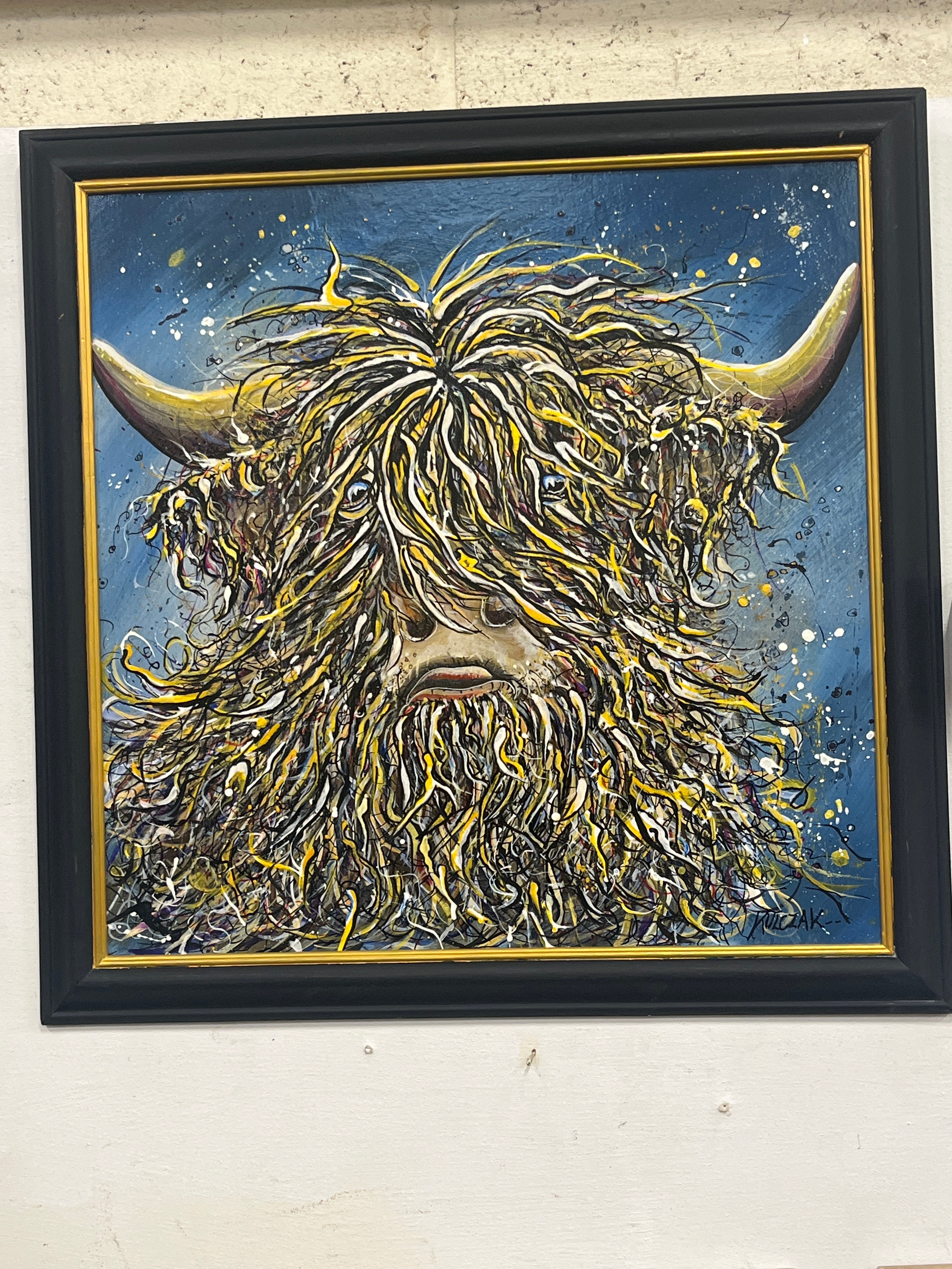 Original artwork ‘Highland Coo cow’ by S Kulczak 23" x 23"
