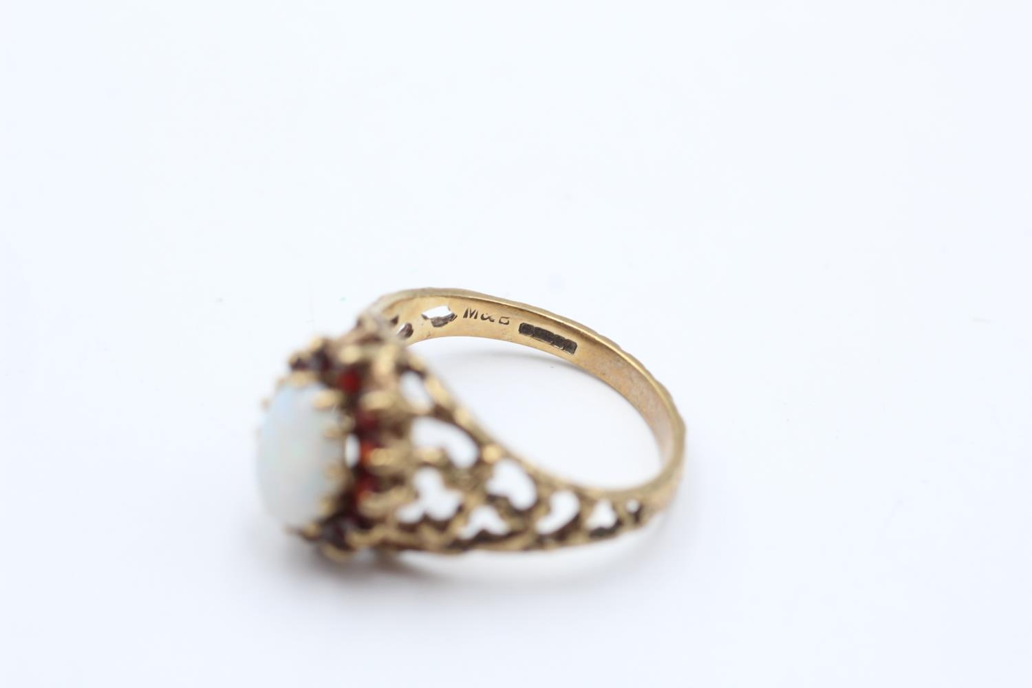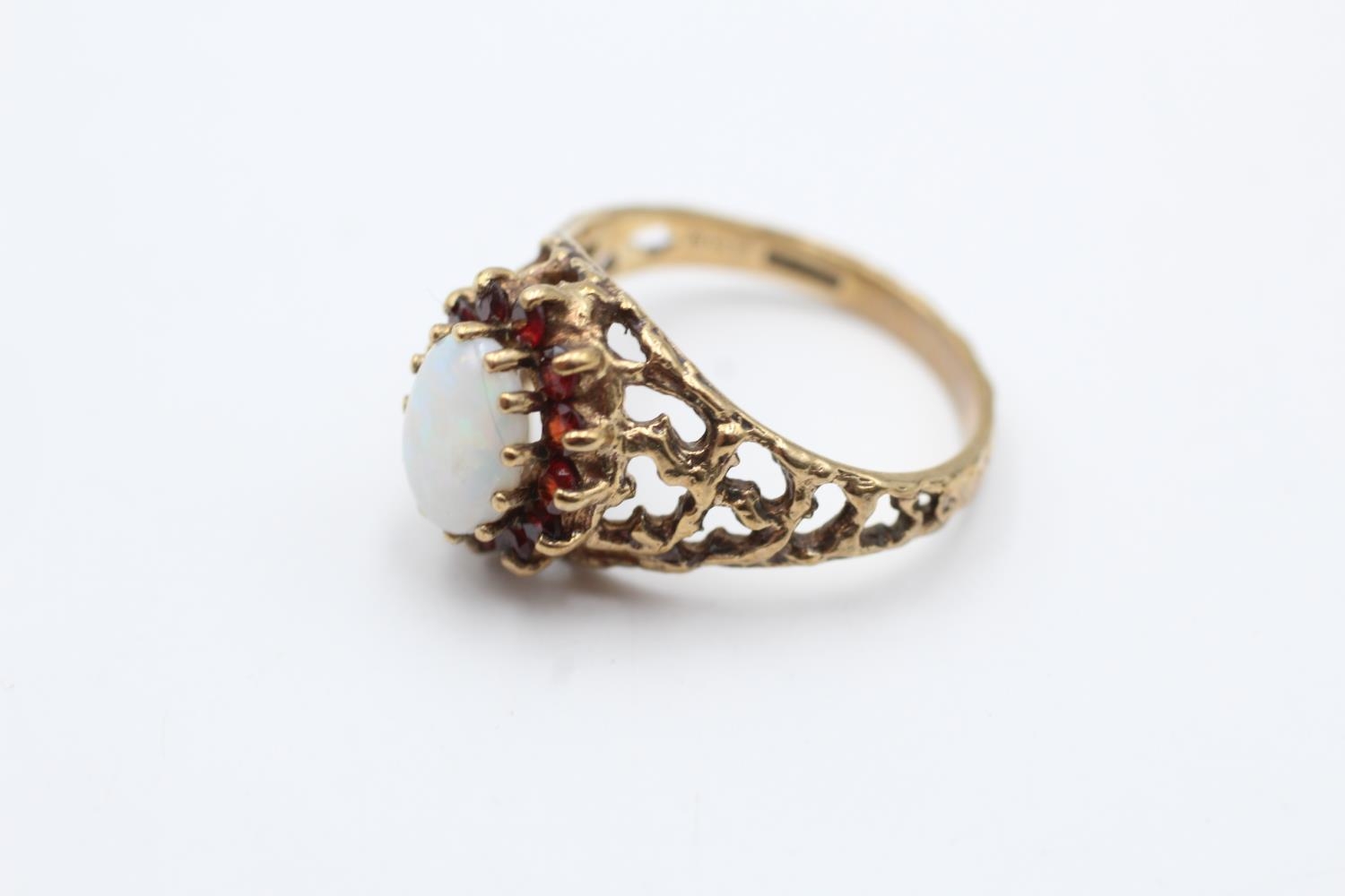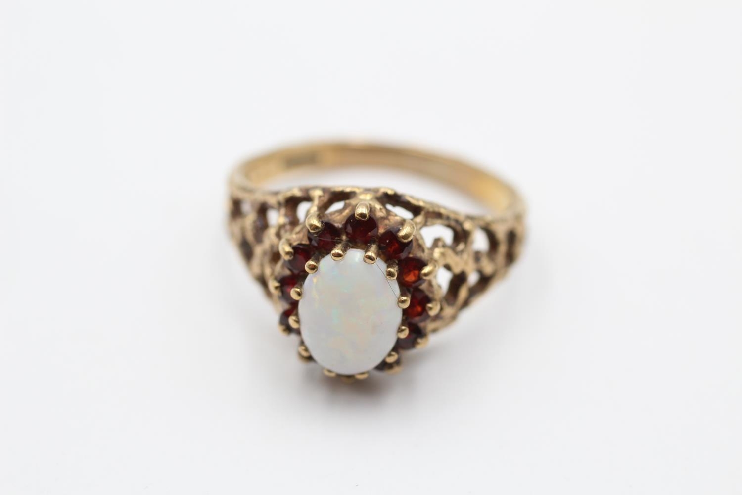 9ct gold vintage opal and garnet dress ring (3.2g) Size N
