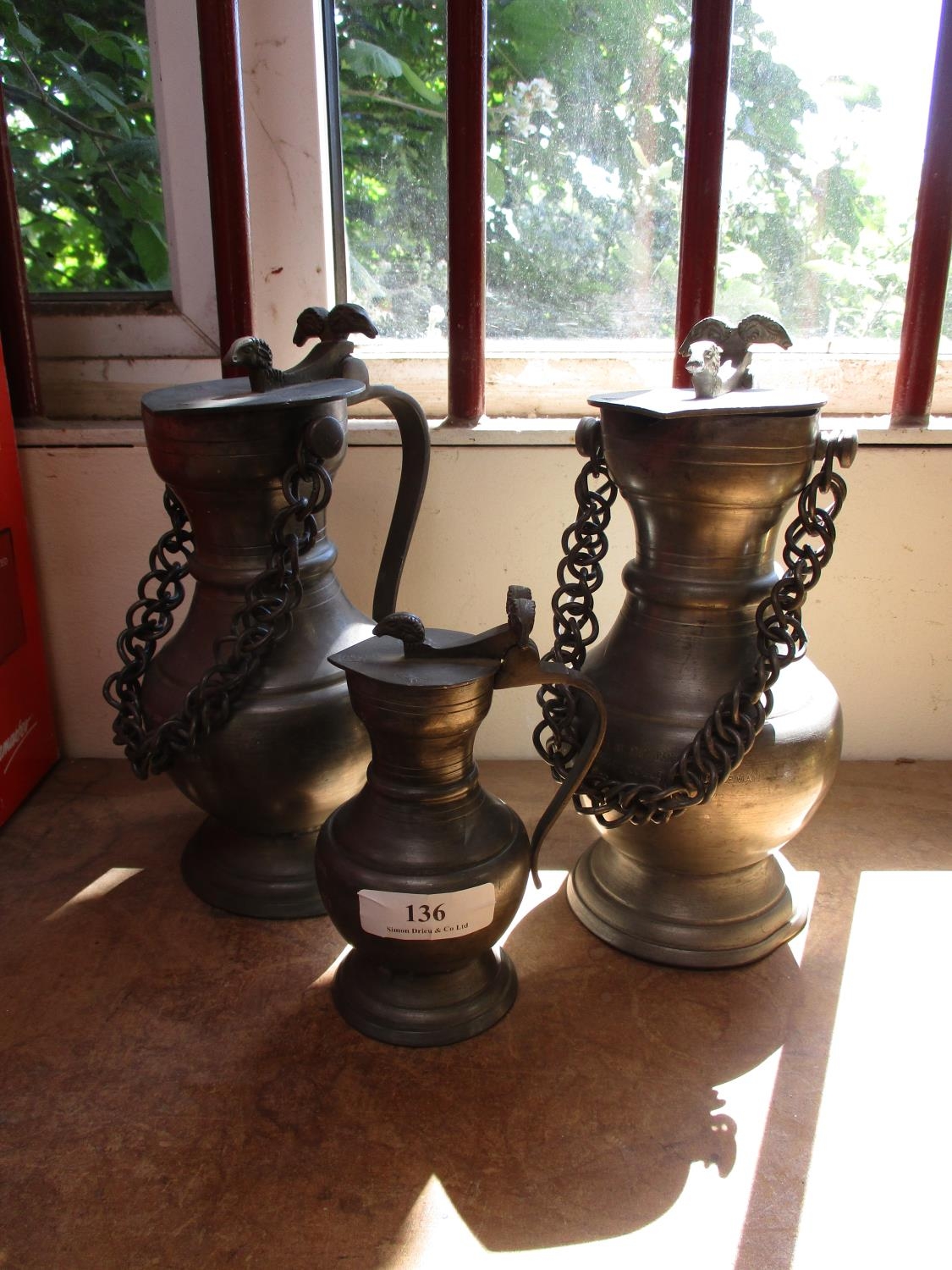 Three pewter lidded tankards