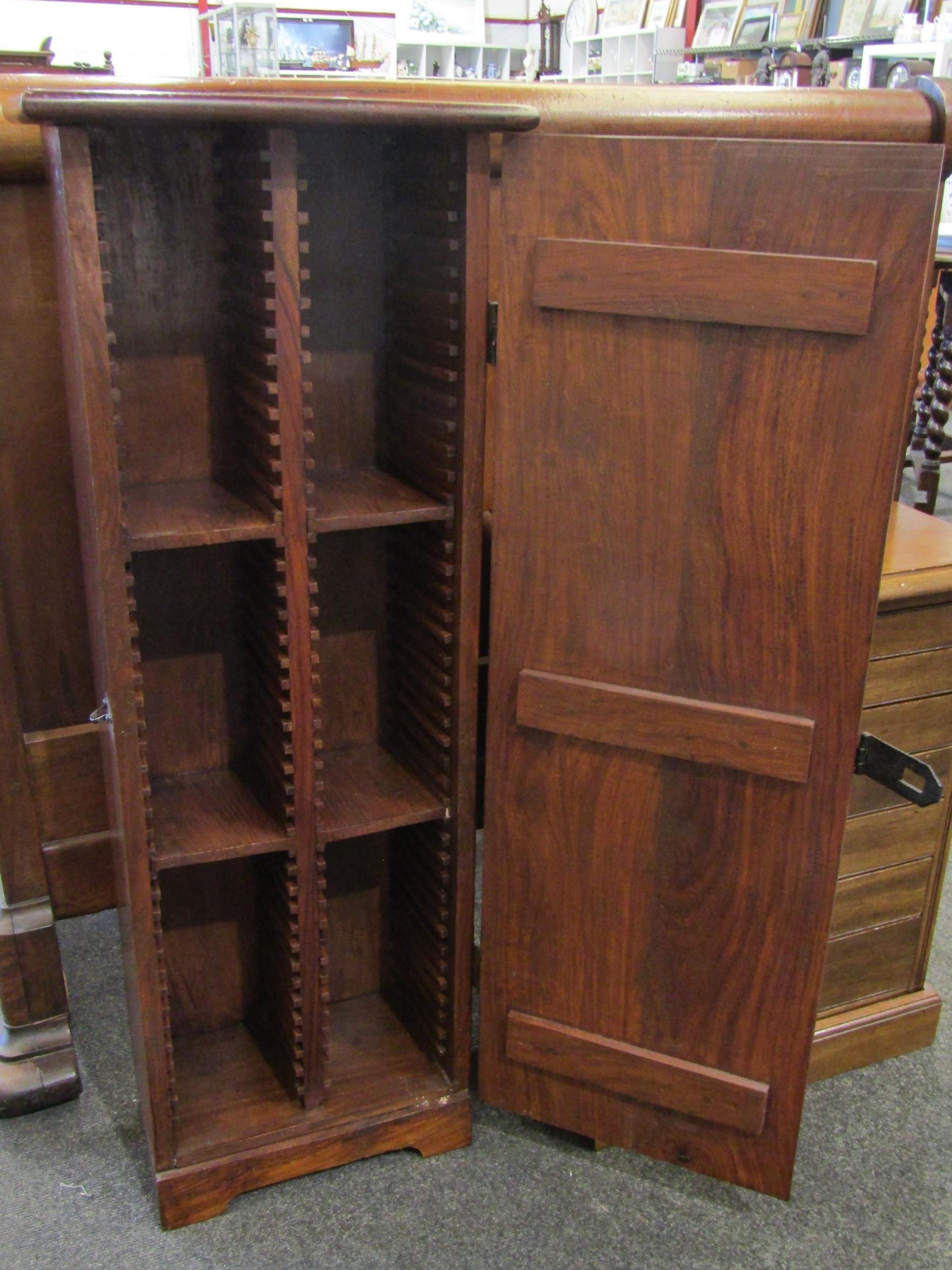 A CD cabinet, measuring maximum 14.5" wide x 8.5" deep x 39.5" tall