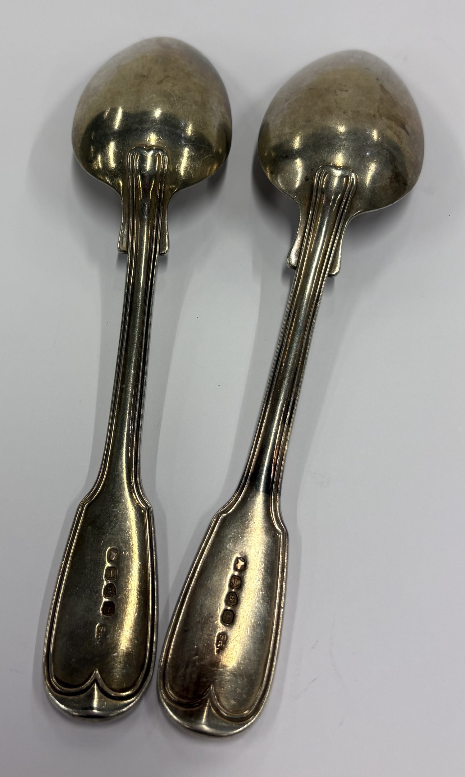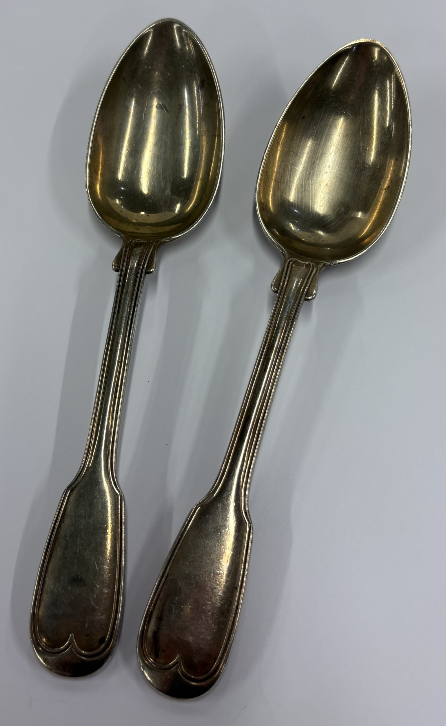 PAUL STORR: A fine pair of 19th Century silver spoons. London 1814. Approx. 200 grams. Est. £500 - £800.