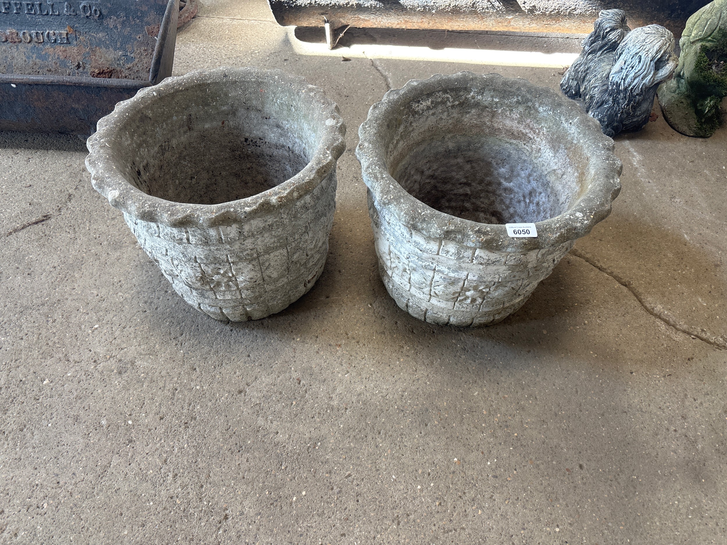A pair of concrete plant pots - 30cm tall x 38cm diameter