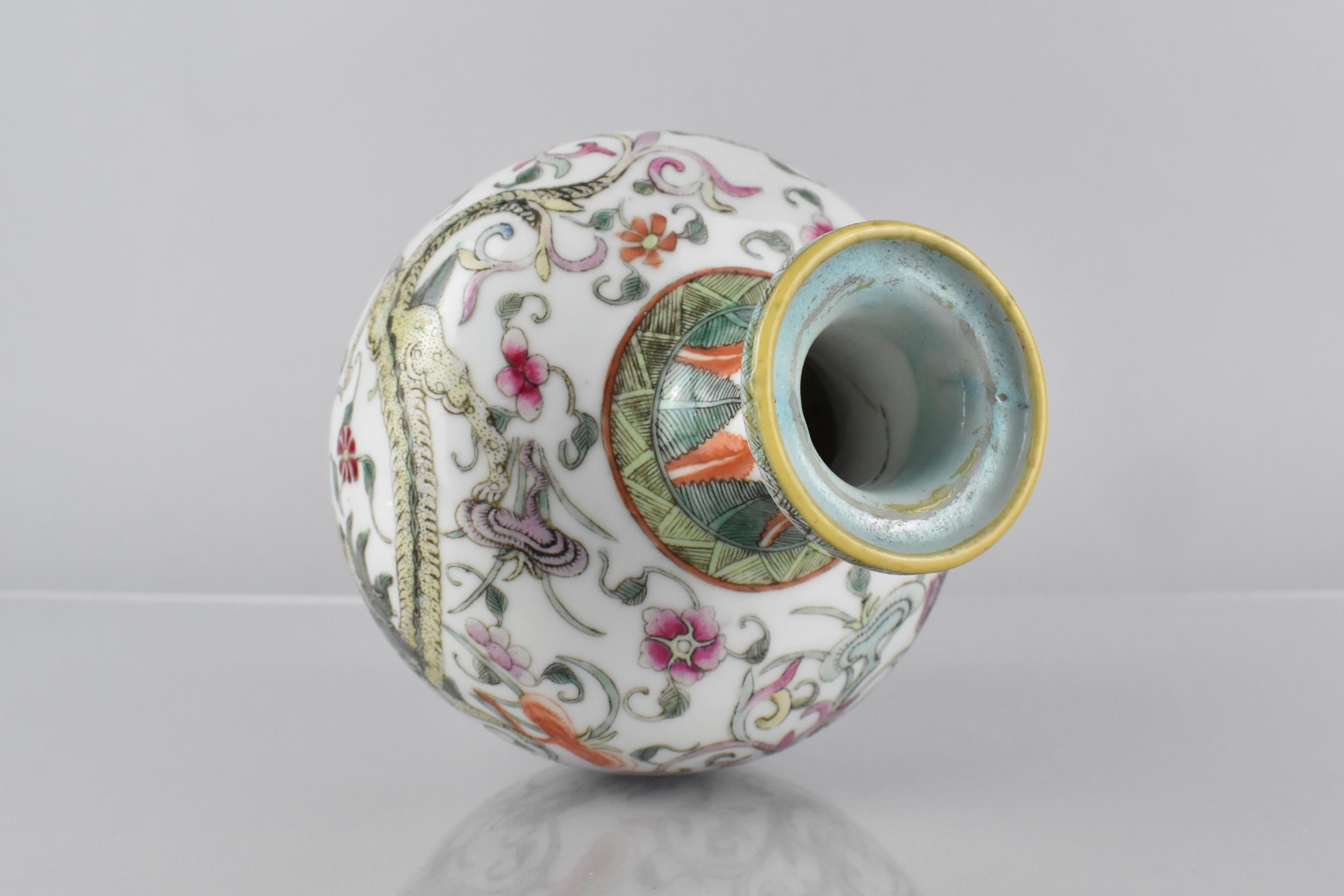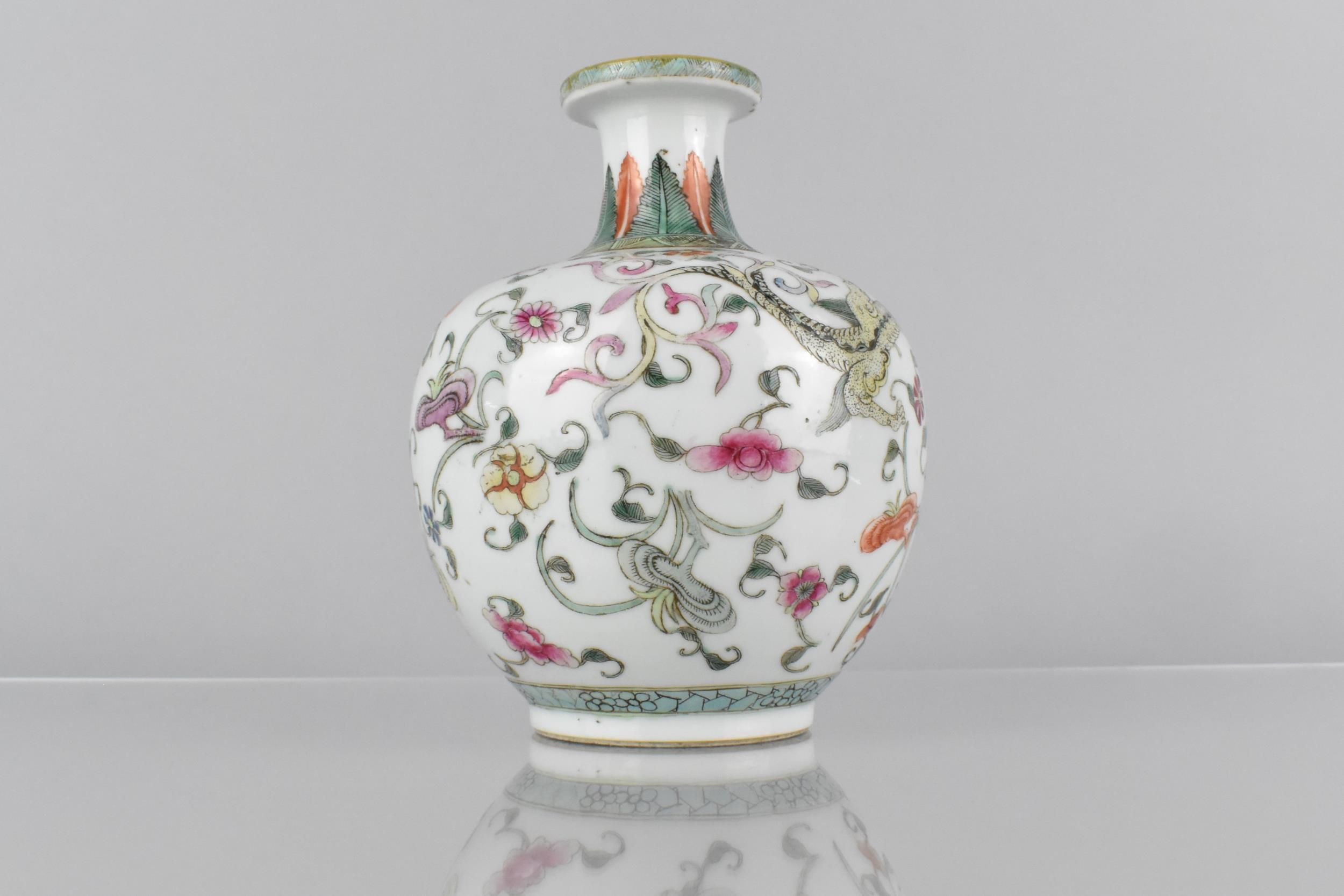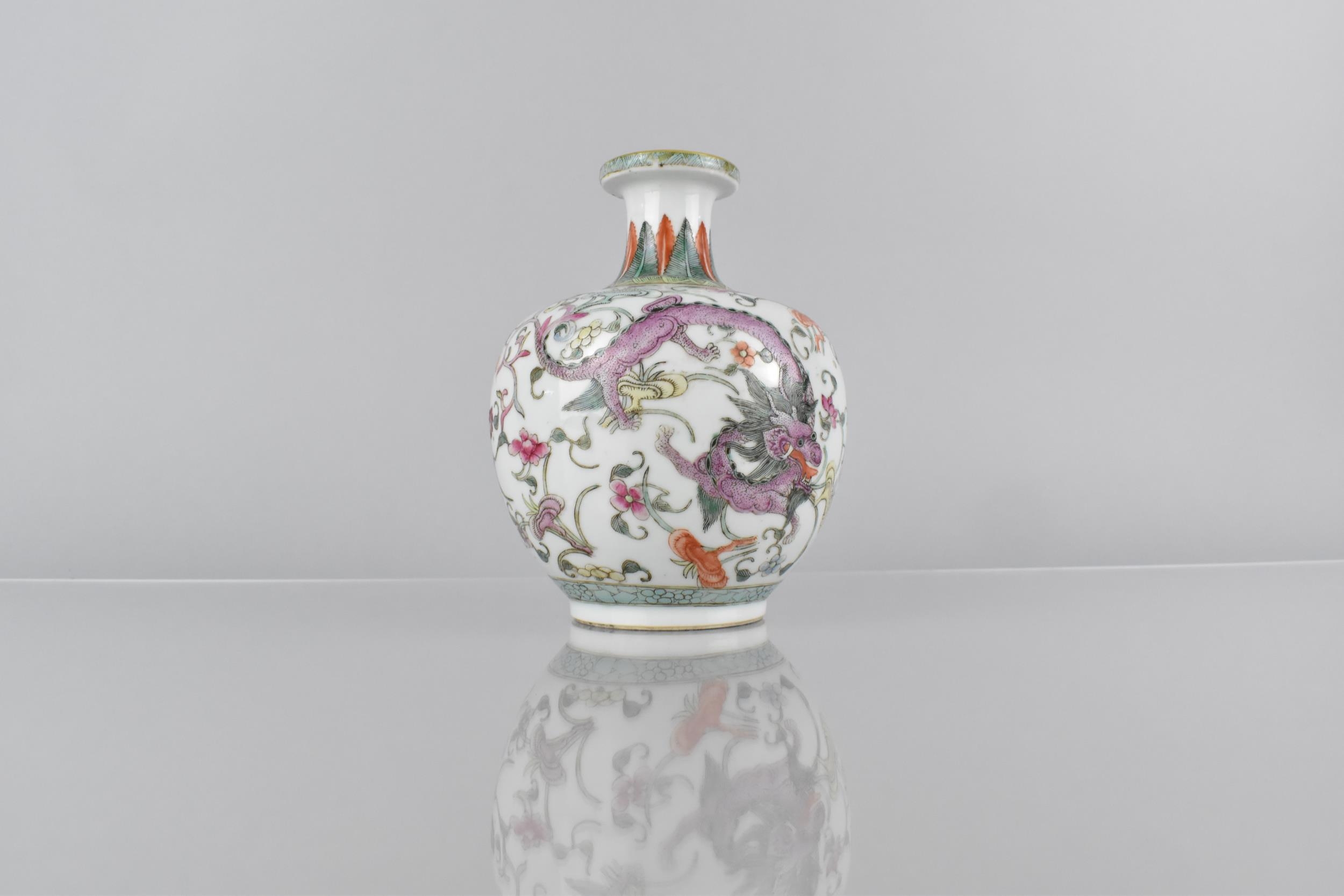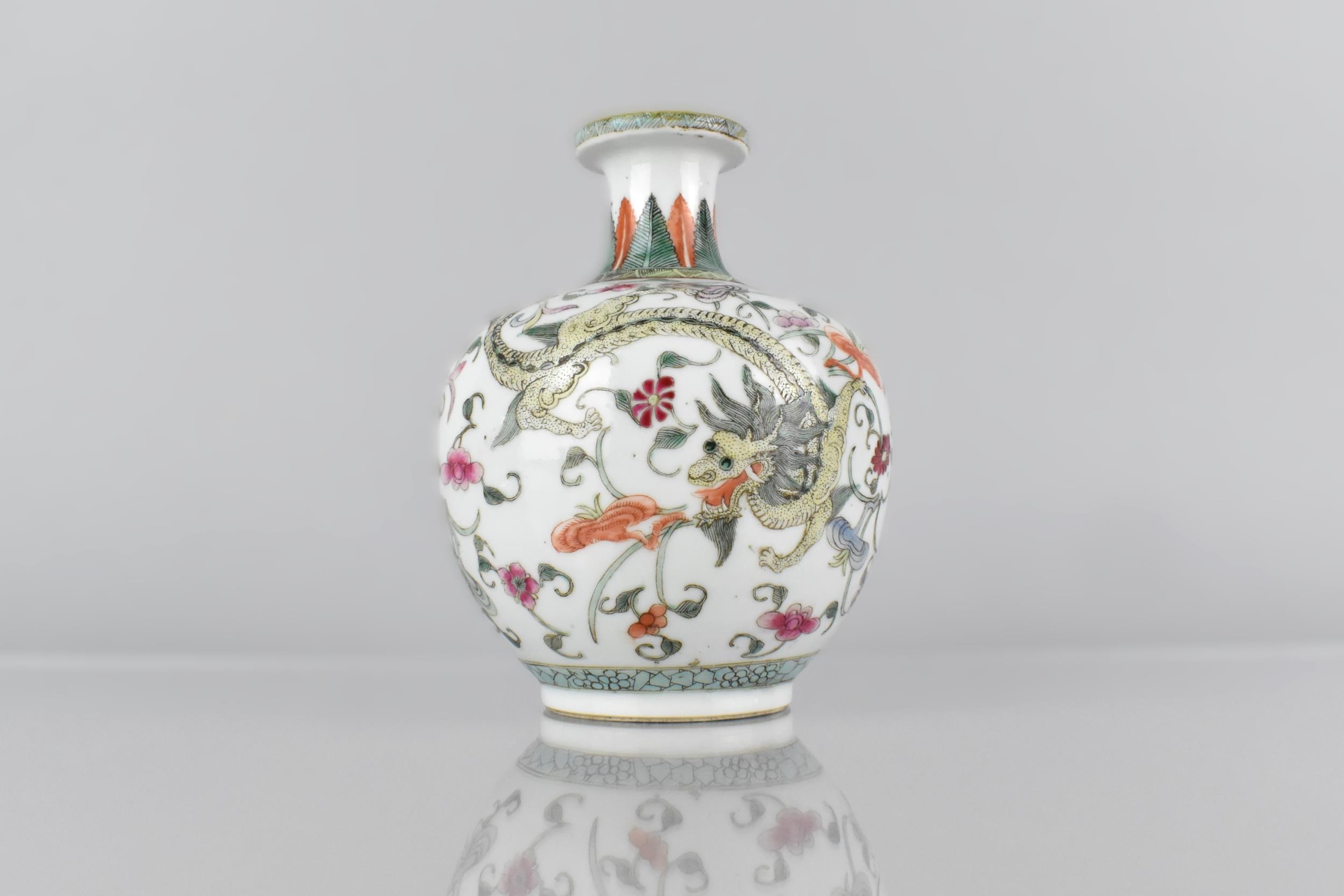 A Chinese Qing Period Porcelain Bottle Vase Decorated in the Famille Rose Palette with Dragons Amongst Foliage, 14.5cm High