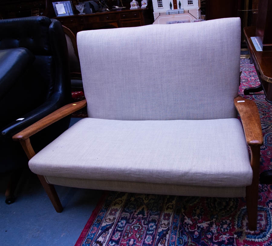 VINTAGE 2 SEATER OATMEAL SETTEE 117L CM