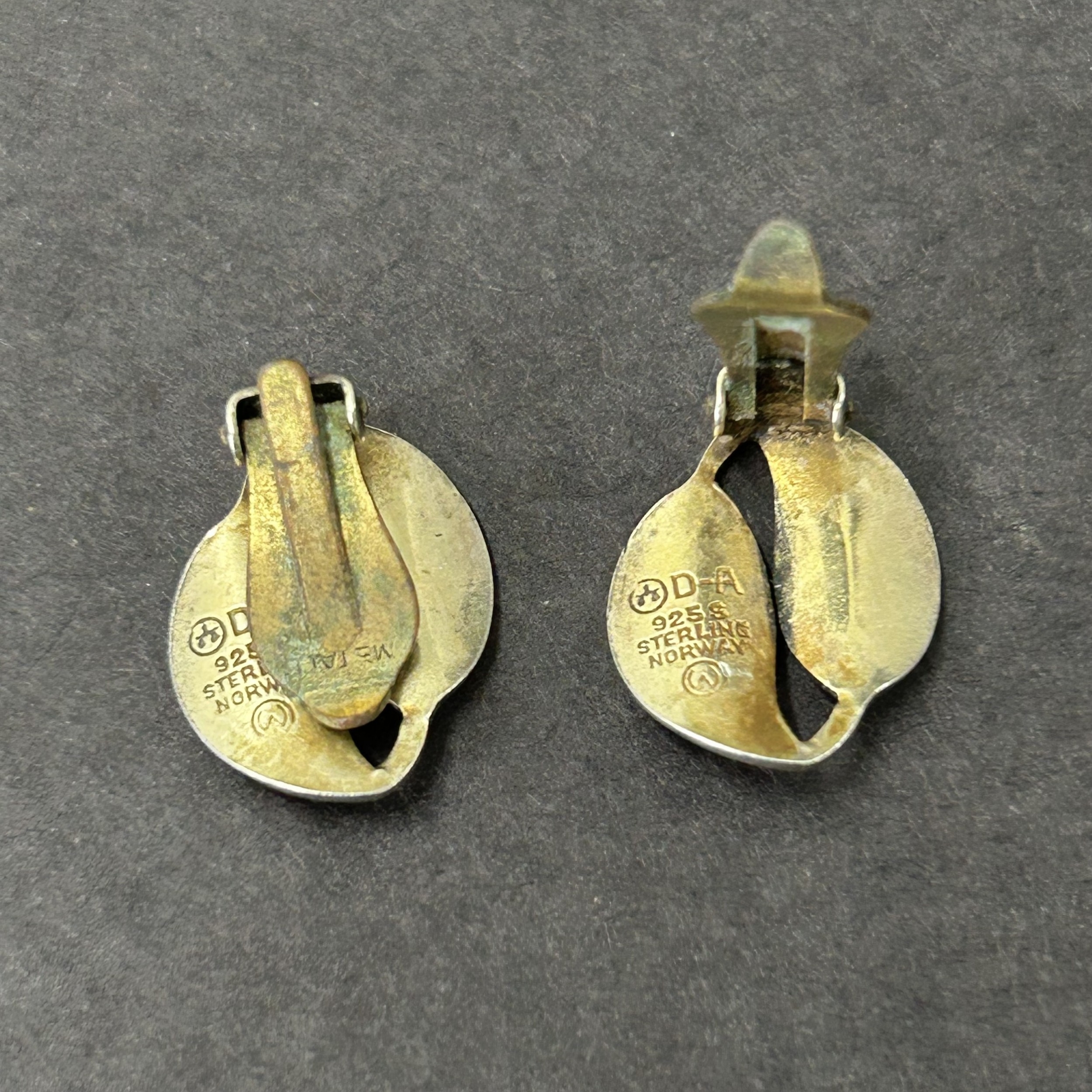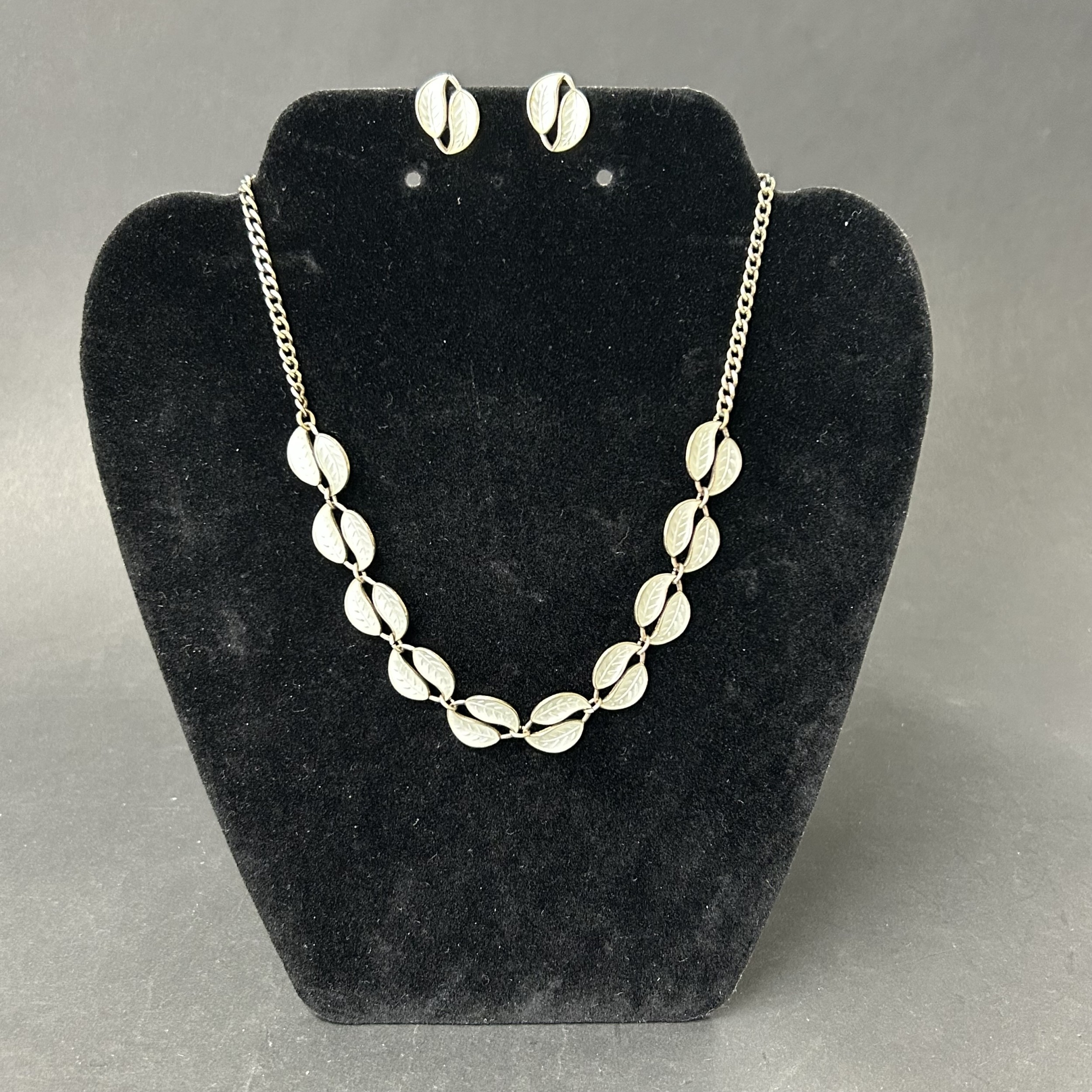 A pair of 925 sterling silver Norwegian made clip-on earrings together with a matching but unmarked necklace (possible replaced catch)