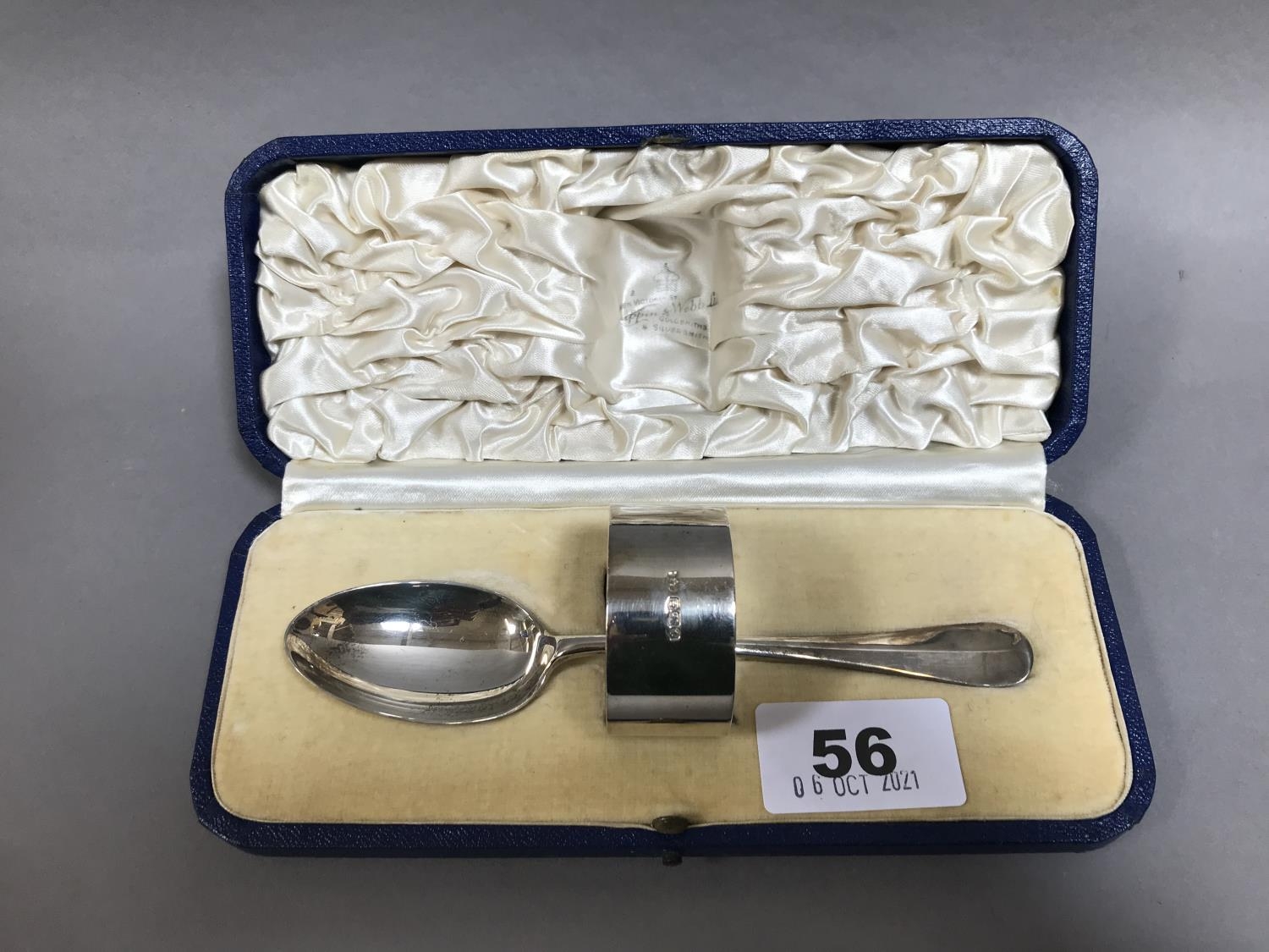 Cased Silver Napkin Ring and Spoon