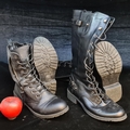 Two pairs of ladies black leather lace up boots, including tall motor cycle boots. Both size UK6 / EU39.