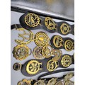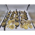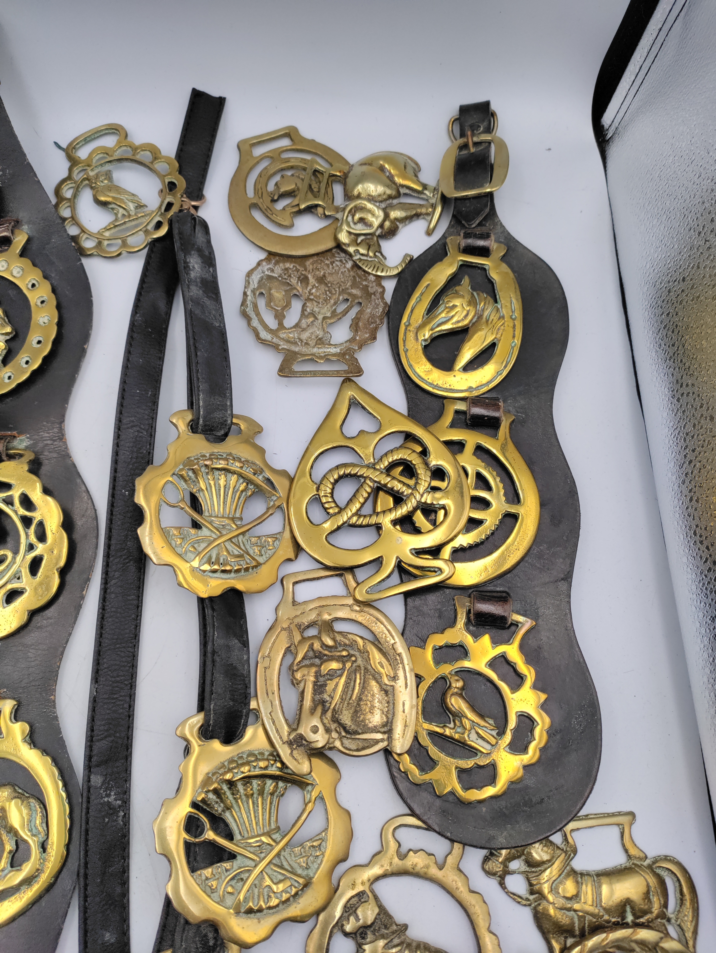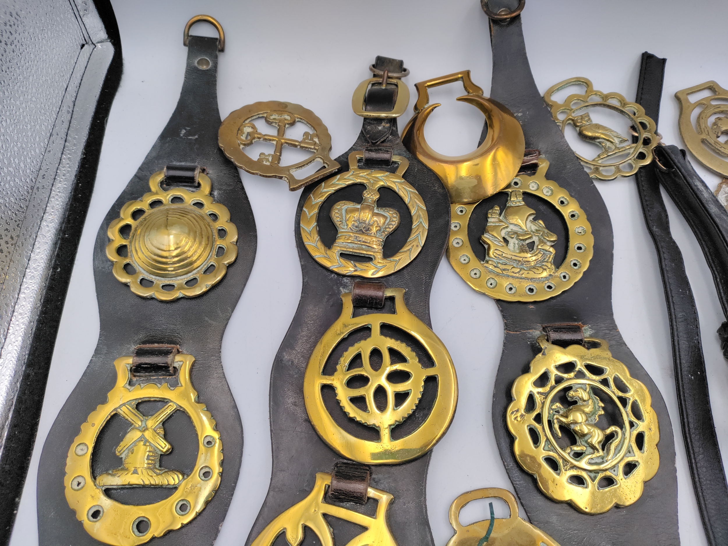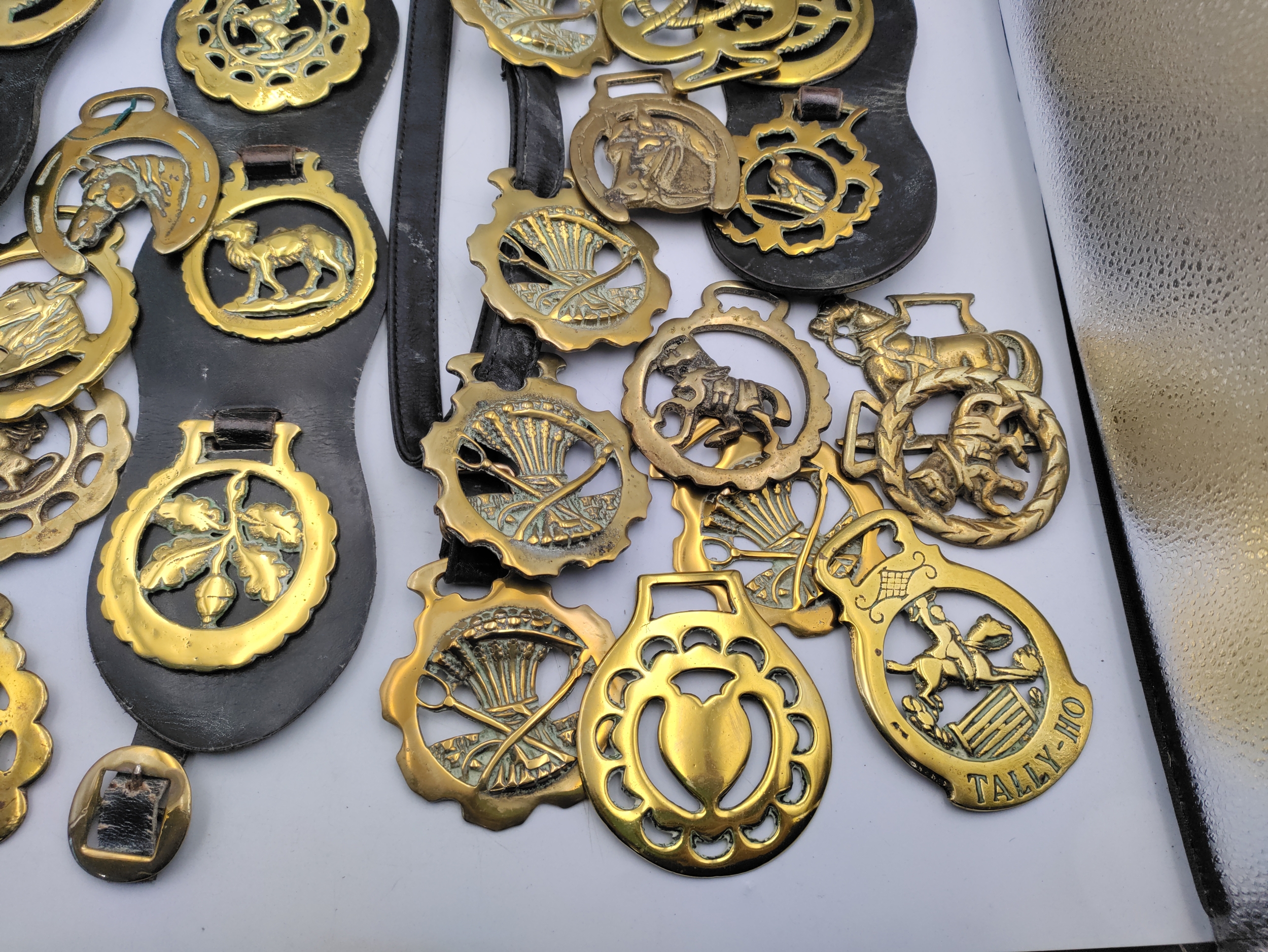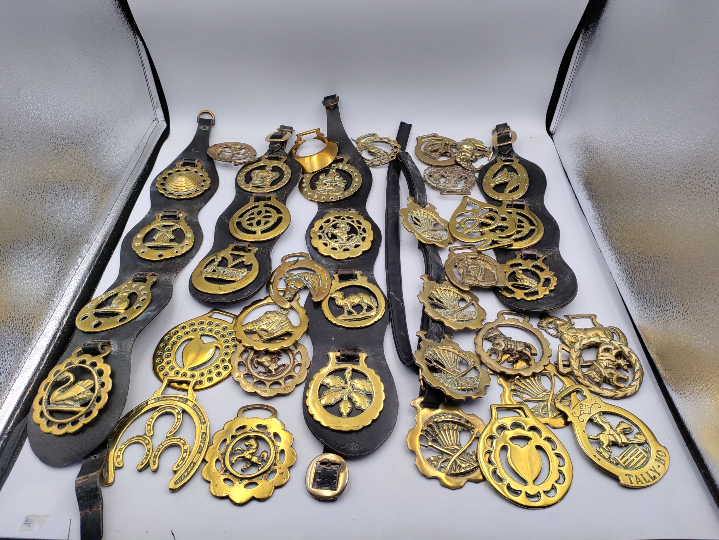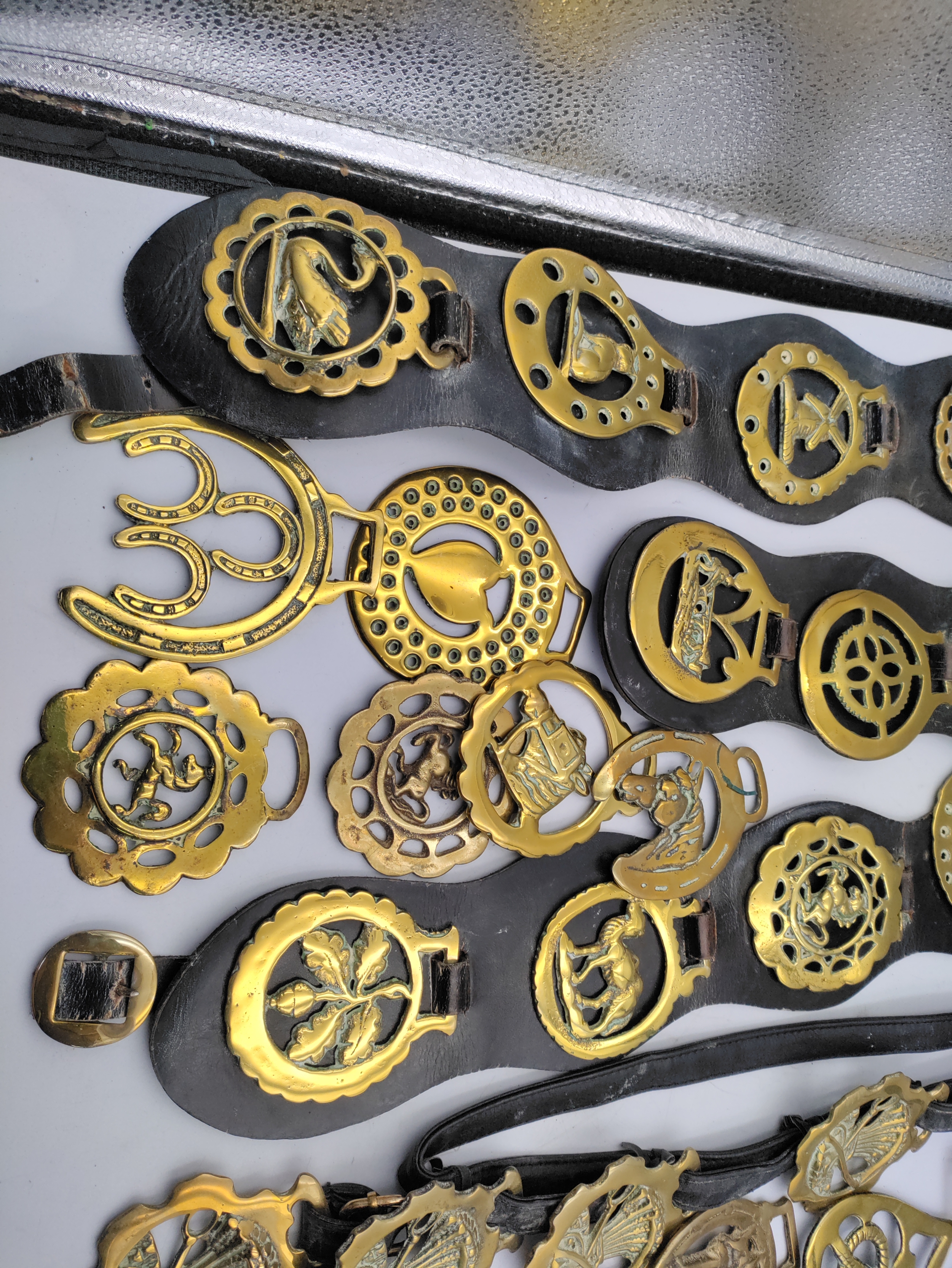 A large collection of horse brasses/medallions.