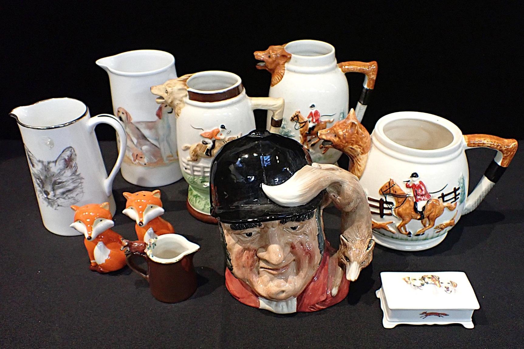 ROYAL DOULTON CHARACTER JUG 'GONE AWAY'with other hunting themed tablewares and ornaments