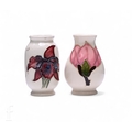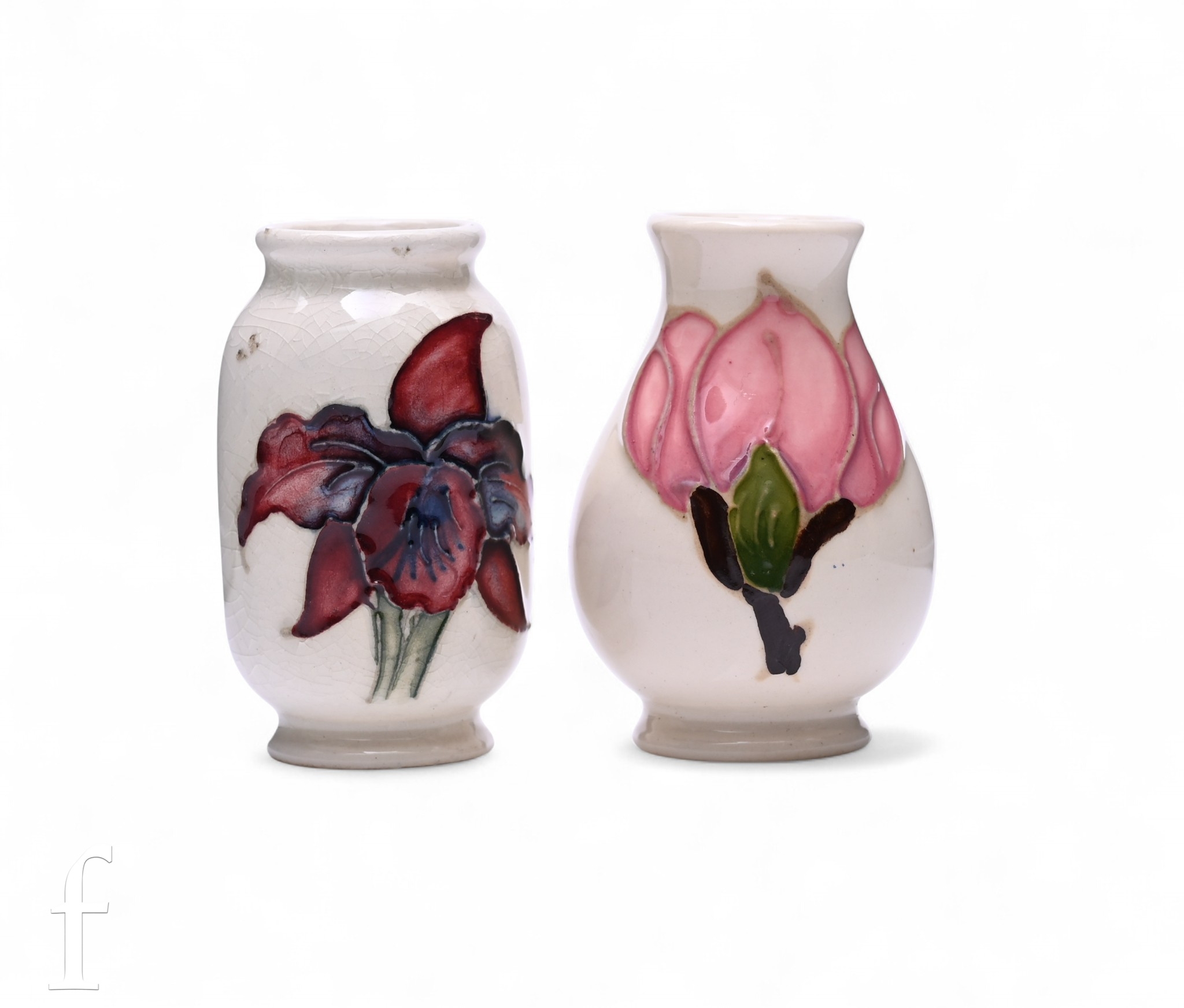 Two miniature Moorcroft vases, Orchid and Magnolia, both tubelined with single flower heads over ivory ground, printed marks, height 5.25cm. (2)