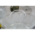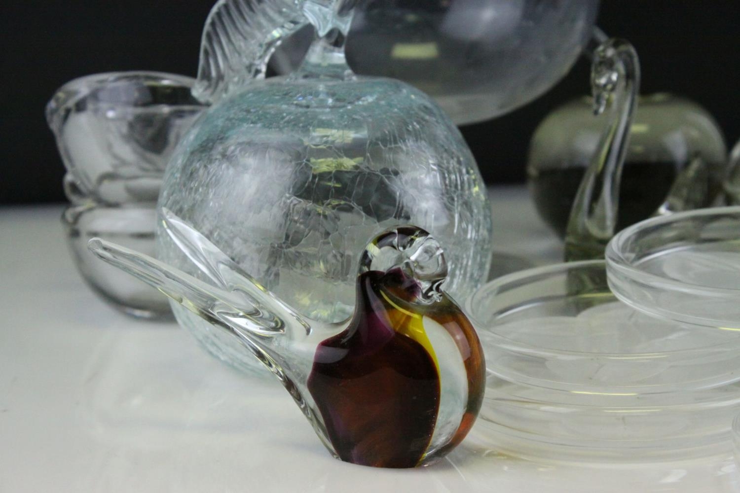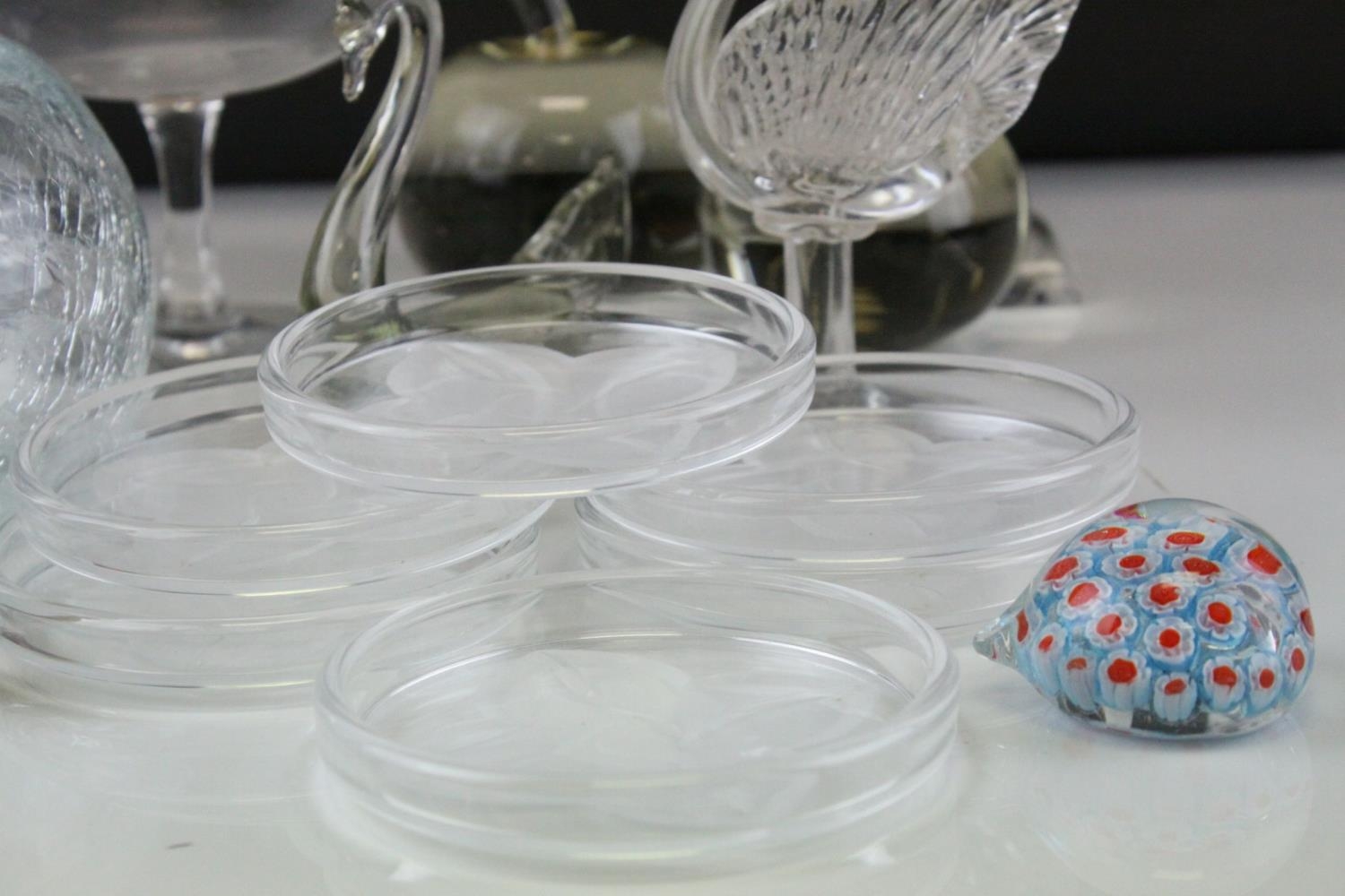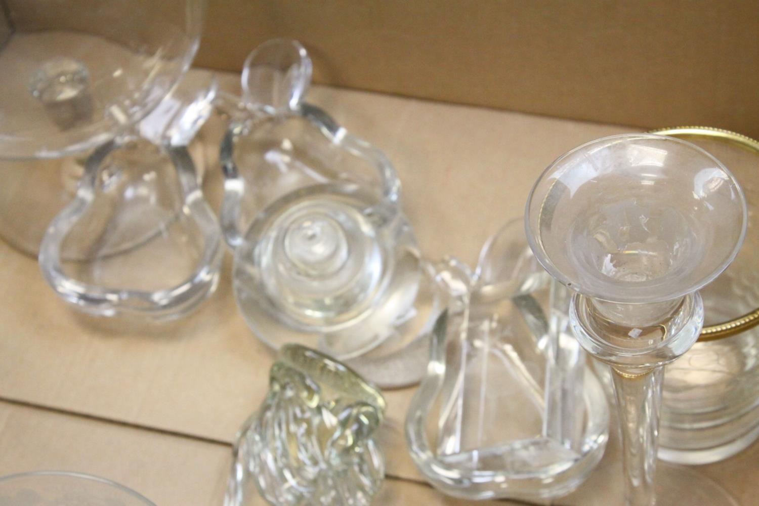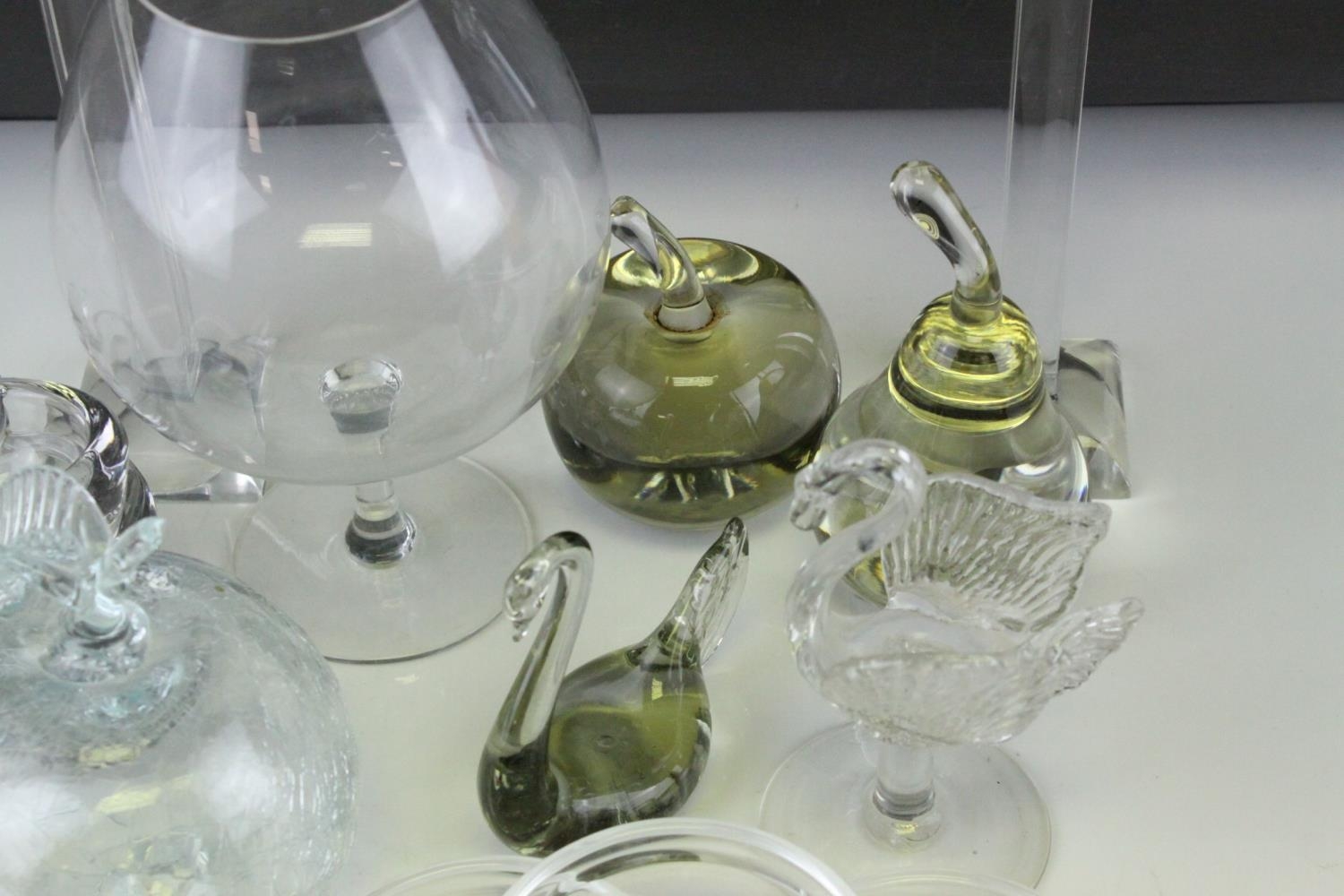 Tray of Mixed Glassware including Candlesticks, Paperweights, Bowls, etc