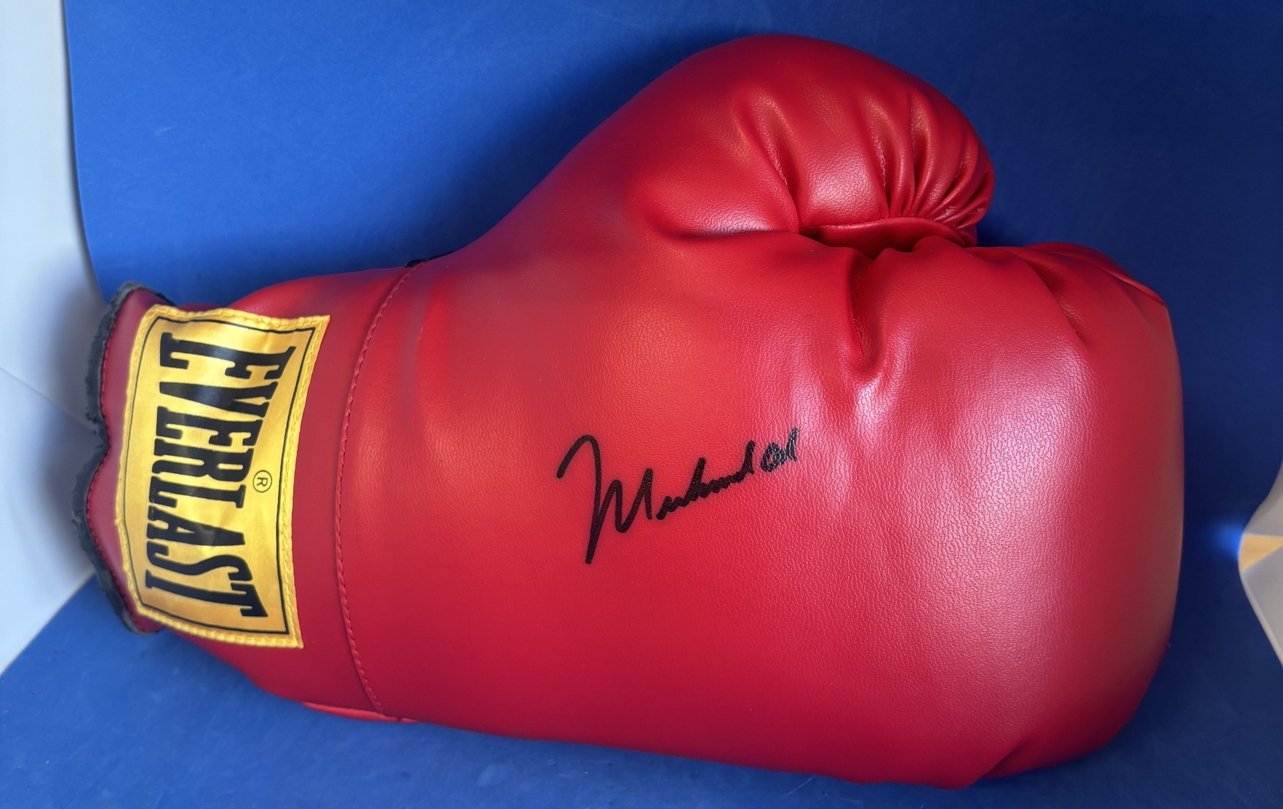 Muhammad Ali signed red Everlast boxing glove.