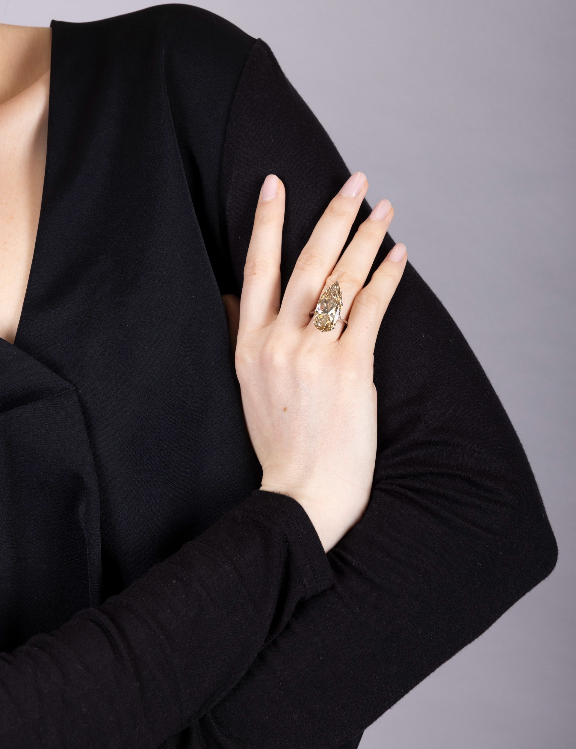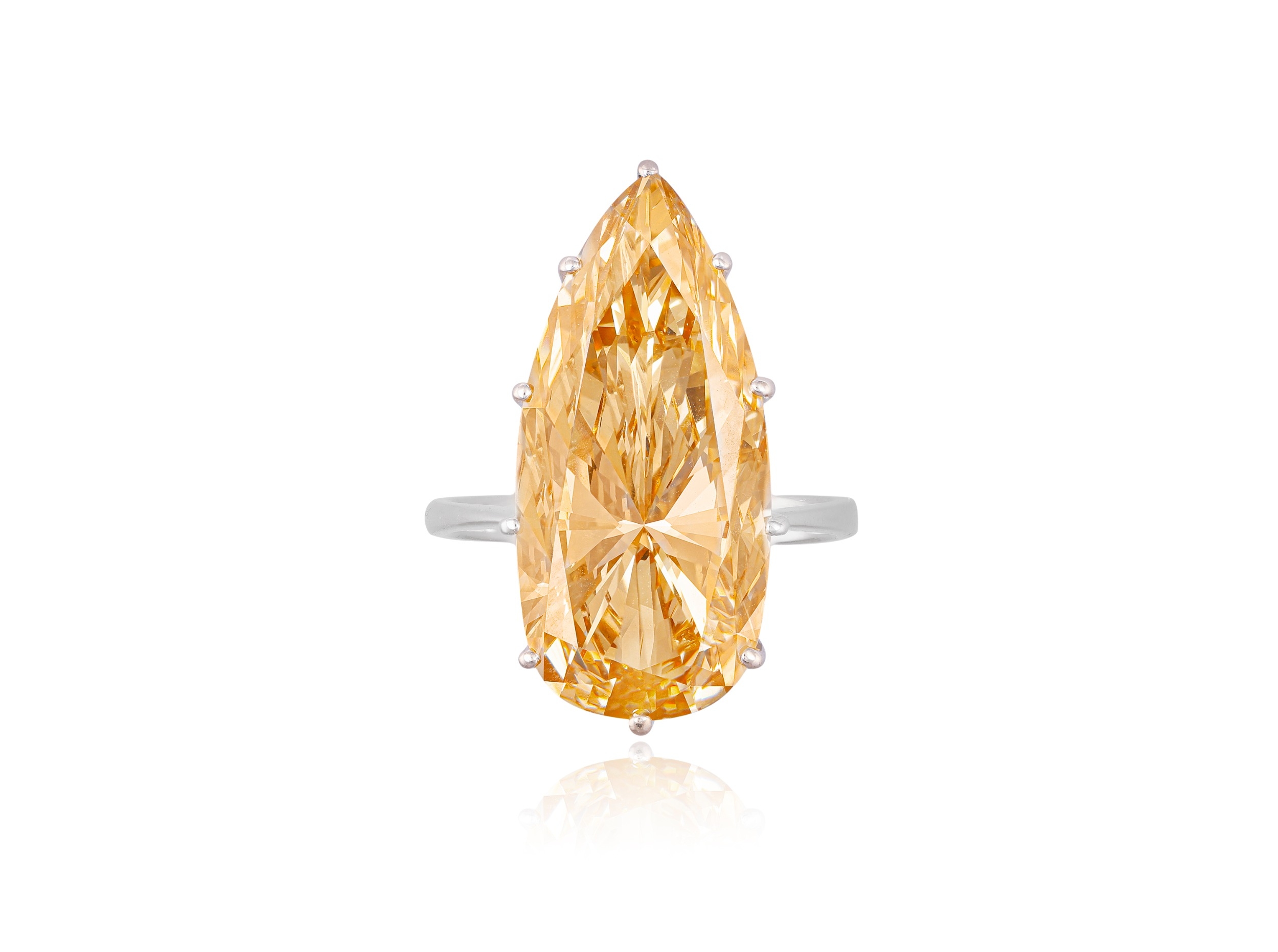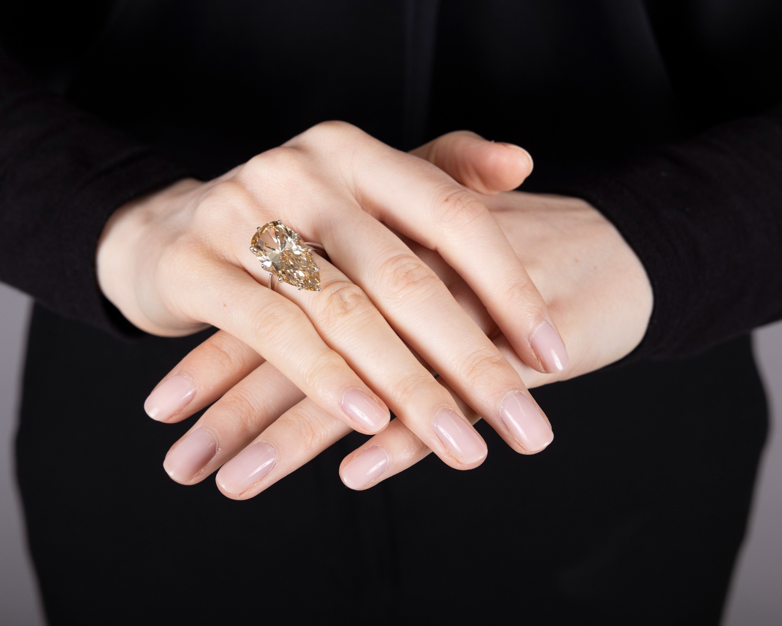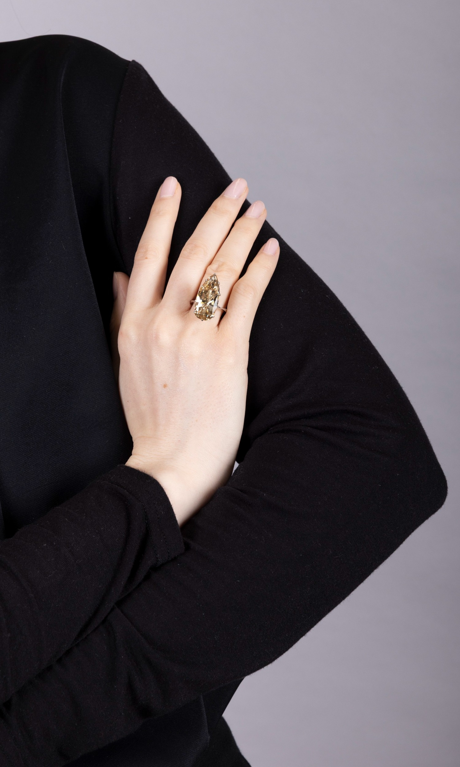 AN IMPORTANT DIAMOND SINGLE-STONE RING The private collection of a Continental Lady (lot 67 to 71) The pear-shaped diamond weighing 12.48cts within a ten-claw setting, to a plain hoop, mounted in 18K gold, ring size N½ Accompanied by a report from the HRD laboratory in Antwerp, stating that the natural diamond weighing 12.48cts, is of Fancy Intense Yellowish Brown colour, VS1 clarity. Report no. 260000060316, dated March 17th 2026. Beyond Colourless Fancy coloured diamonds have been prized since at least the 17th century, when Jean-Baptiste Tavernier, the celebrated French merchant and traveller, began recording notable examples in his accounts. In 1669 he sold the famed Tavernier Blue, later known as the French Blue, to Louis XIV, and he also described pink diamonds, among them the remarkable Grand Table, a rough stone of over 200 carats shown to him in Golconda in 1642. Around 1668, he is also known to have purchased two pale pink diamonds, which he illustrated in his travel book. Such stones are rarer than their near-colourless counterparts, their colour arising from unusual conditions during formation deep within the earth. In most coloured diamonds, trace elements within the crystal structure are responsible for the hue: nitrogen produces yellow, while boron gives blue. Pink diamonds differ in this respect, their colour being attributed instead to a distortion of the crystal structure. As with all coloured diamonds, rarity and intensity of colour remain central to their appeal, and the most vivid stones are the most sought after.