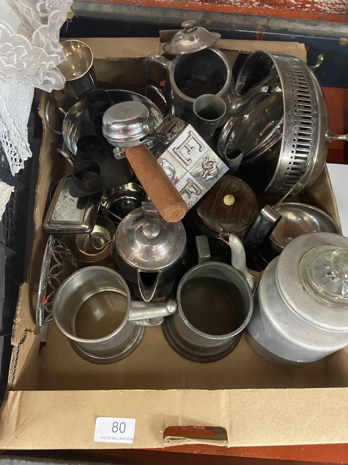 BOX OF METAL WARE INCL PLATED