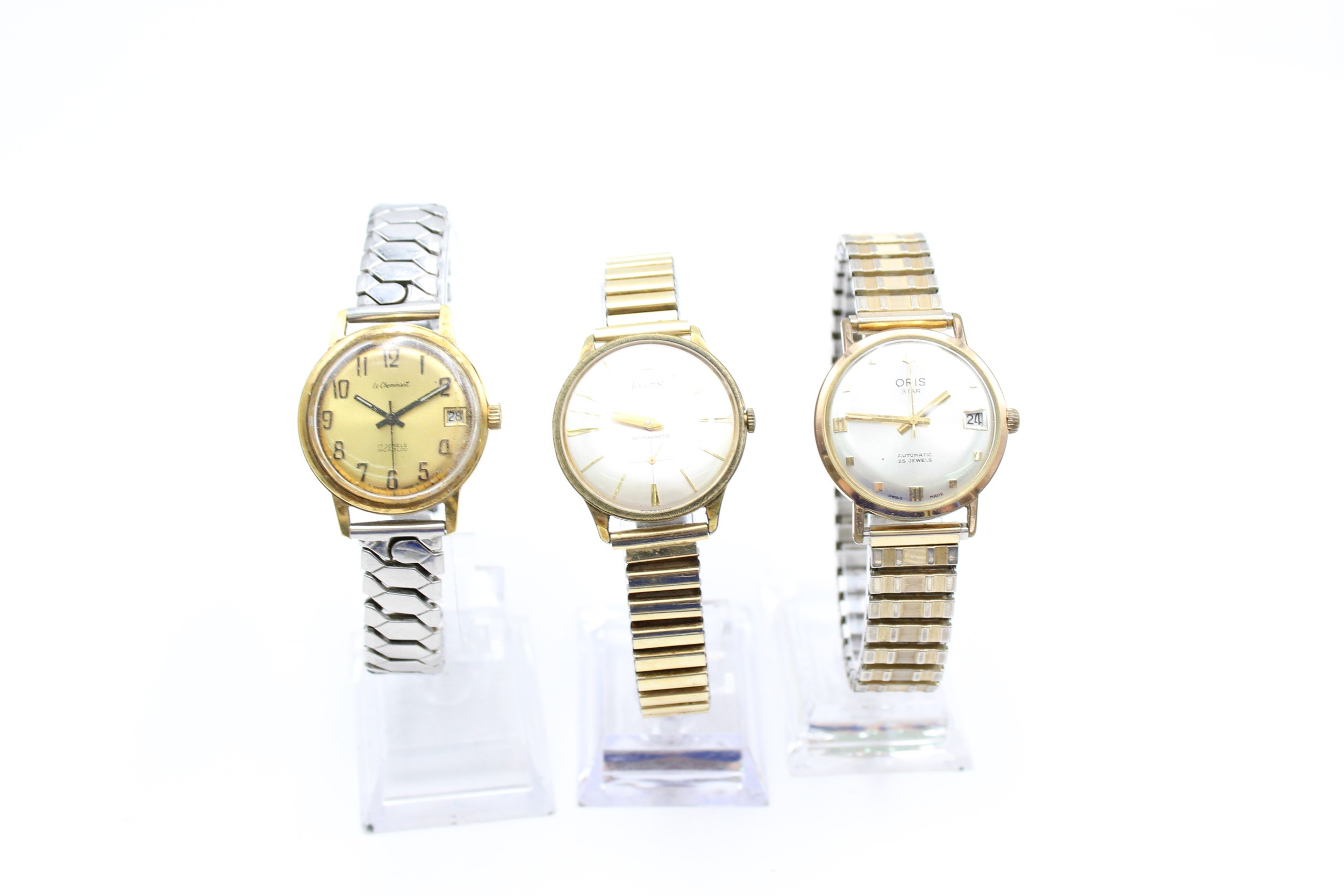 3 x Vintage Gents Gold Tone WRISTWATCHES Hand-Wind / Automatic WORKING Inc. Oris