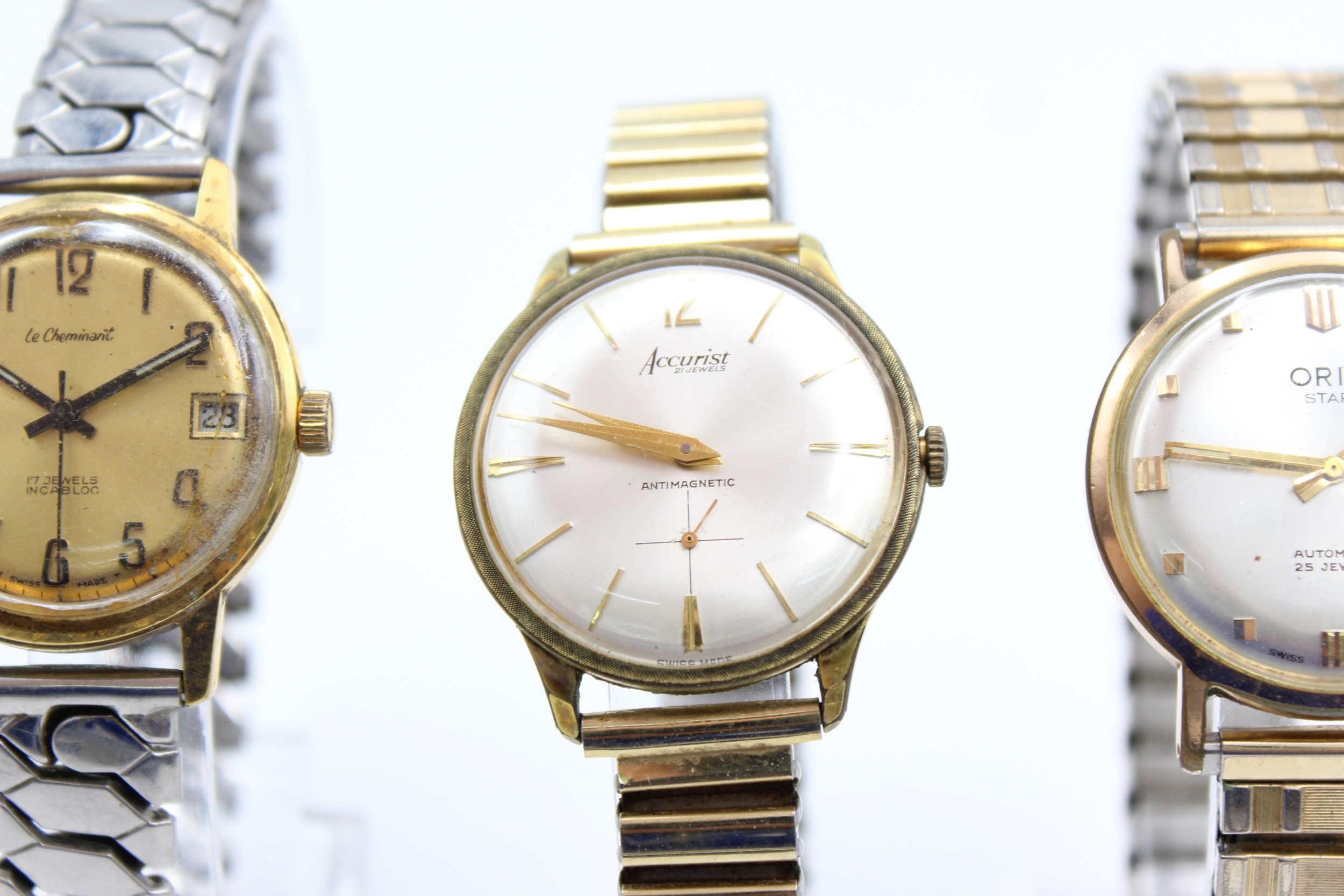 Vintage Gents Gold Tone WRISTWATCHES Hand-Wind / Automatic WORKING Inc. Oris Star, Accurist Etc Items are in vintage condition Signs of age & wear See photographs