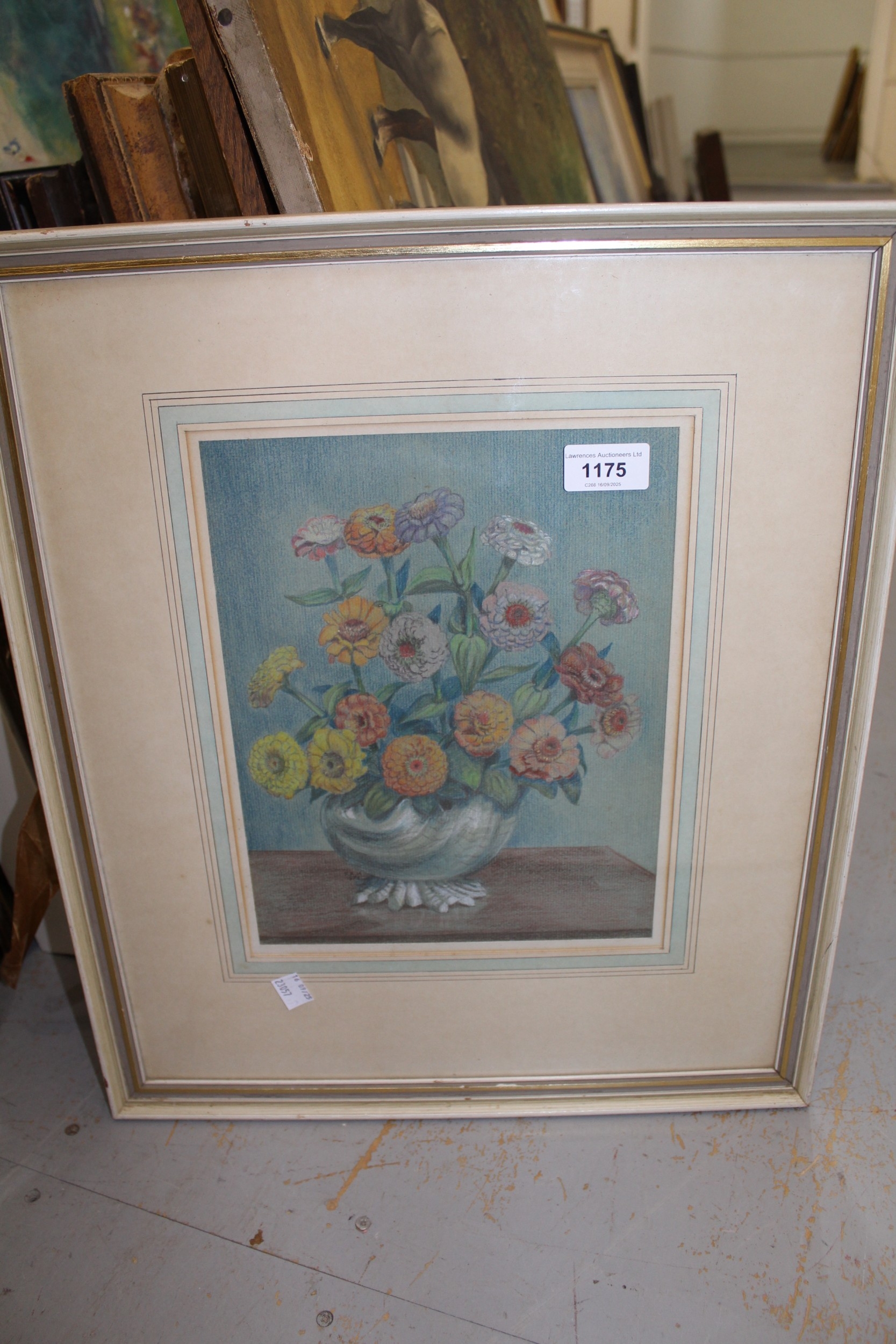 Modern pastel still life of flowers in a shell form vase, monogrammed FAH, dated 1971, 27 x 21cm