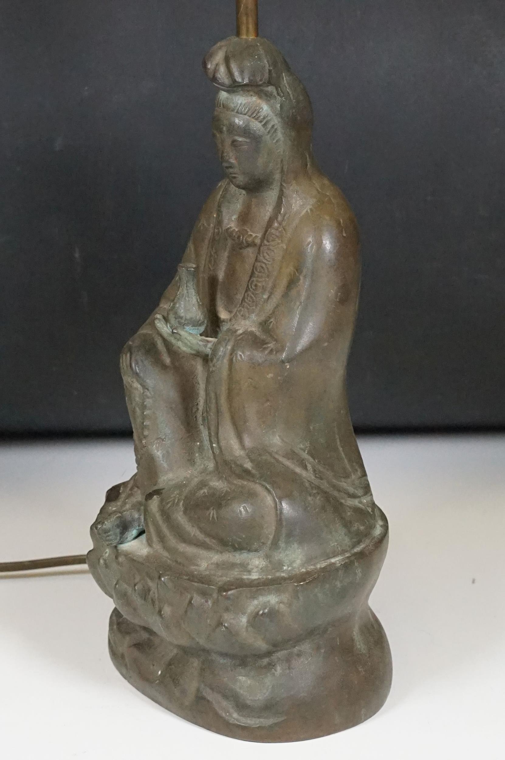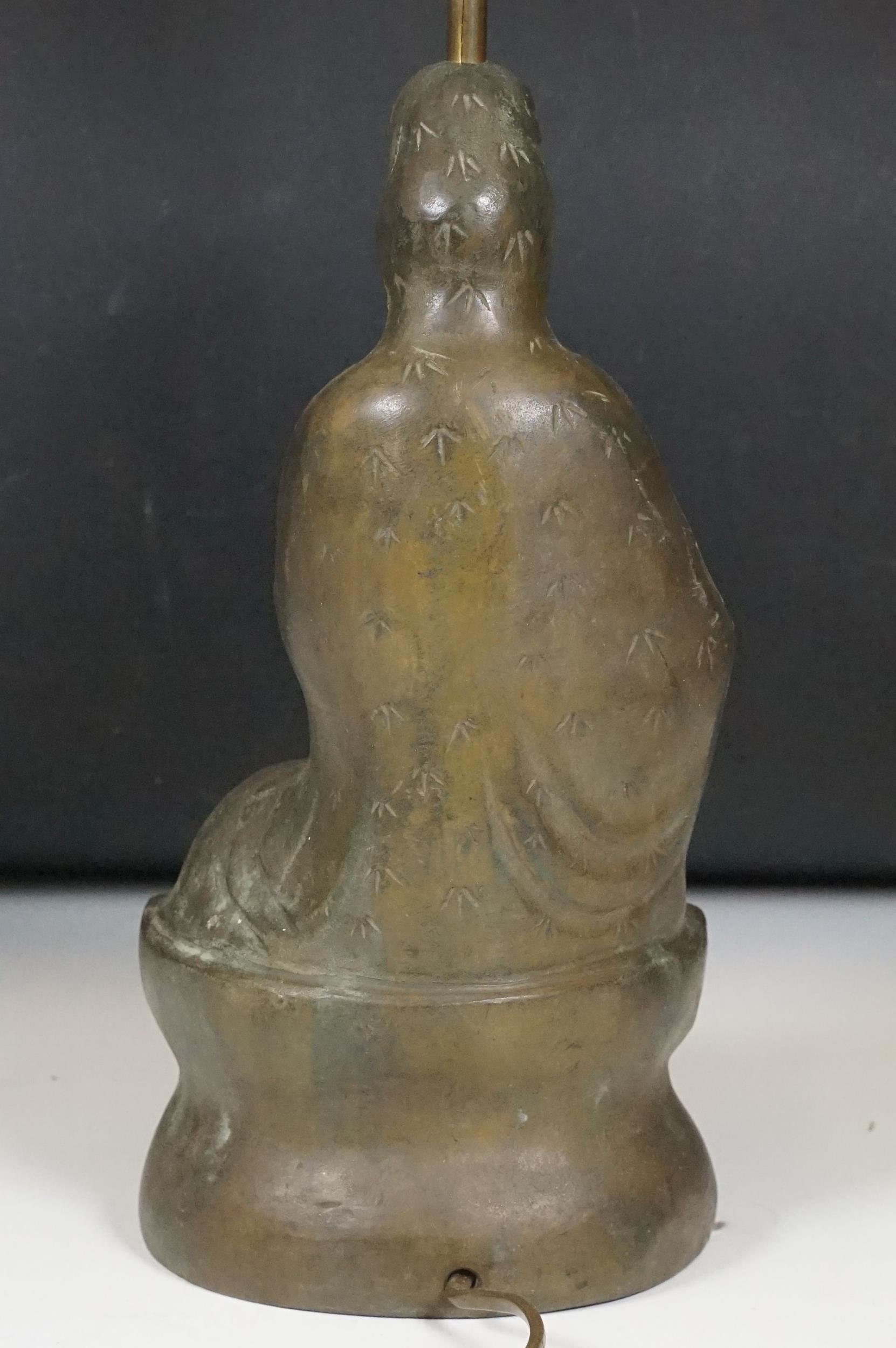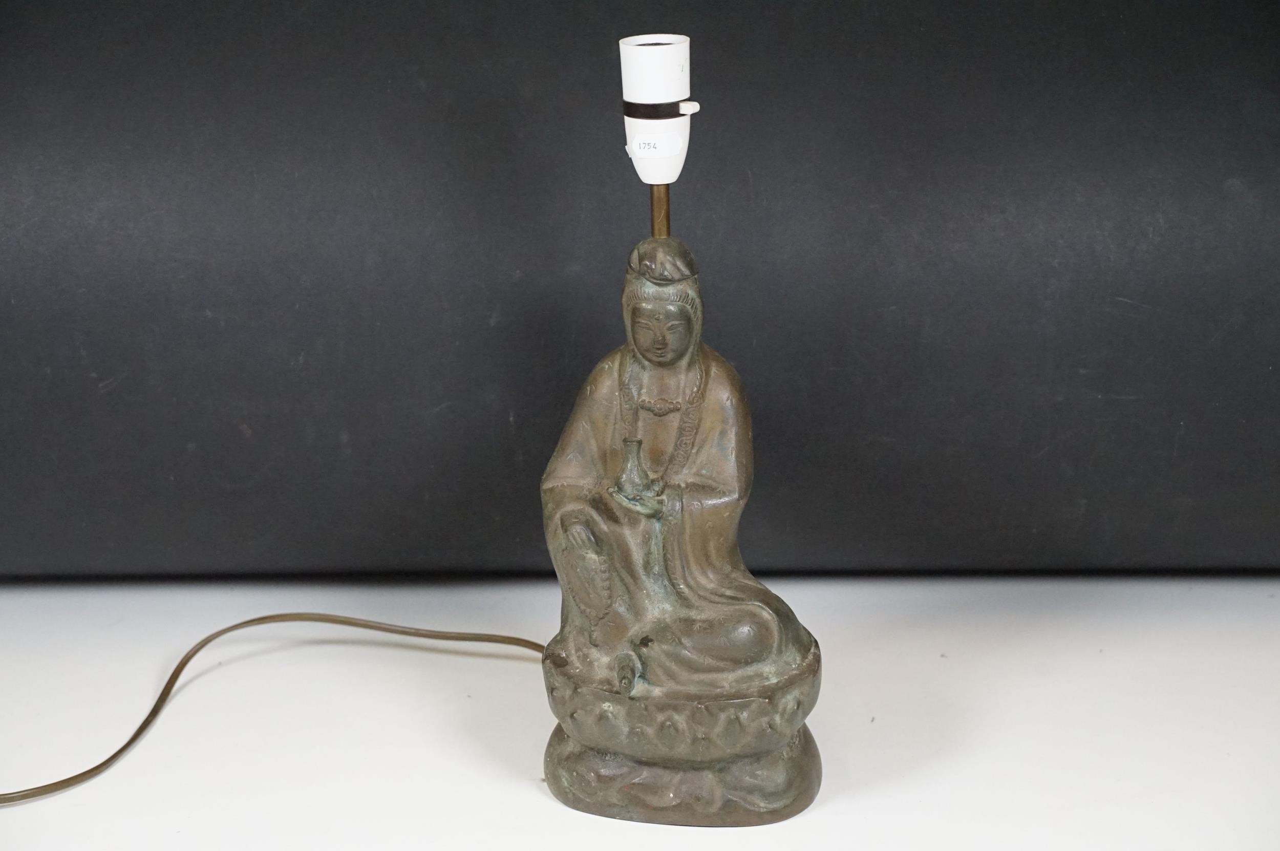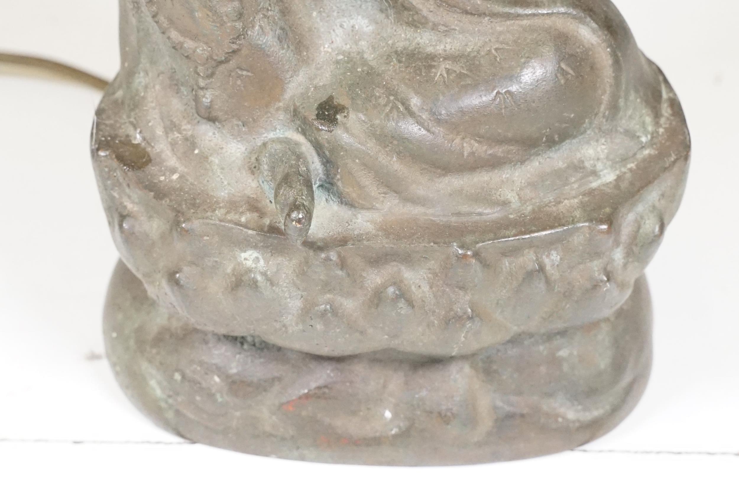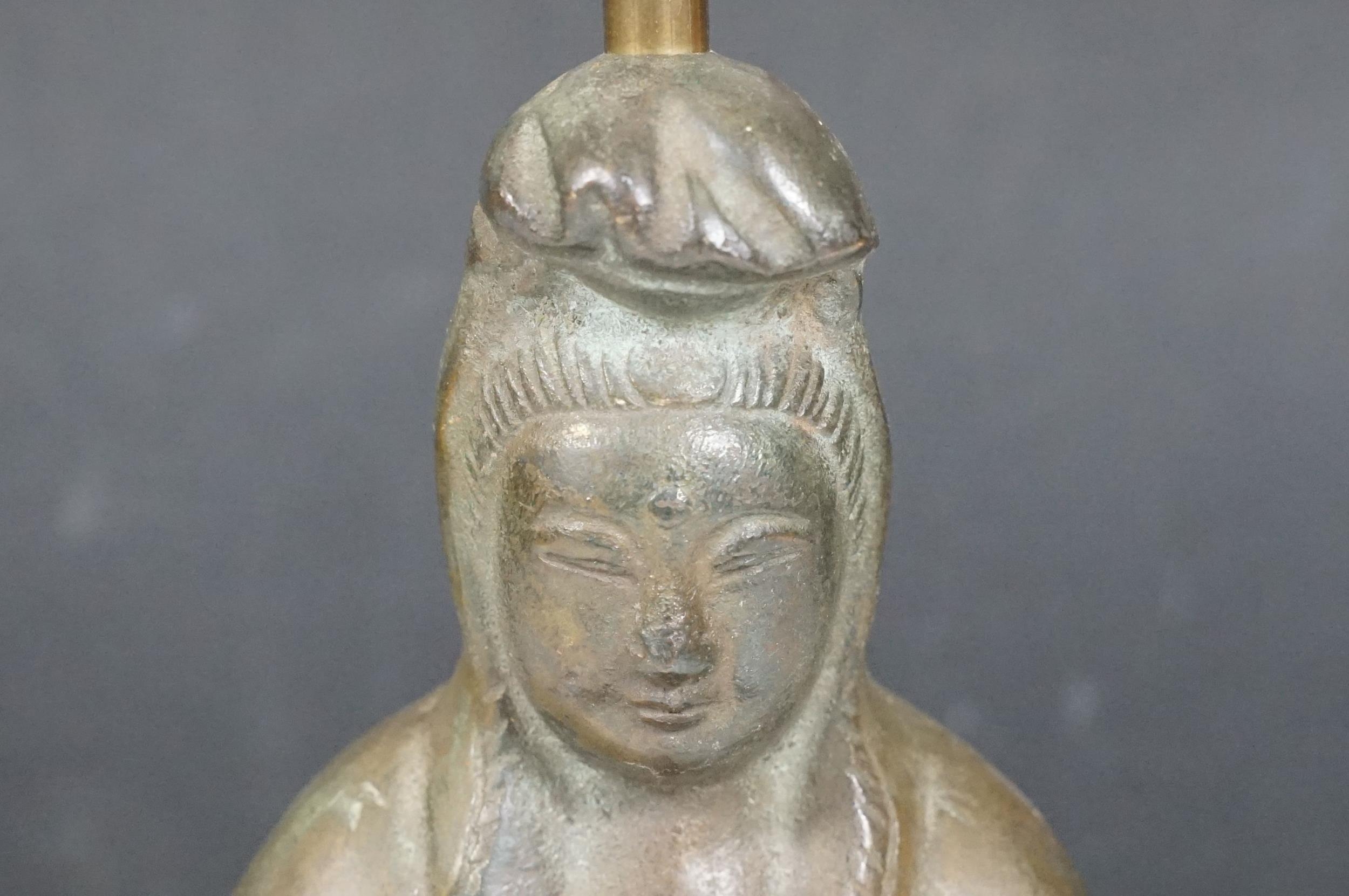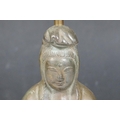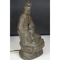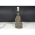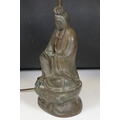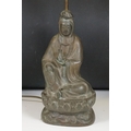 Bronze Chinese seated buddha figure lamp base, possibly of Guanyin