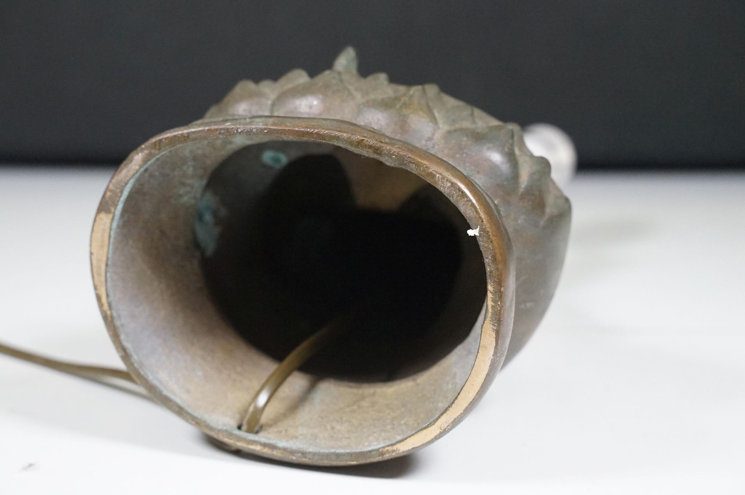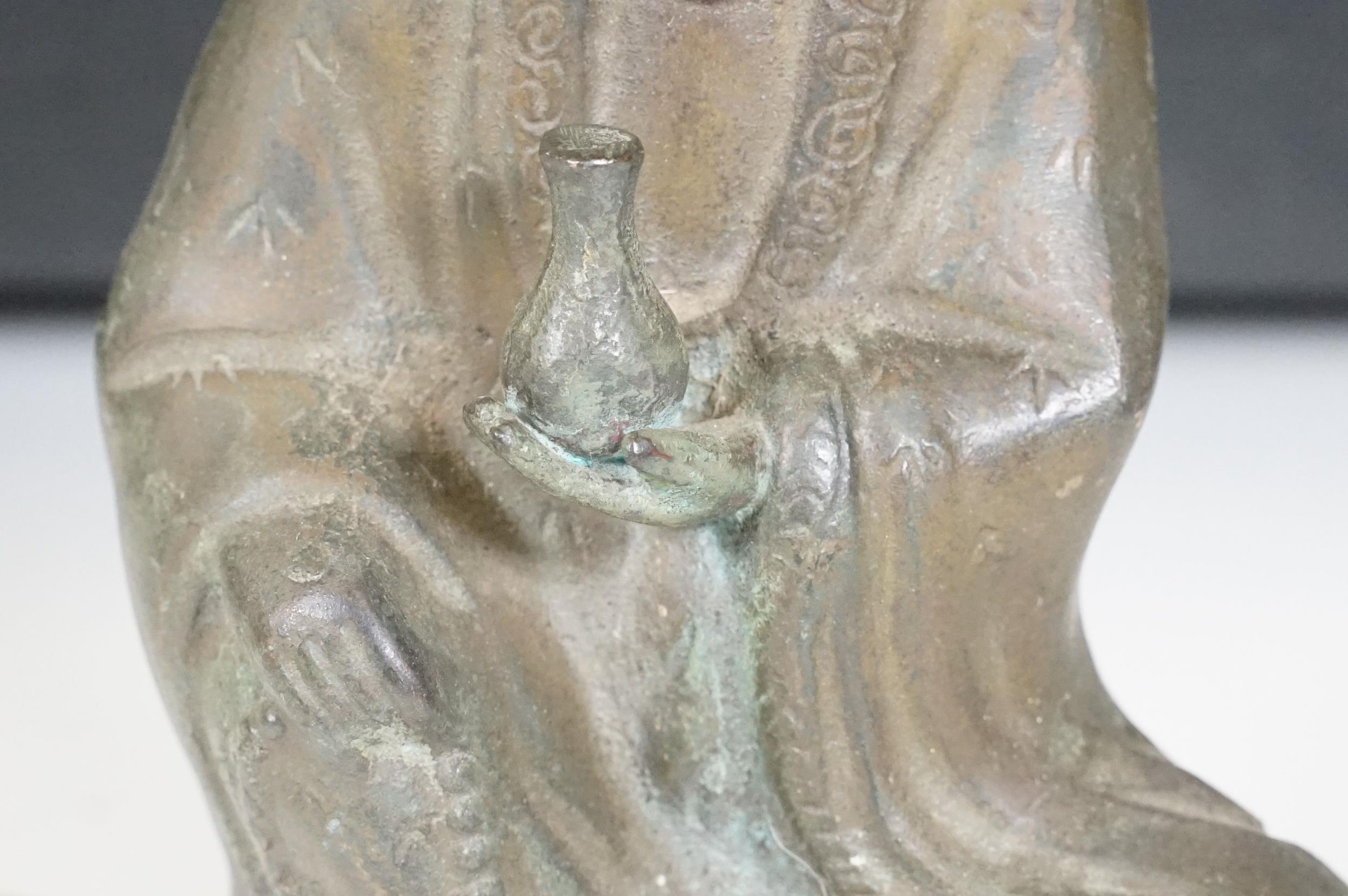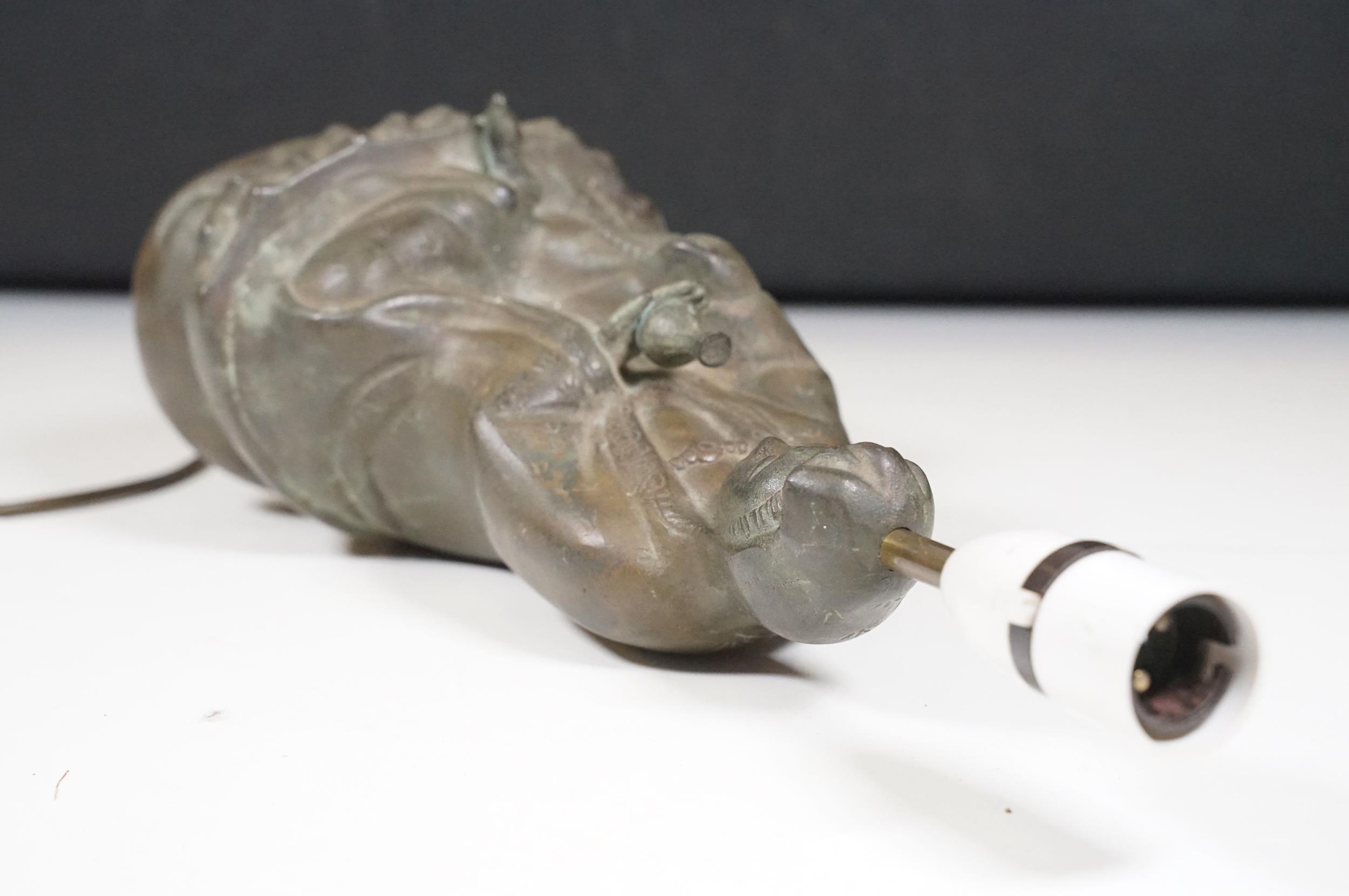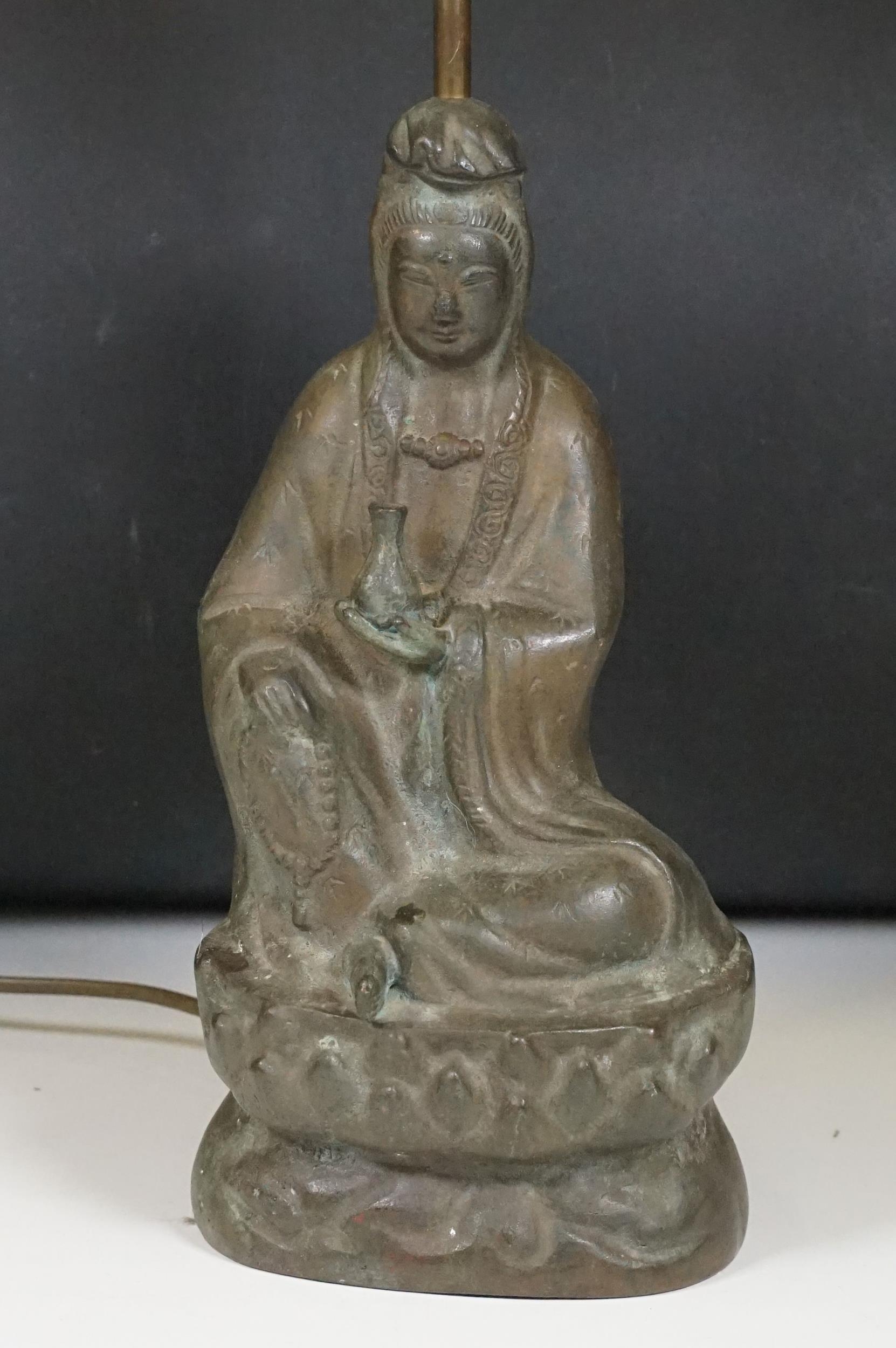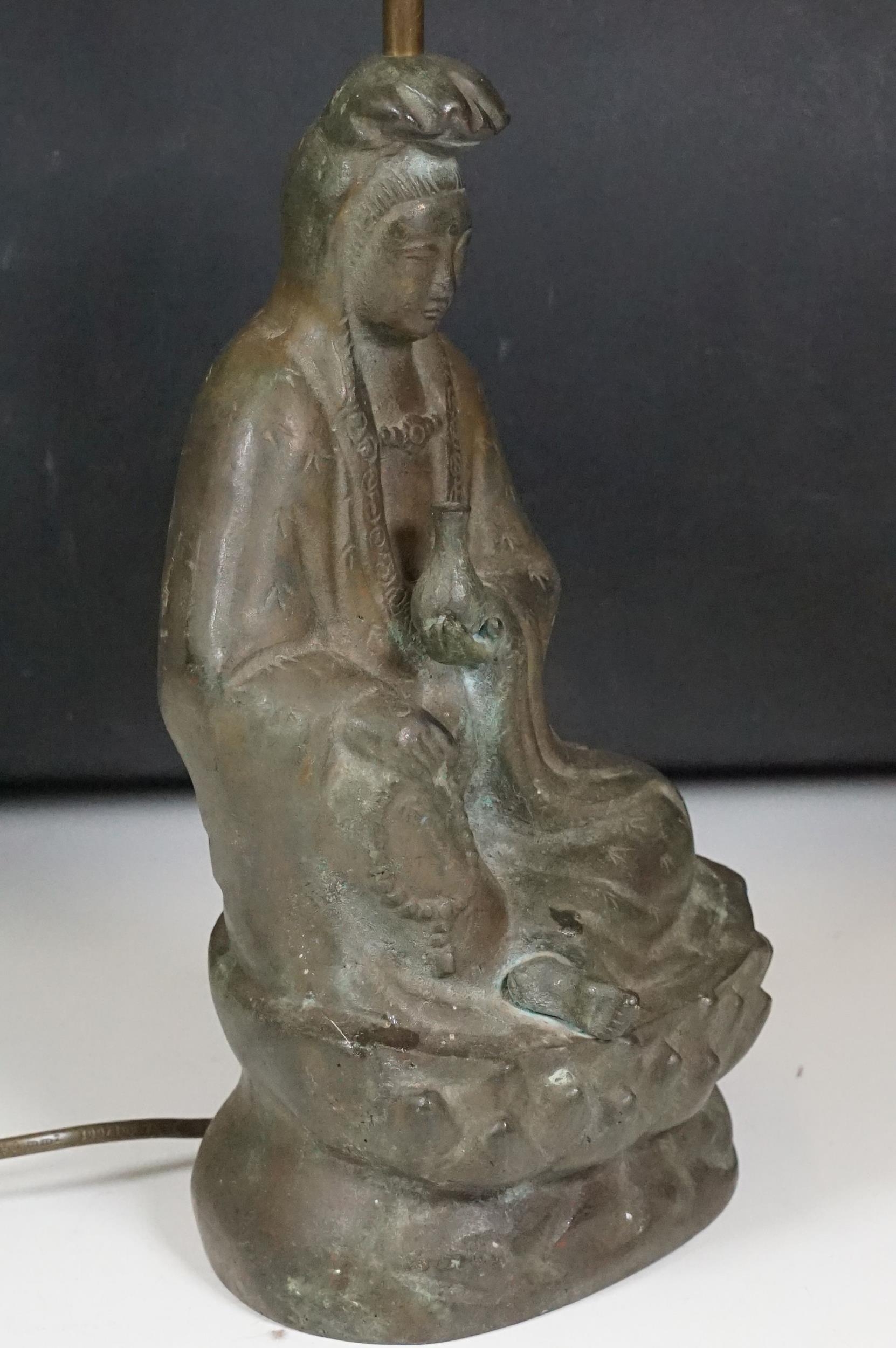 Bronze Chinese seated buddha figure lamp base, possibly of Guanyin