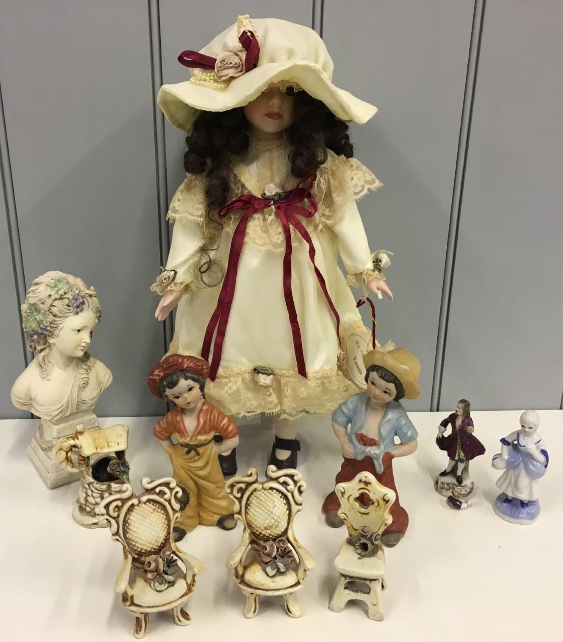 A mixed lot of nine various ornaments, together with a Leonardo "Emma" doll.