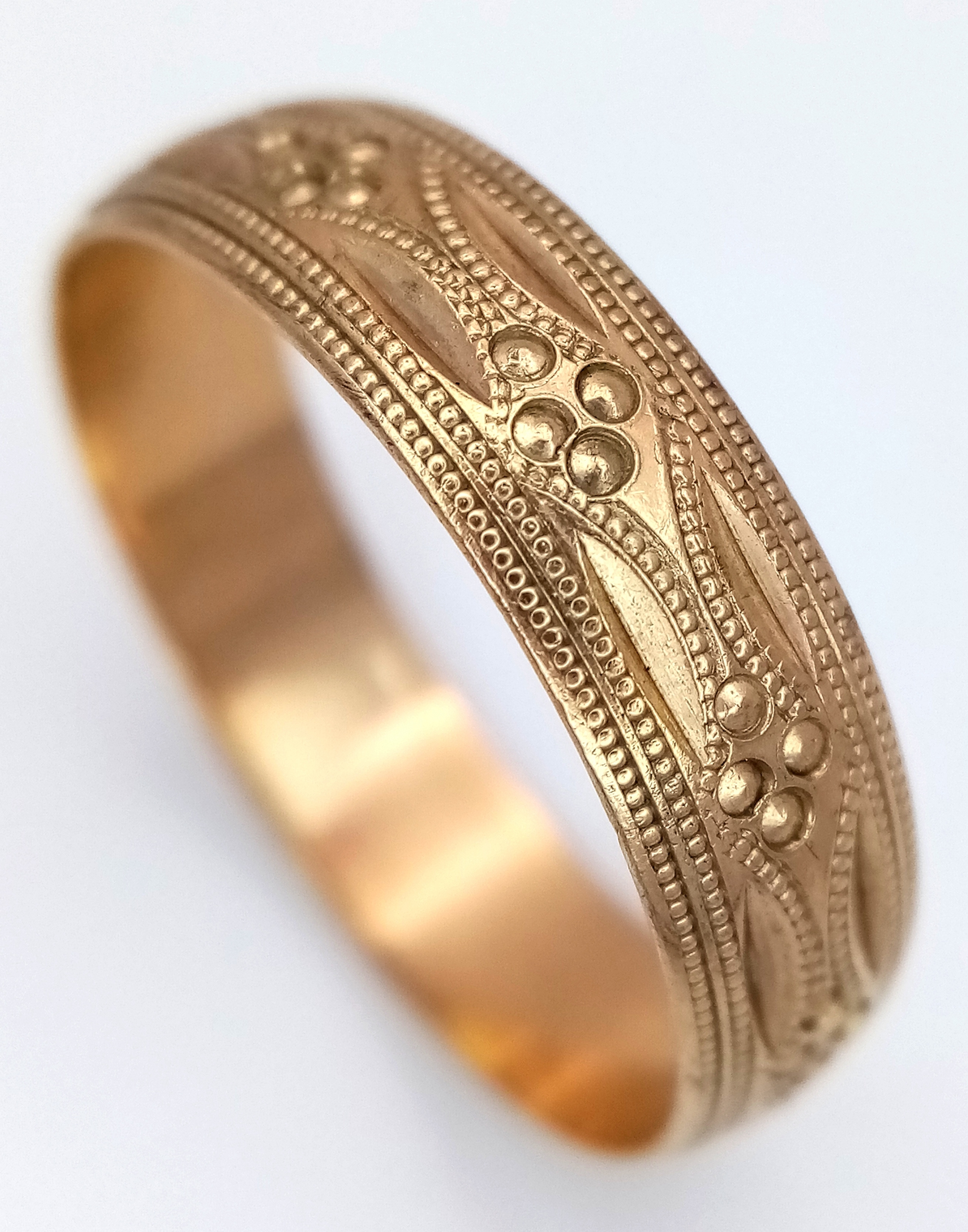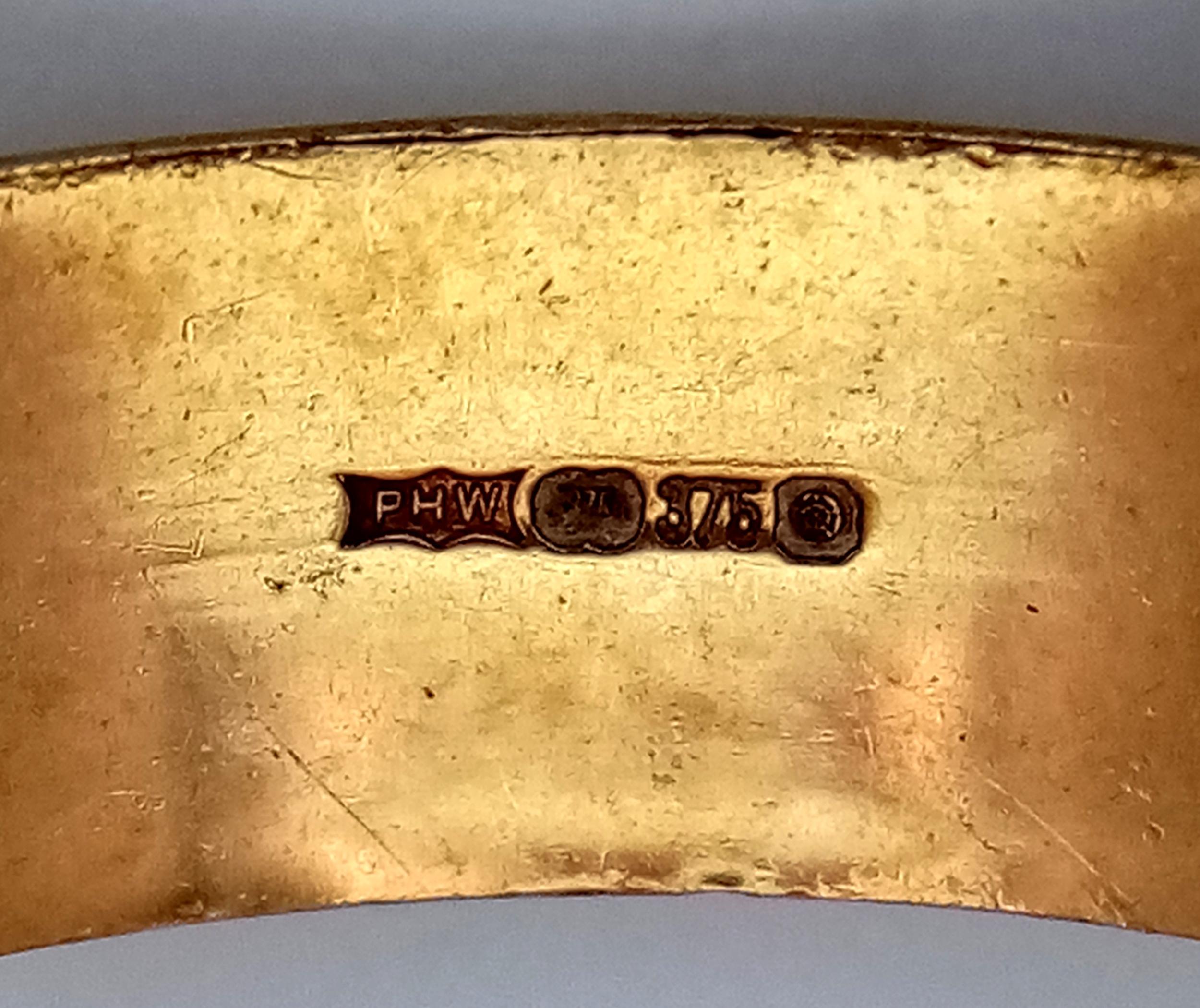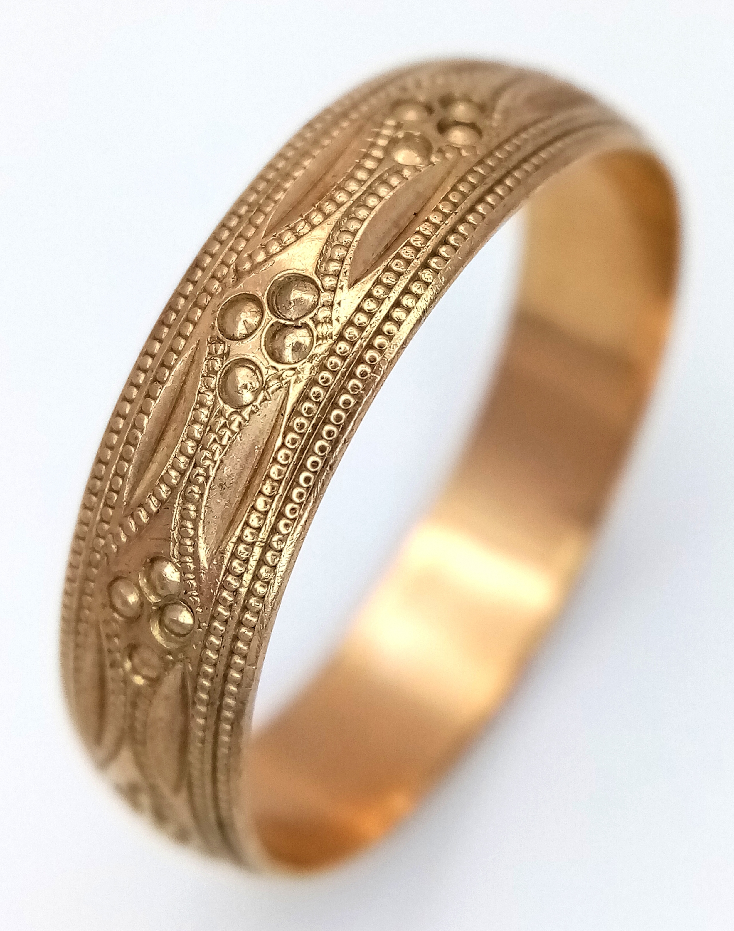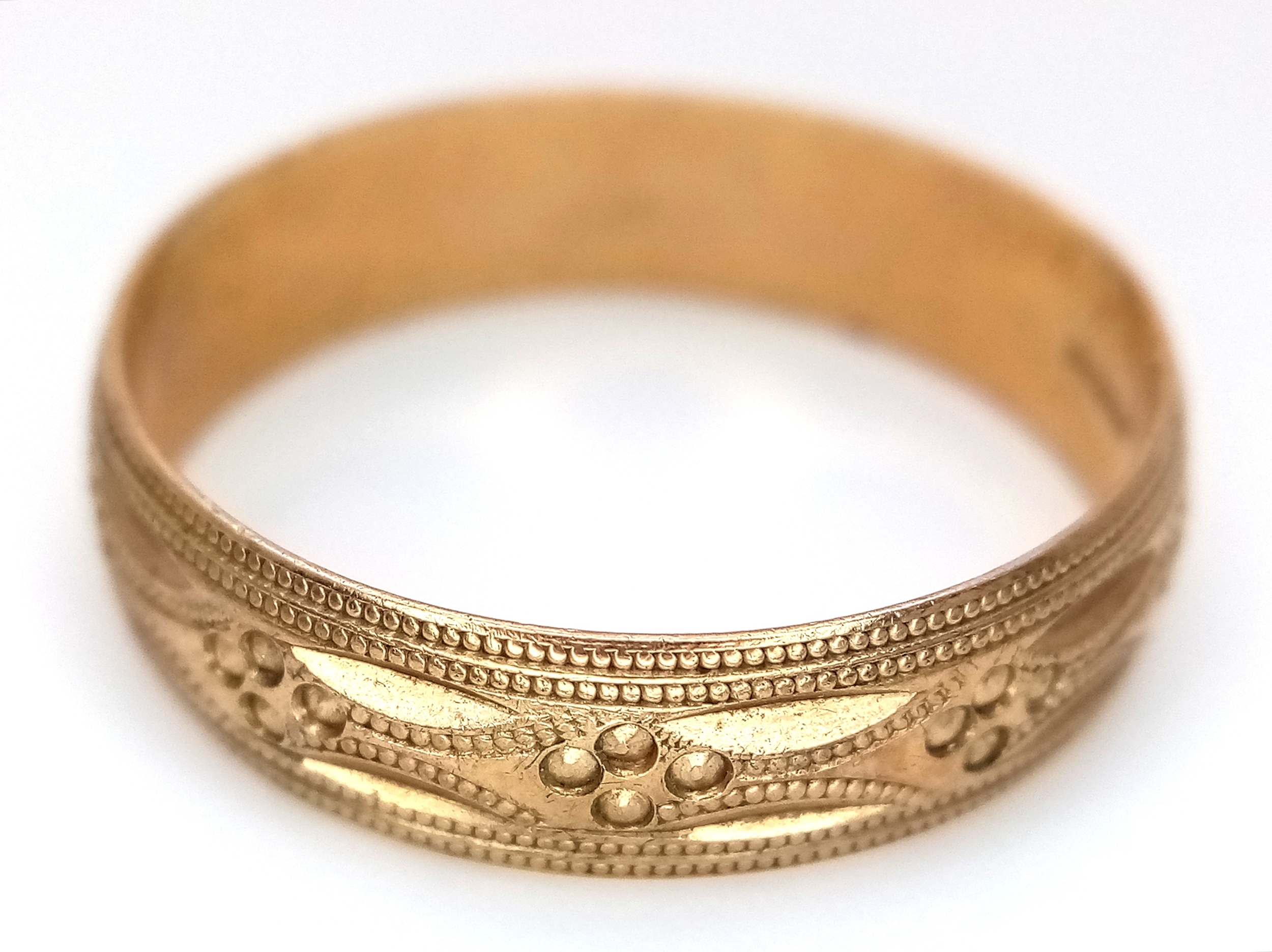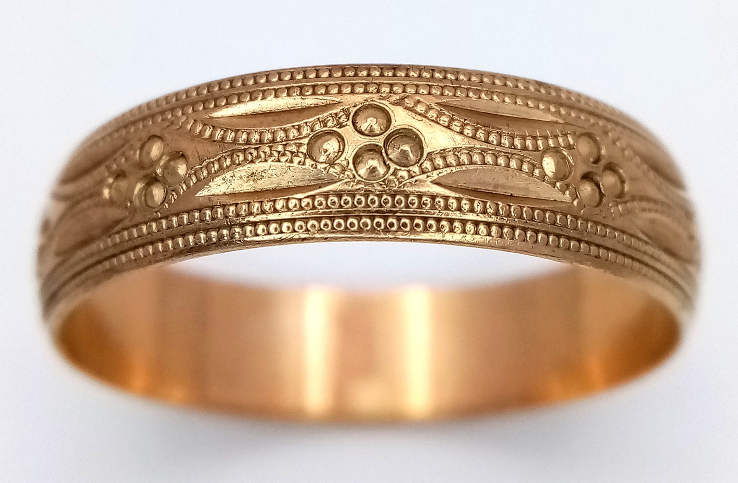 A 9K GOLD GENTS PATTERNED BAND RING . 3.5gms size Z