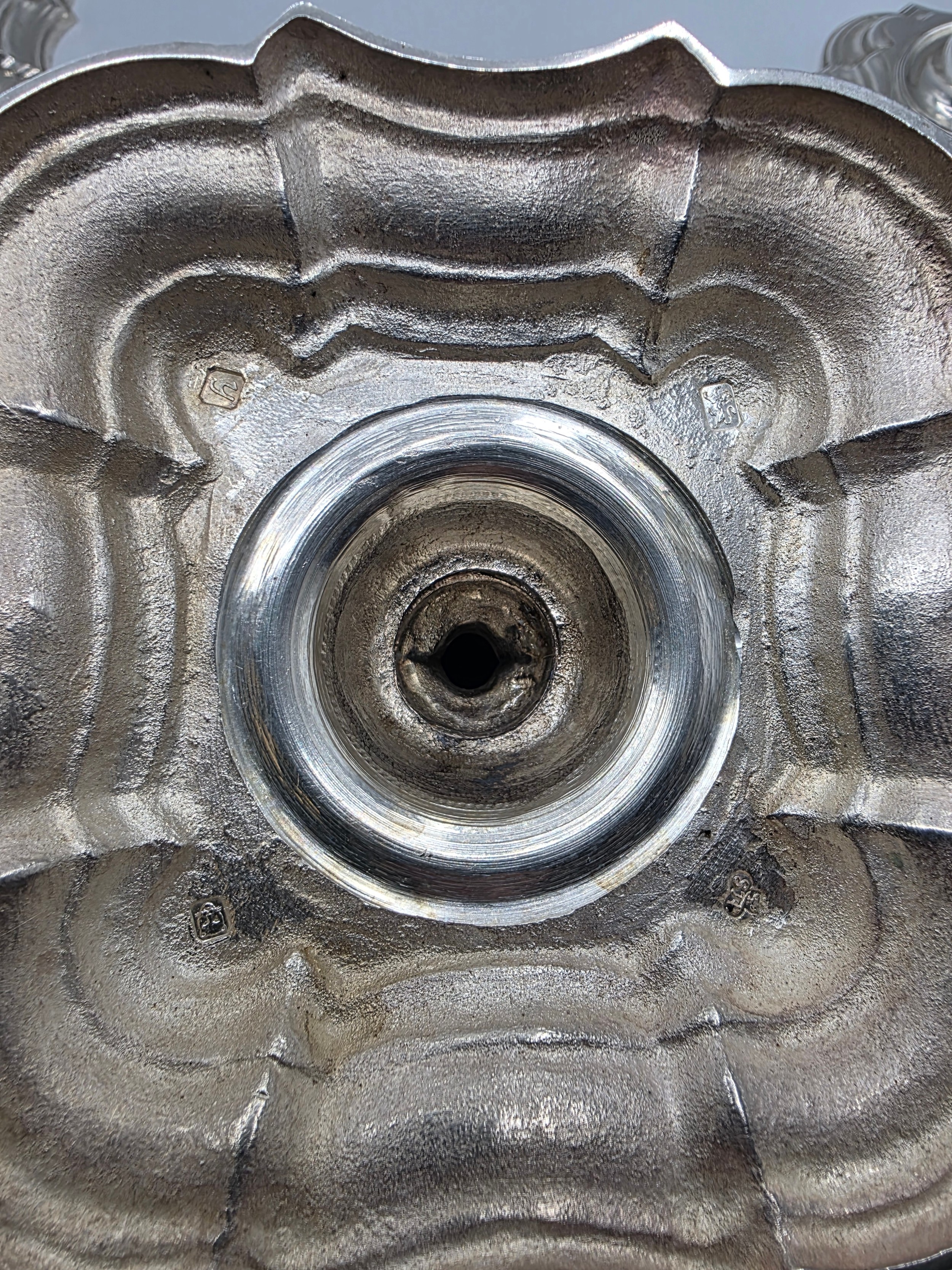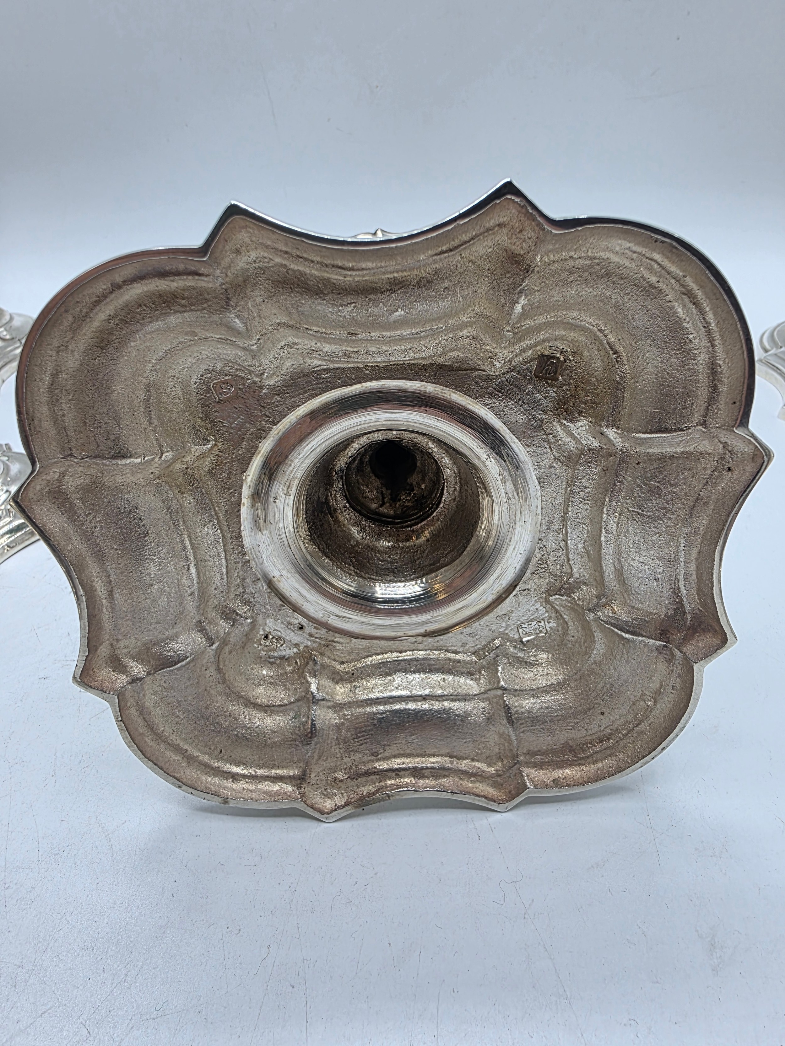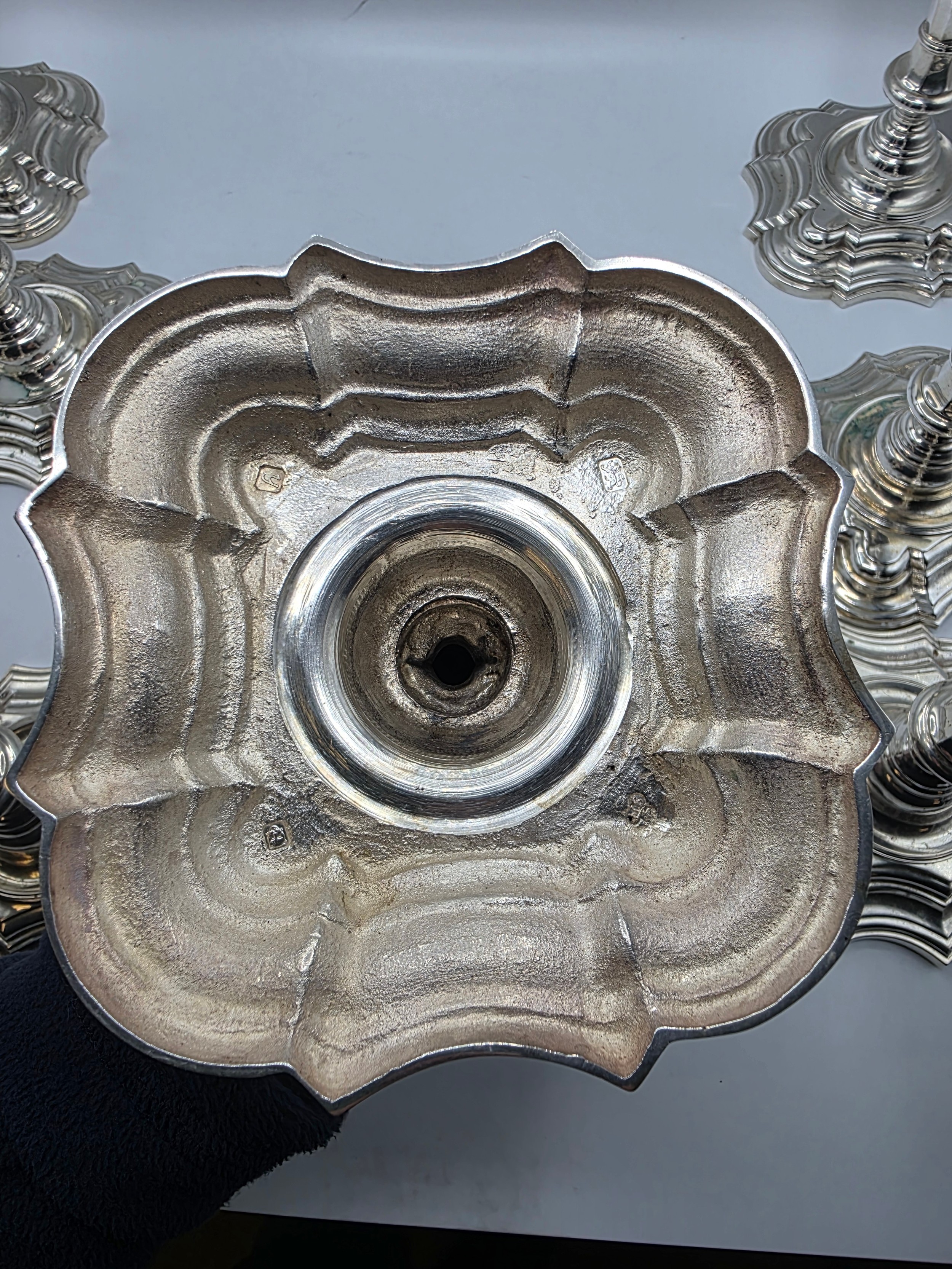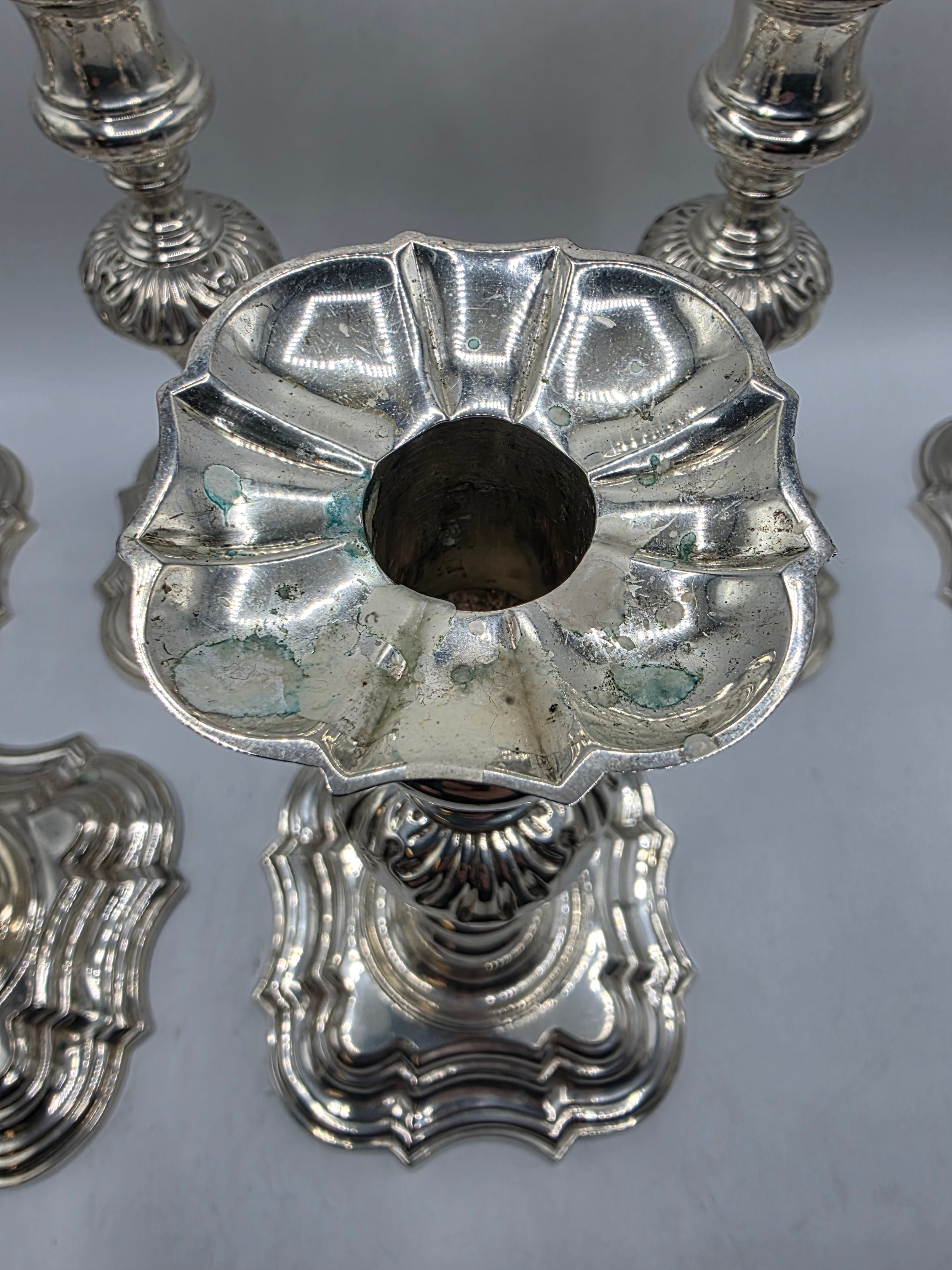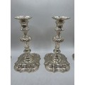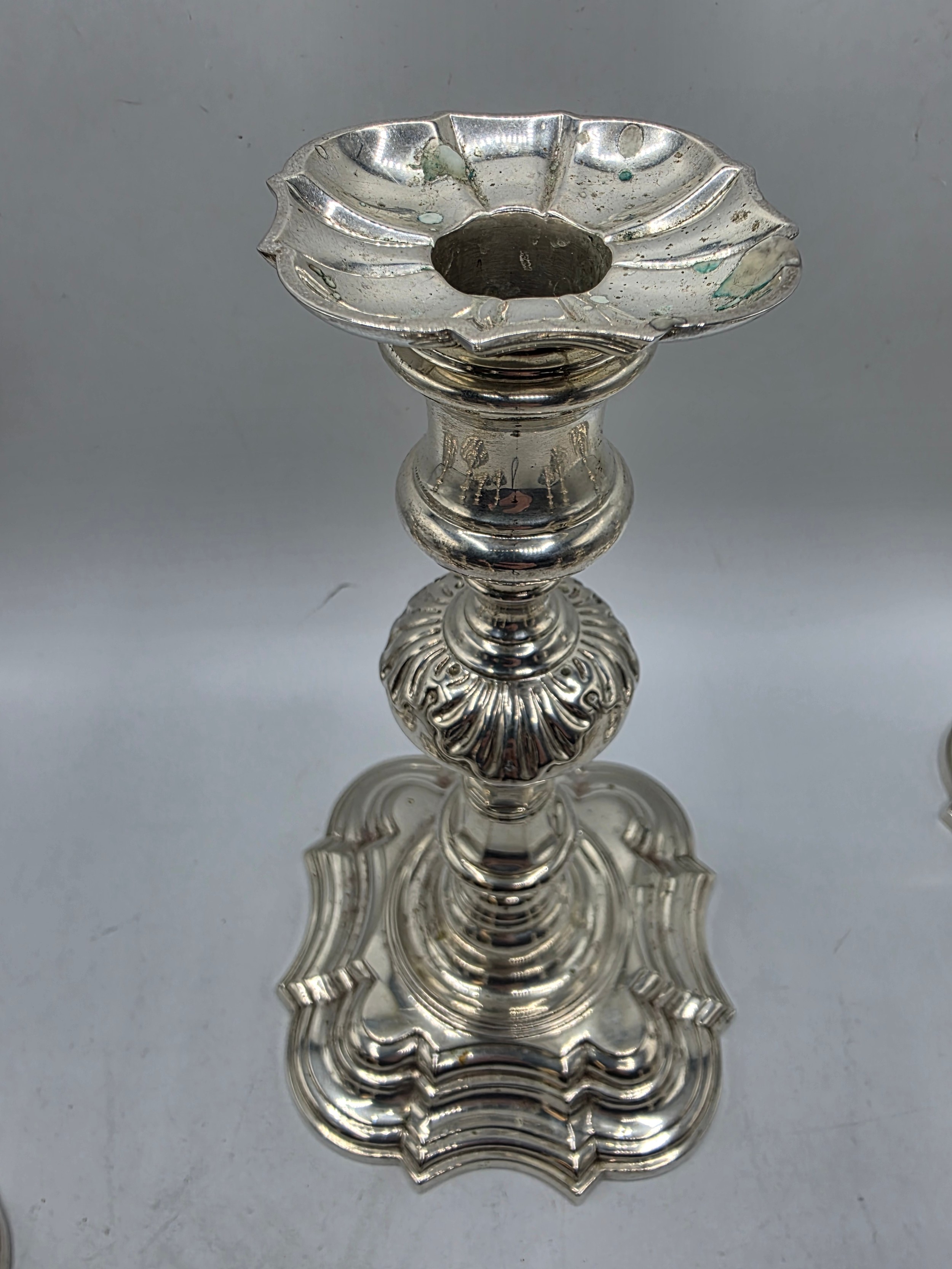 A set of eight solid sterling silver table candlesticks, stepped square basis, S J Phillips London Ltd 1998. 22 cm H. Total weight 6665 g