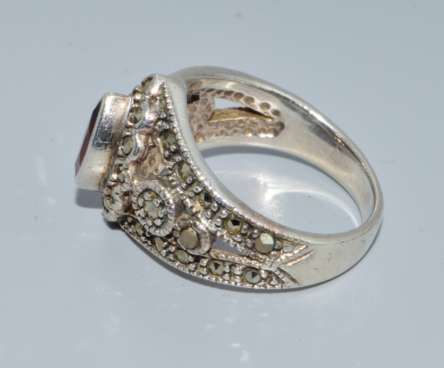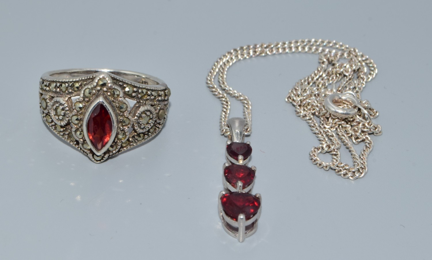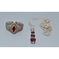 Garnet Diamond 925 silver pendant necklace together with a Garnet and Marcasite 925 silver ring size N