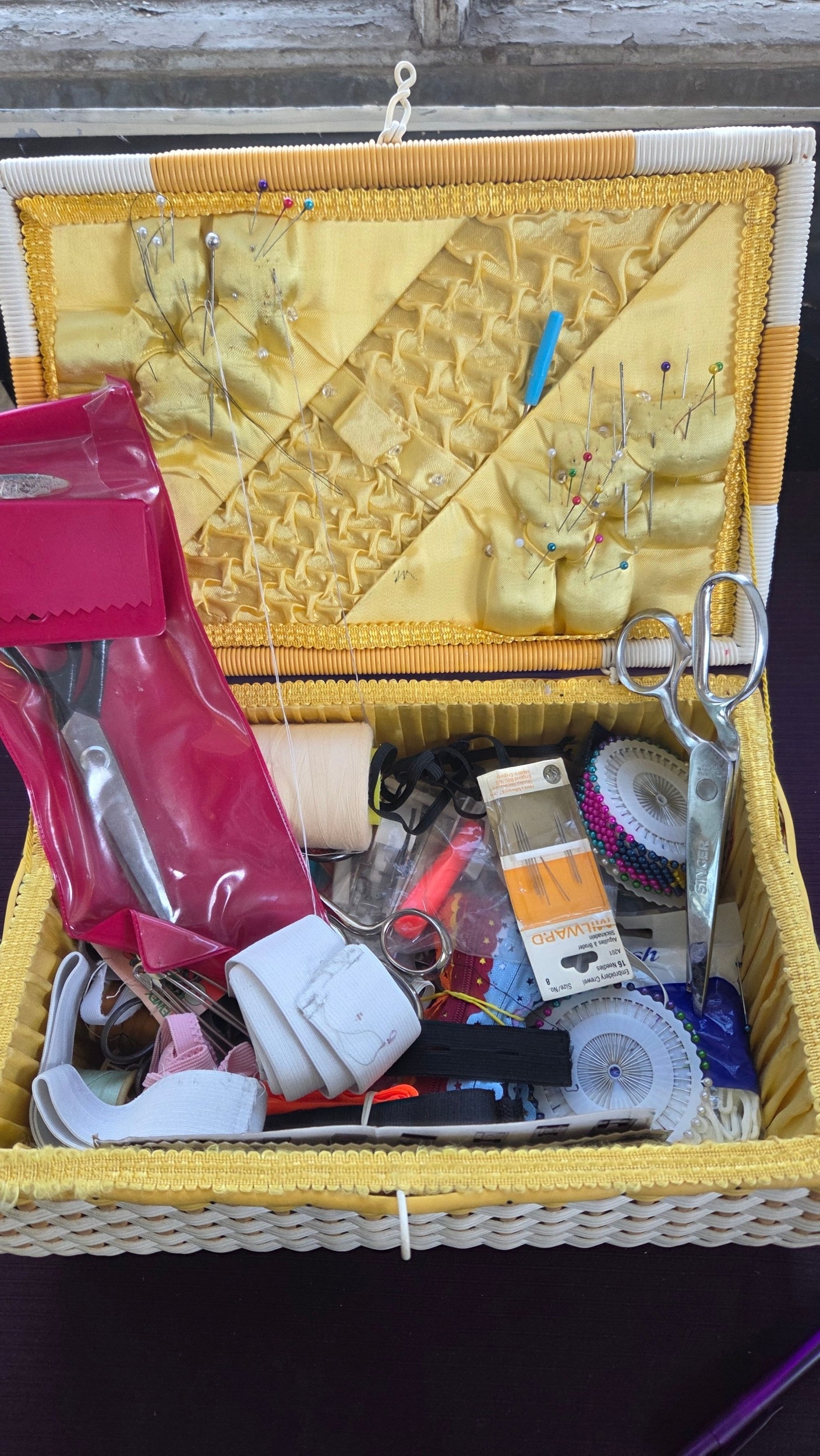 Mid Century Sewing Basket and Contents