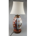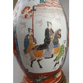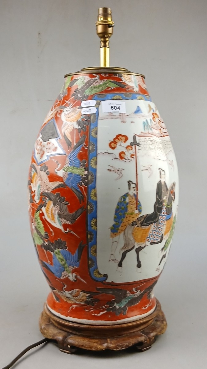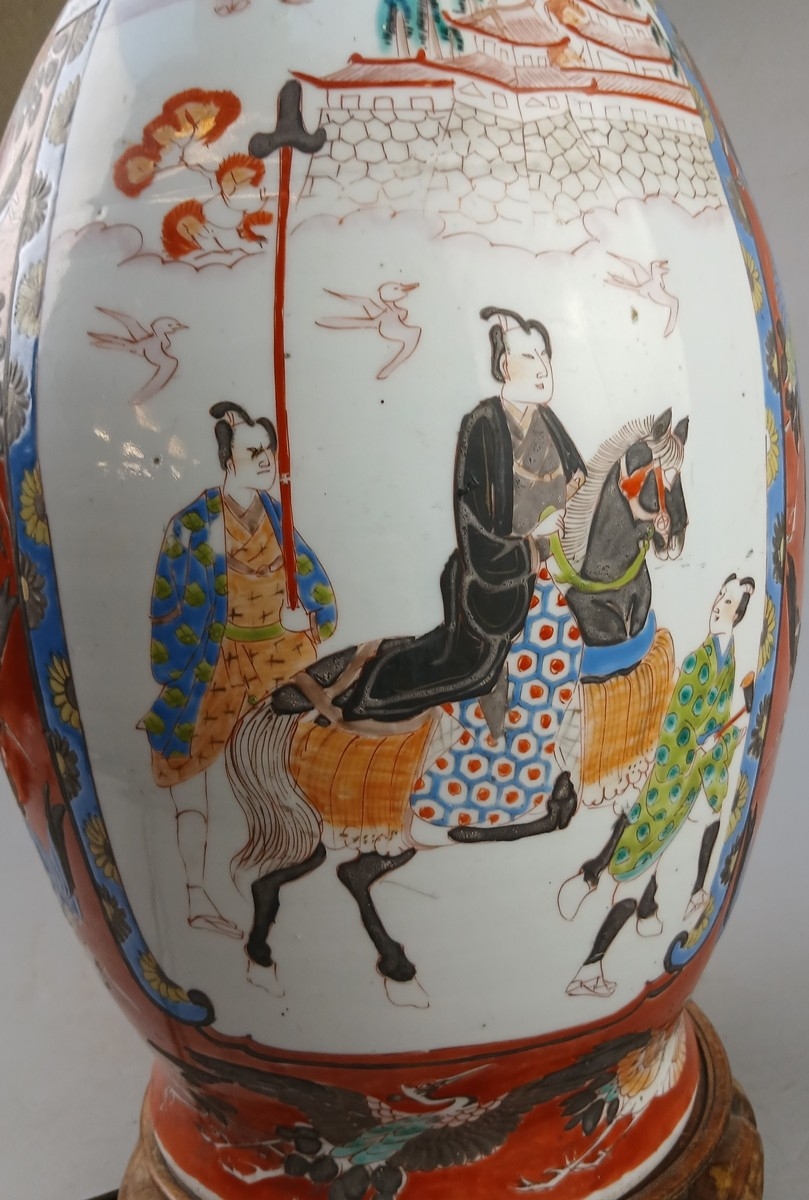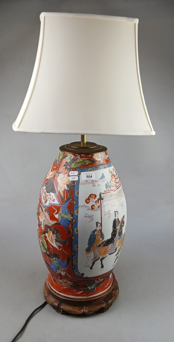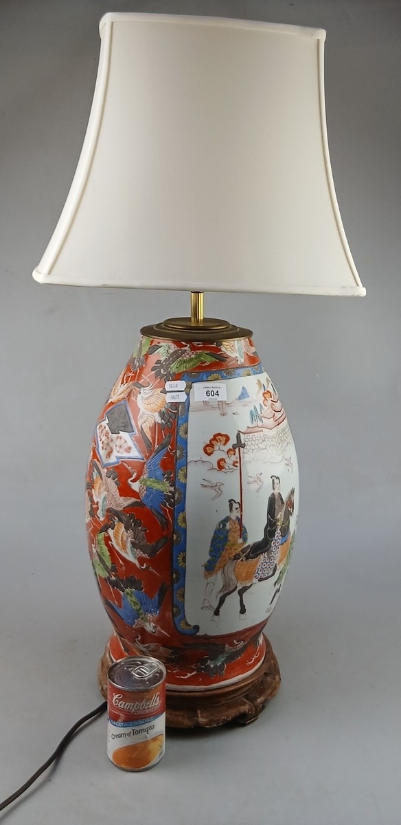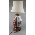 Large table lamp with Japanese decoration and traditional wooden stand - Approx H: 48cm