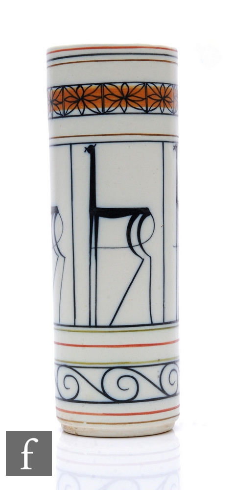 Unattributed maker - A mid 20th Century vase of sleeve form, circa 1960s, in the Art Deco style with a band of stylised greyhounds on a satin glaze, height 31cm.