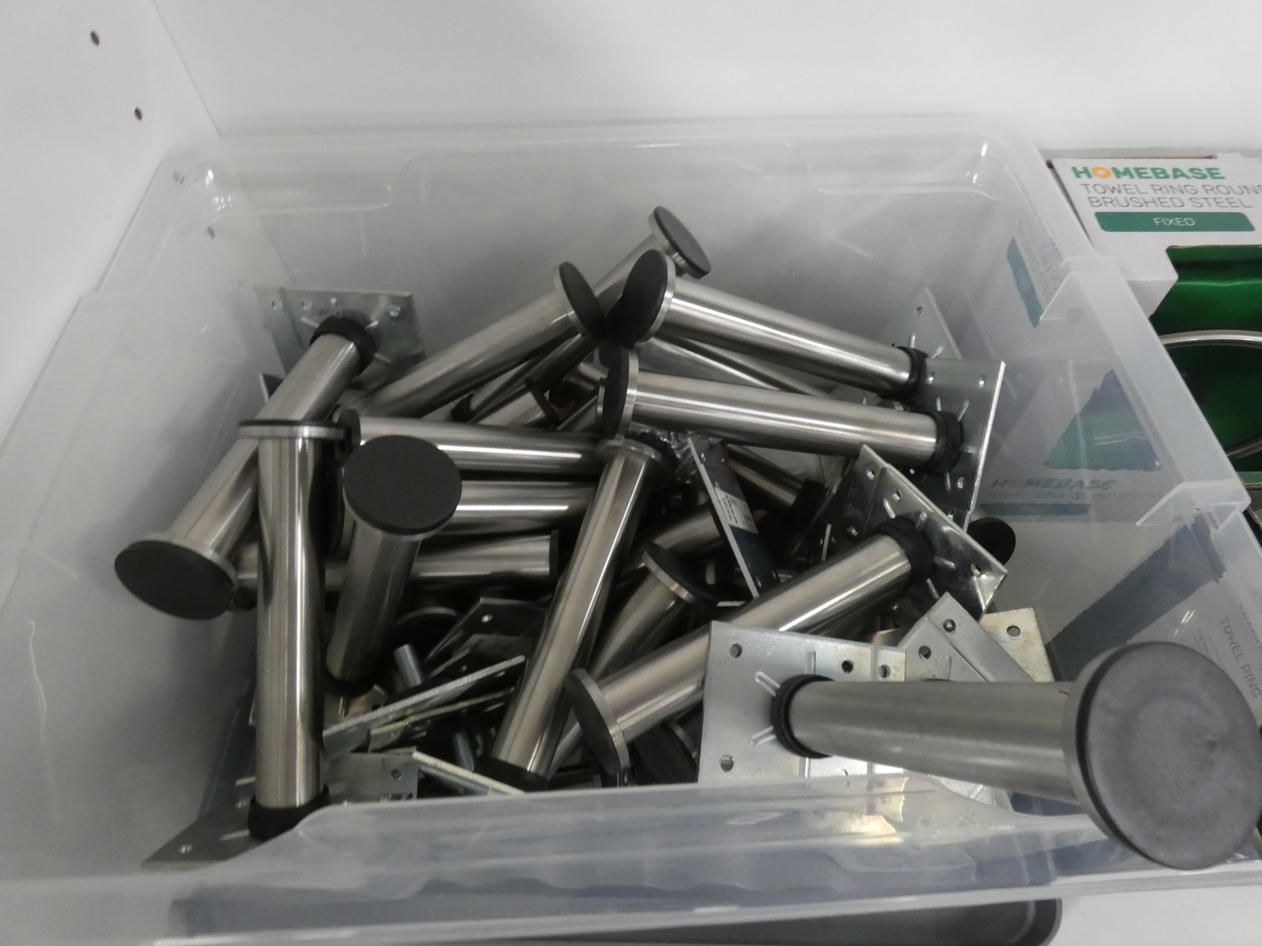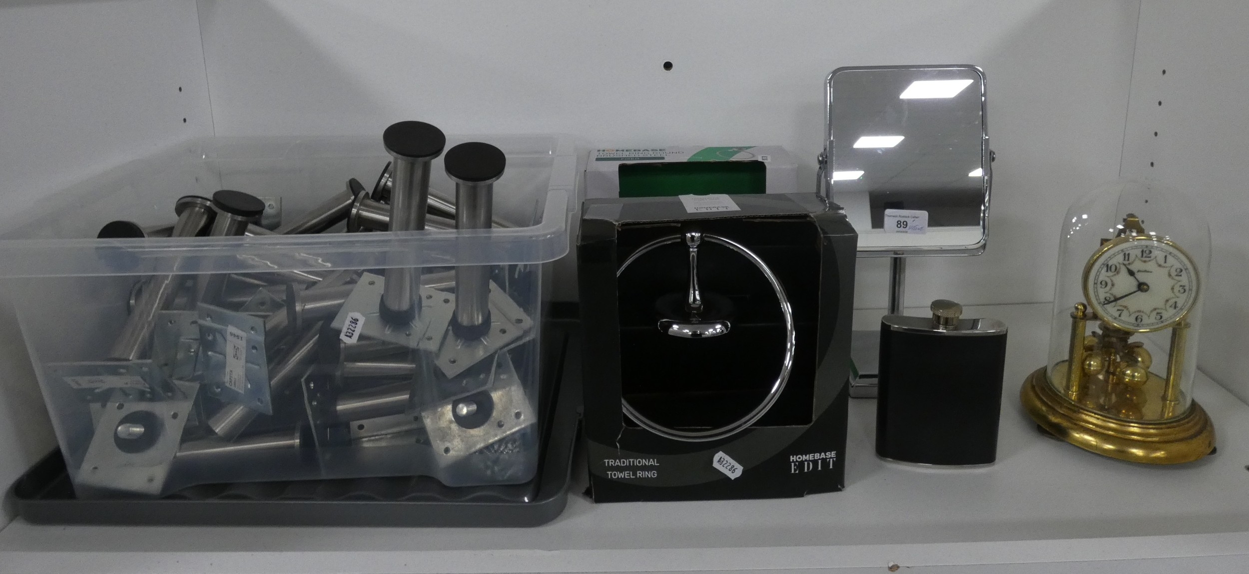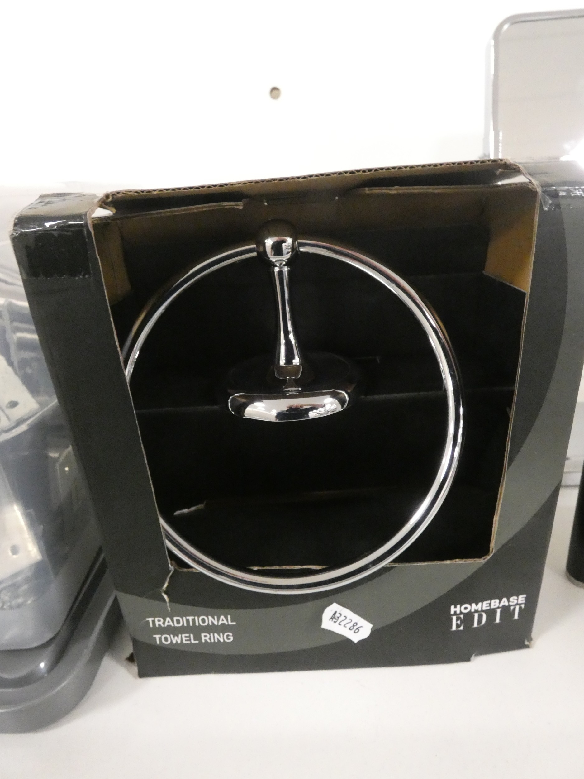 Shelf lot of modern bathroom fittings to include shaving mirror, towel ring and holders etc.