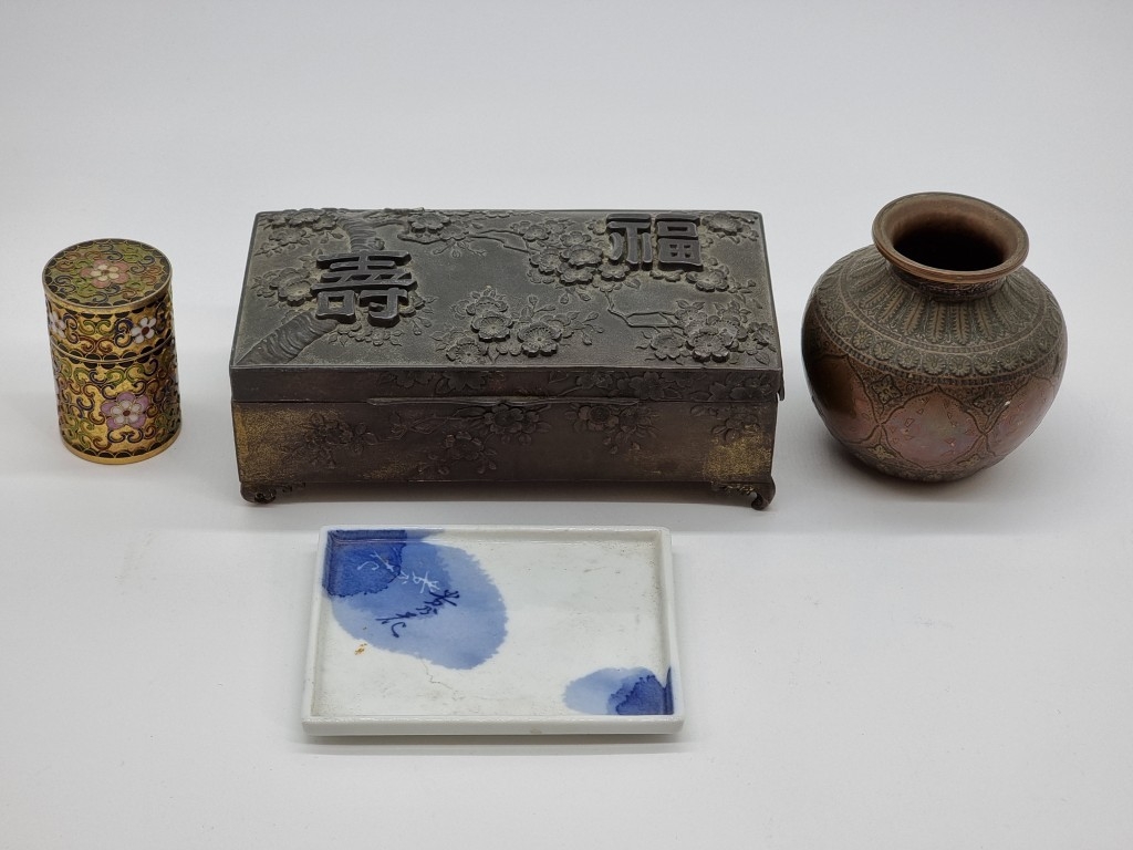 A small group of Oriental works of art, to include cloisonne enamel. (4)