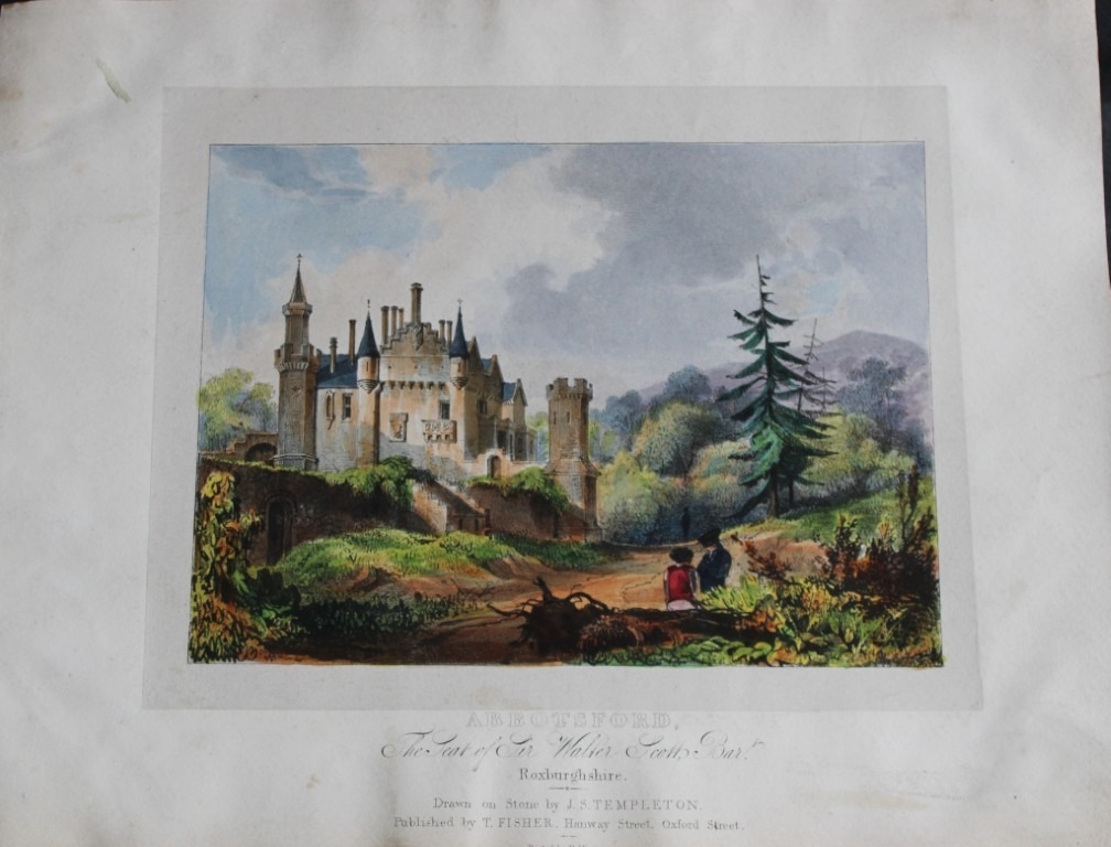 JS Templeton - Lithograph of Abbotsford, Seat of Sir Walter Scott c1850. This lithograph of Abbotsford, Roxburghshire in Scotland was drawn on stone by JS Templeton. Published by T Fisher, London c1850.