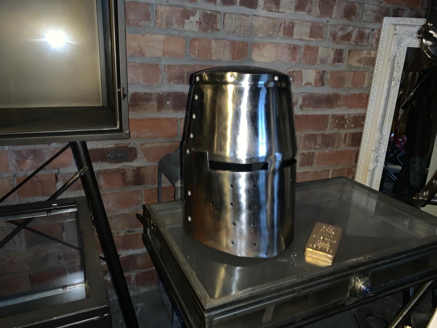 NEW BOXED POLISHED STEEL FULL FACE CRUSADER HELMET